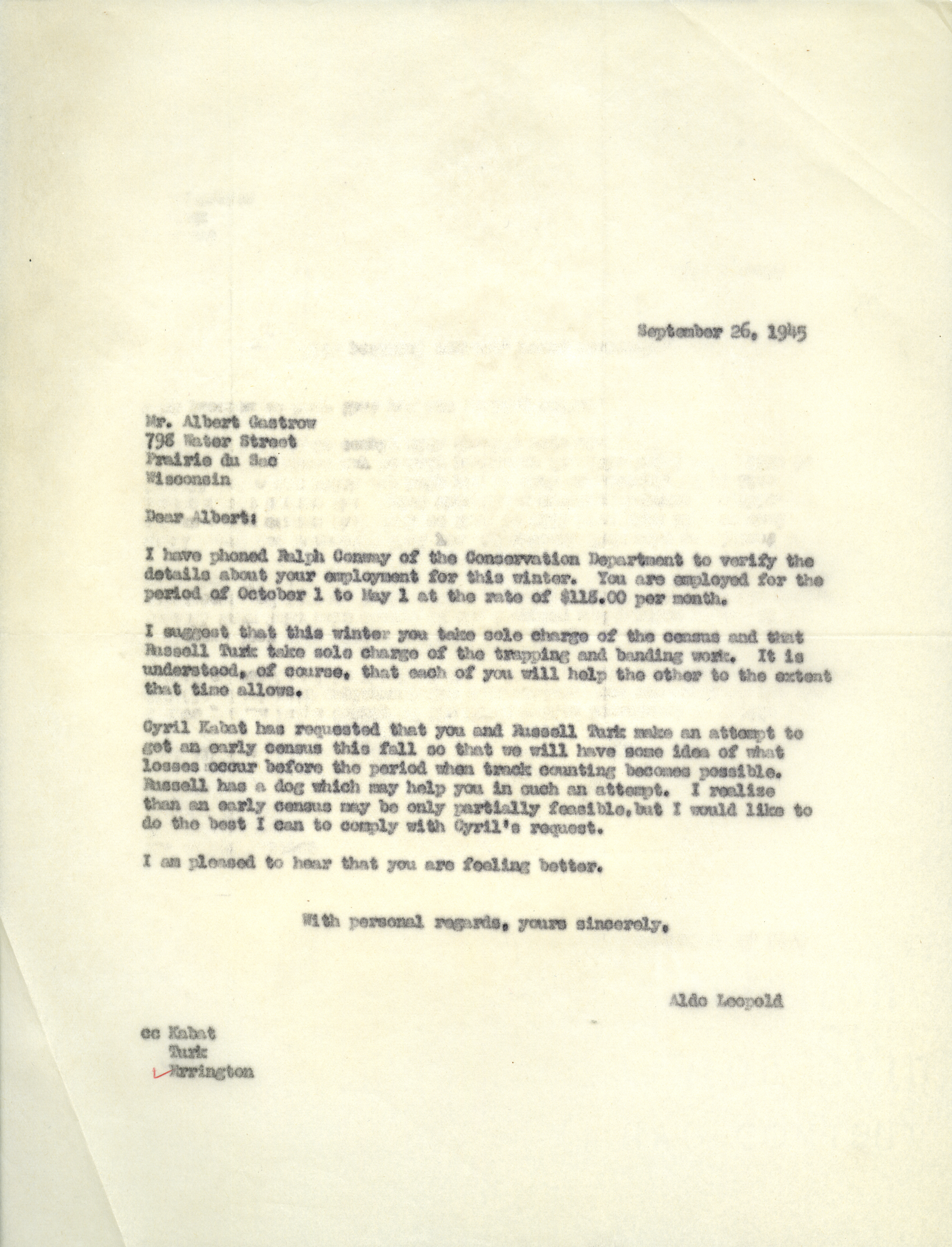 - Aldo Leopold letter to Gastrow, September 26, 1945