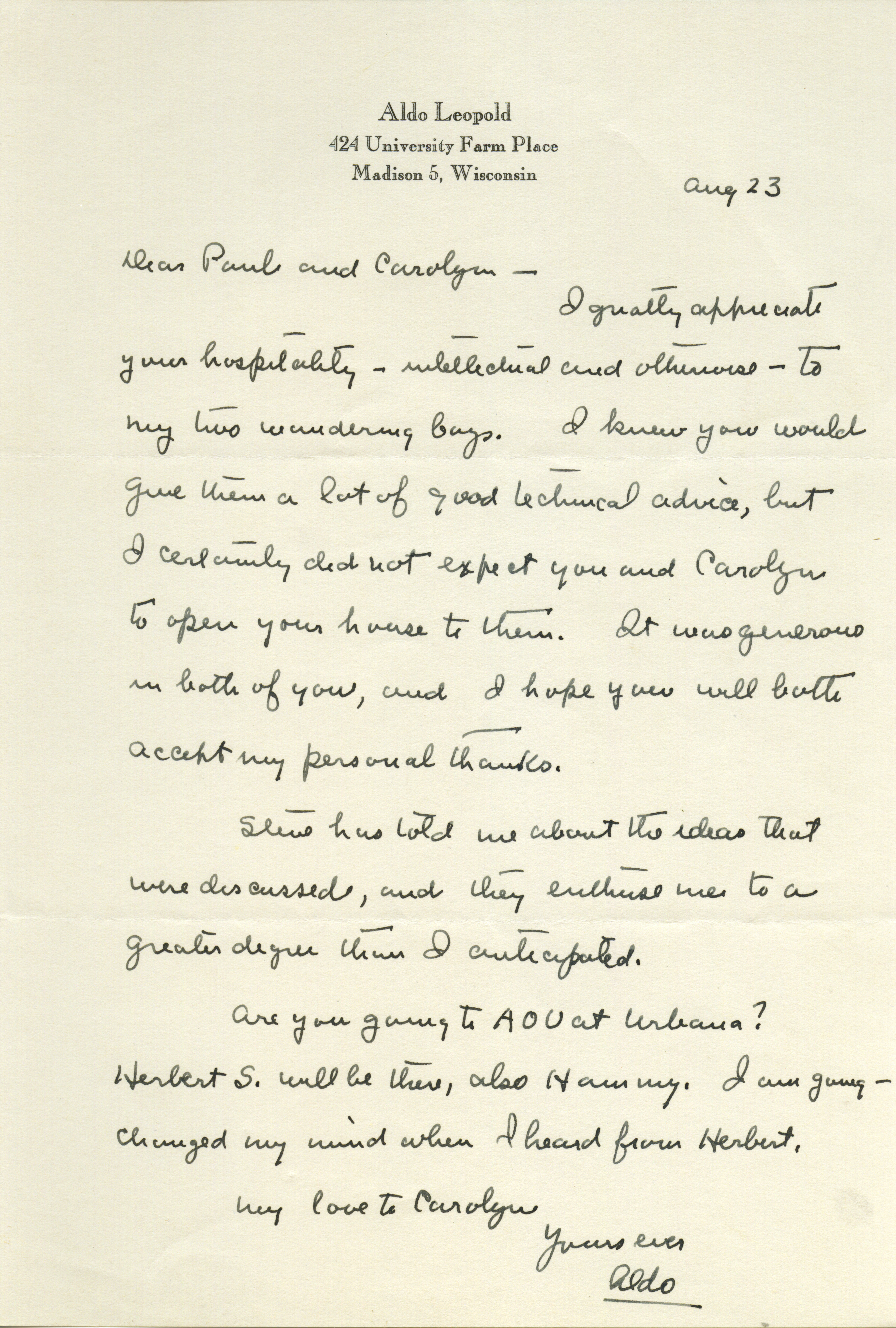 Aldo Leopold letter to Paul Errington, August 23, 1946 Item Info