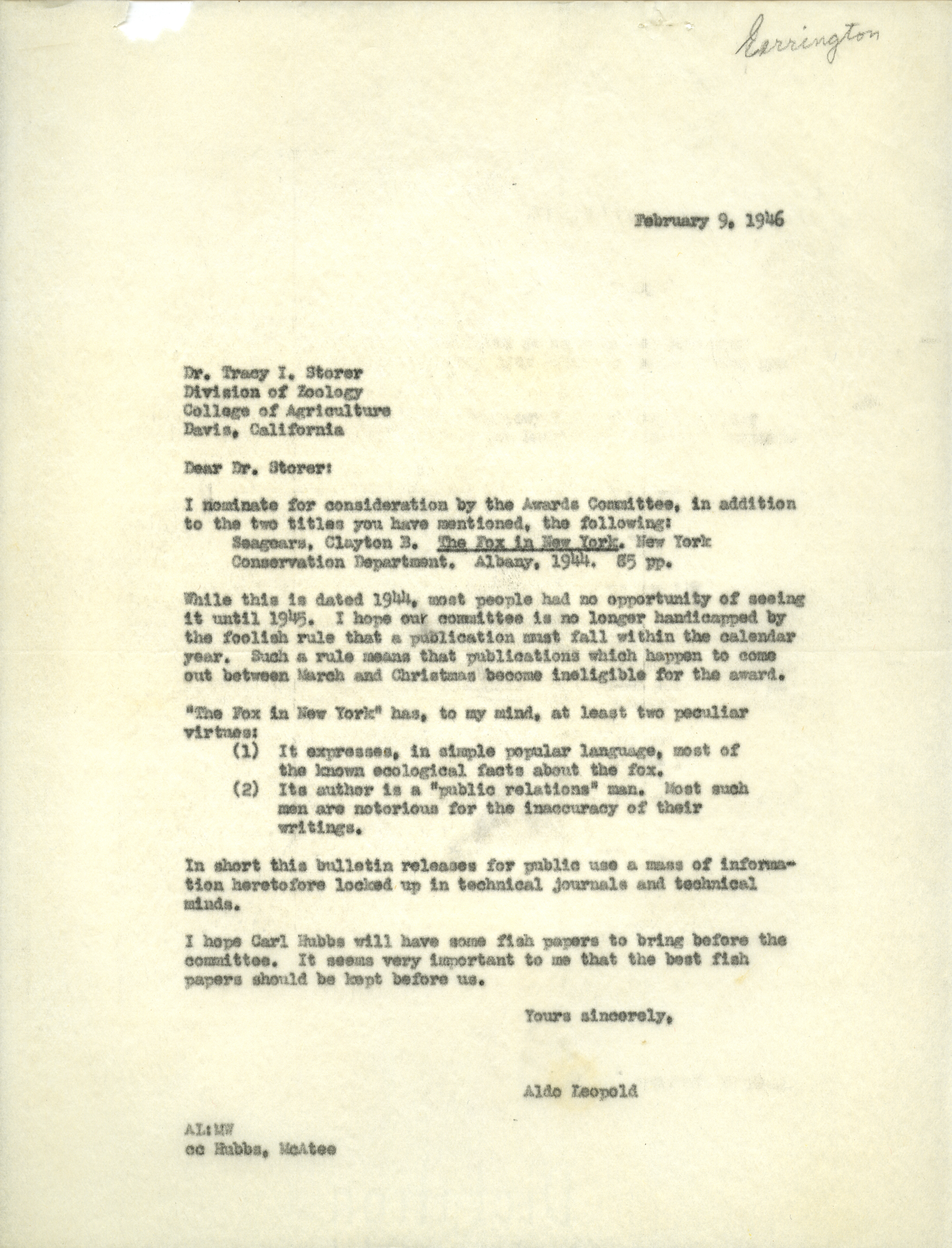 - "Aldo Leopold letter to Storer, February 9, 1946", Paul L. Errington Collection, Iowa State University Library Digital Collections