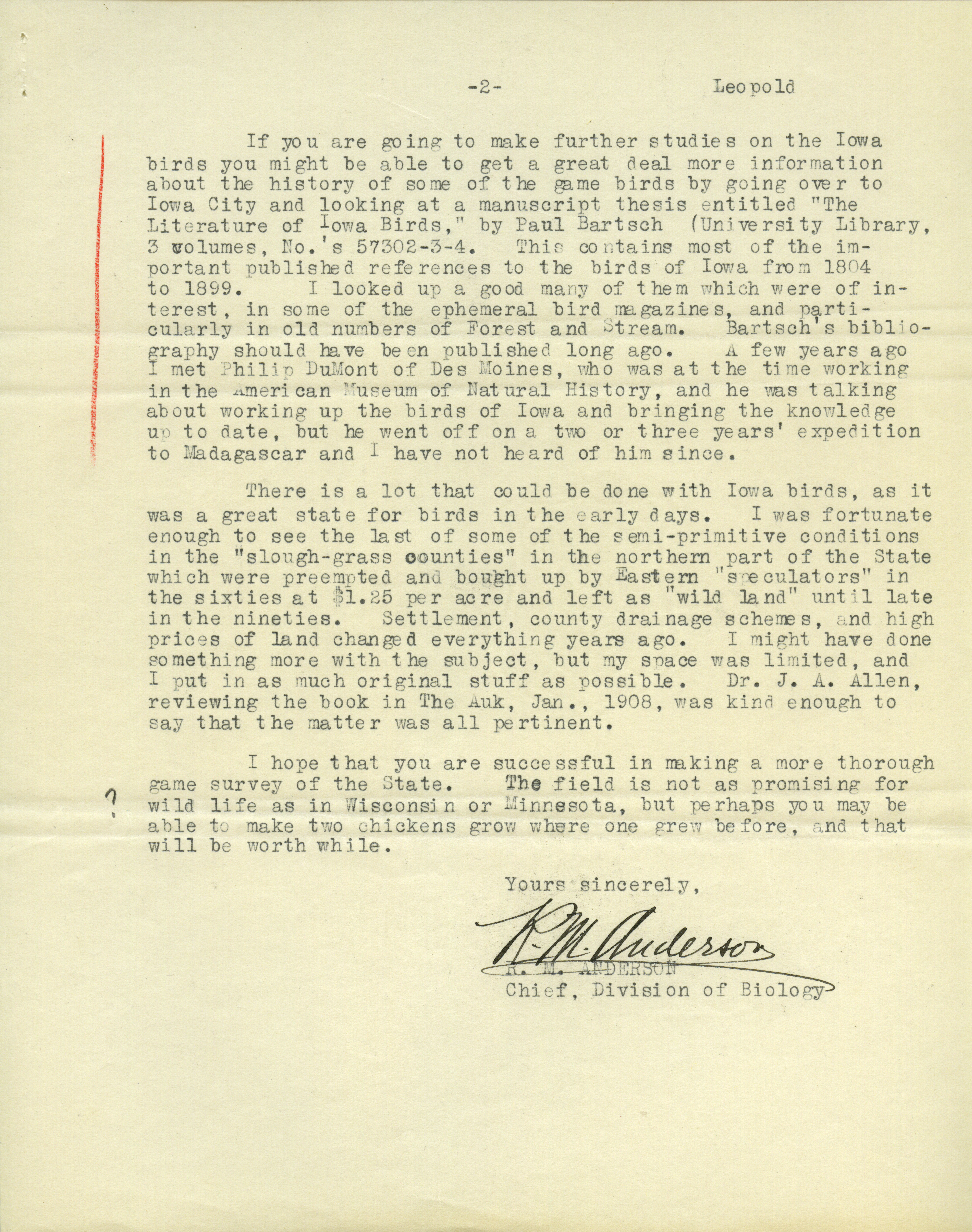 - "Letter from Anderson to Aldo Leopold, October 5, 1931", Paul L. Errington Collection, Iowa State University Library Digital Collections