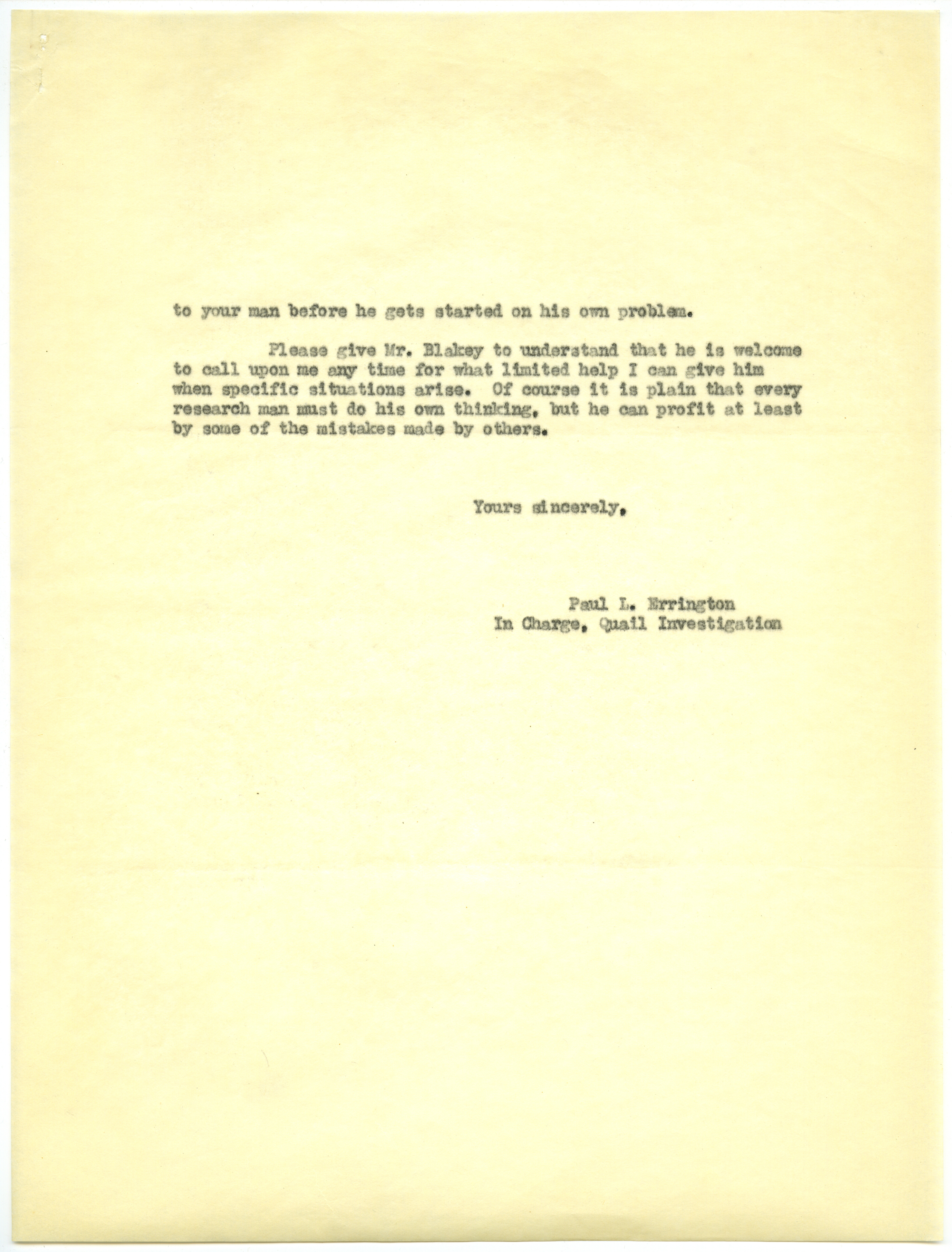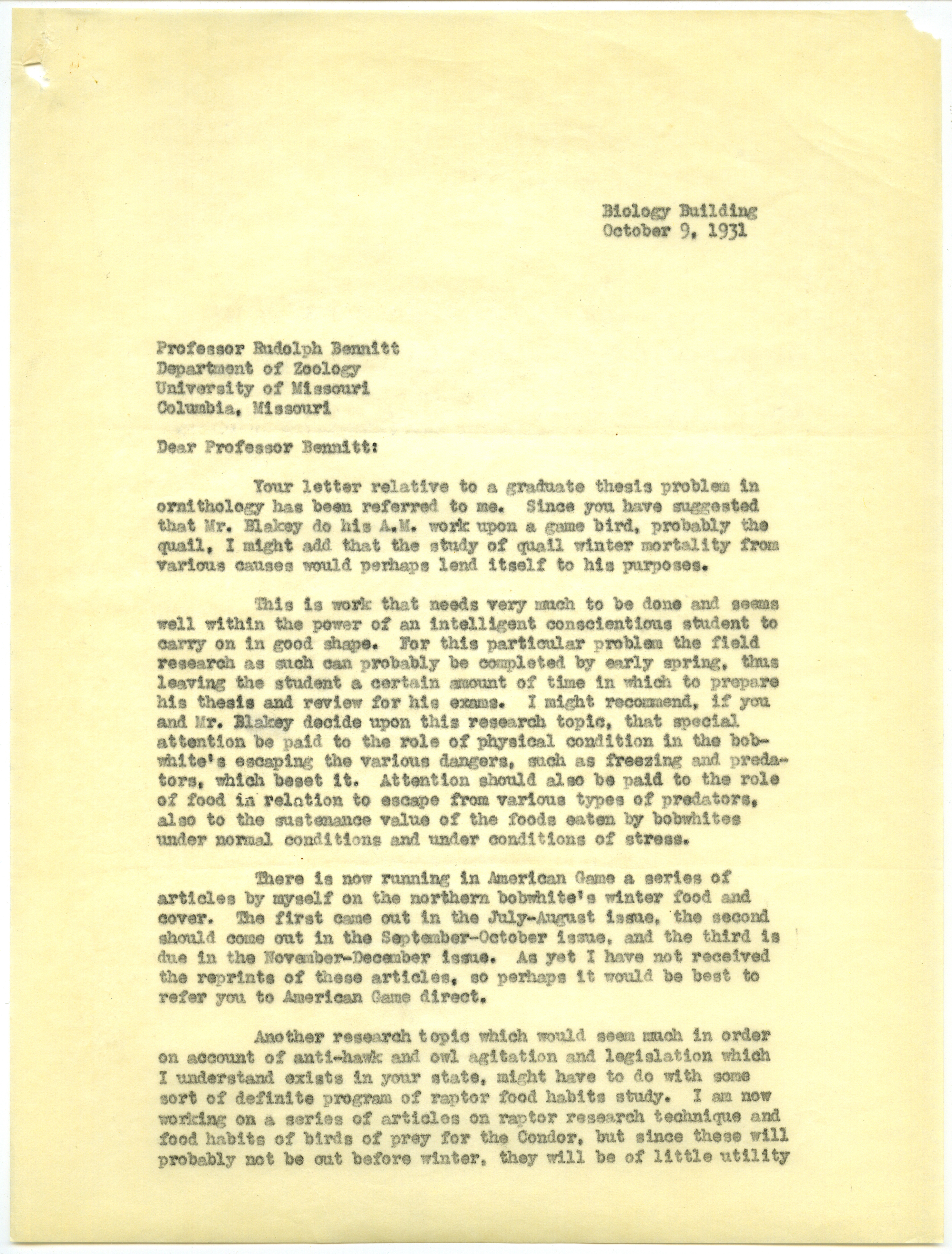 - Paul L. Errington letter, October 9, 1931