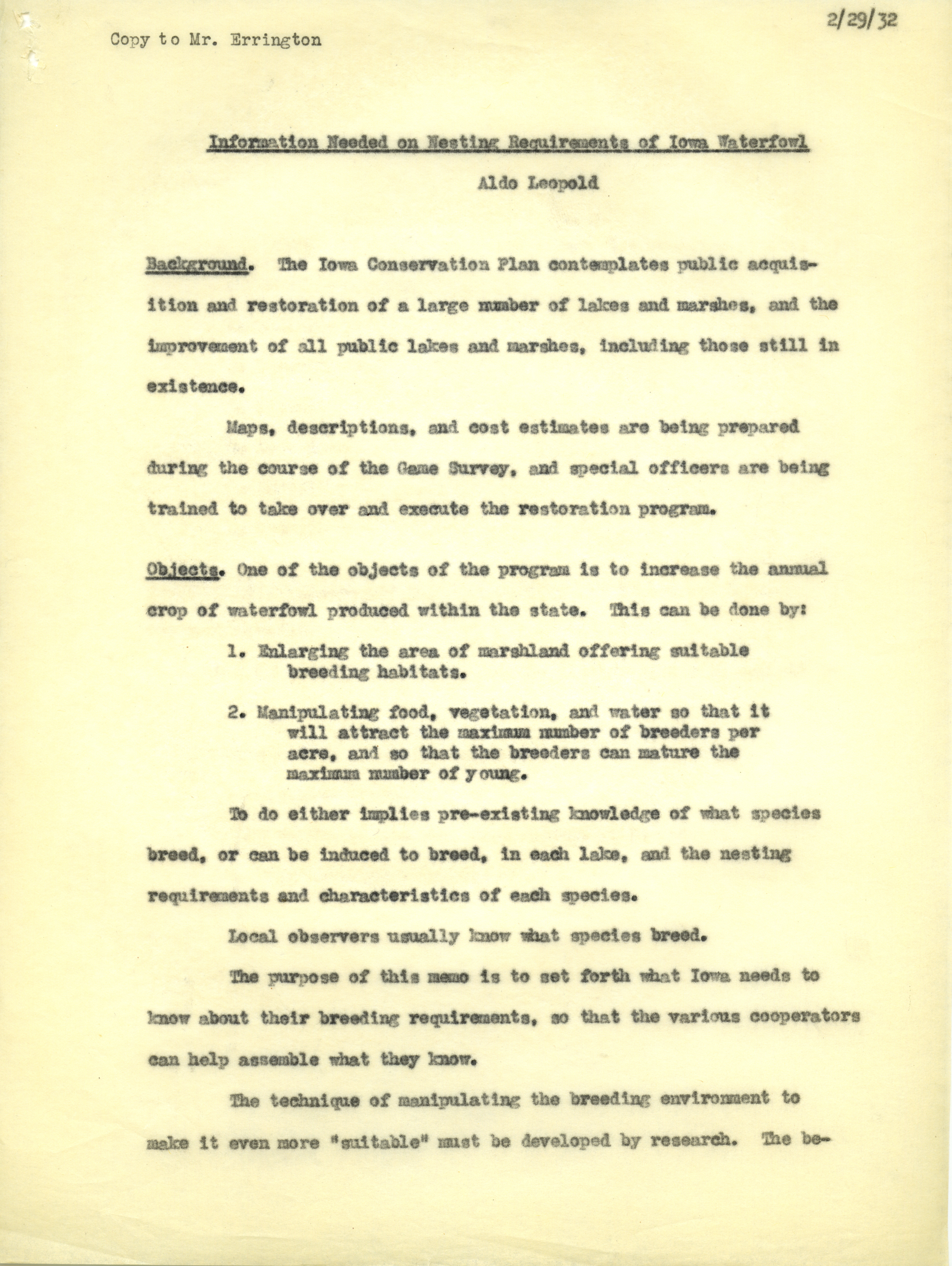 Aldo Leopold letter to Paul Errington, February 29, 1932 Item Info