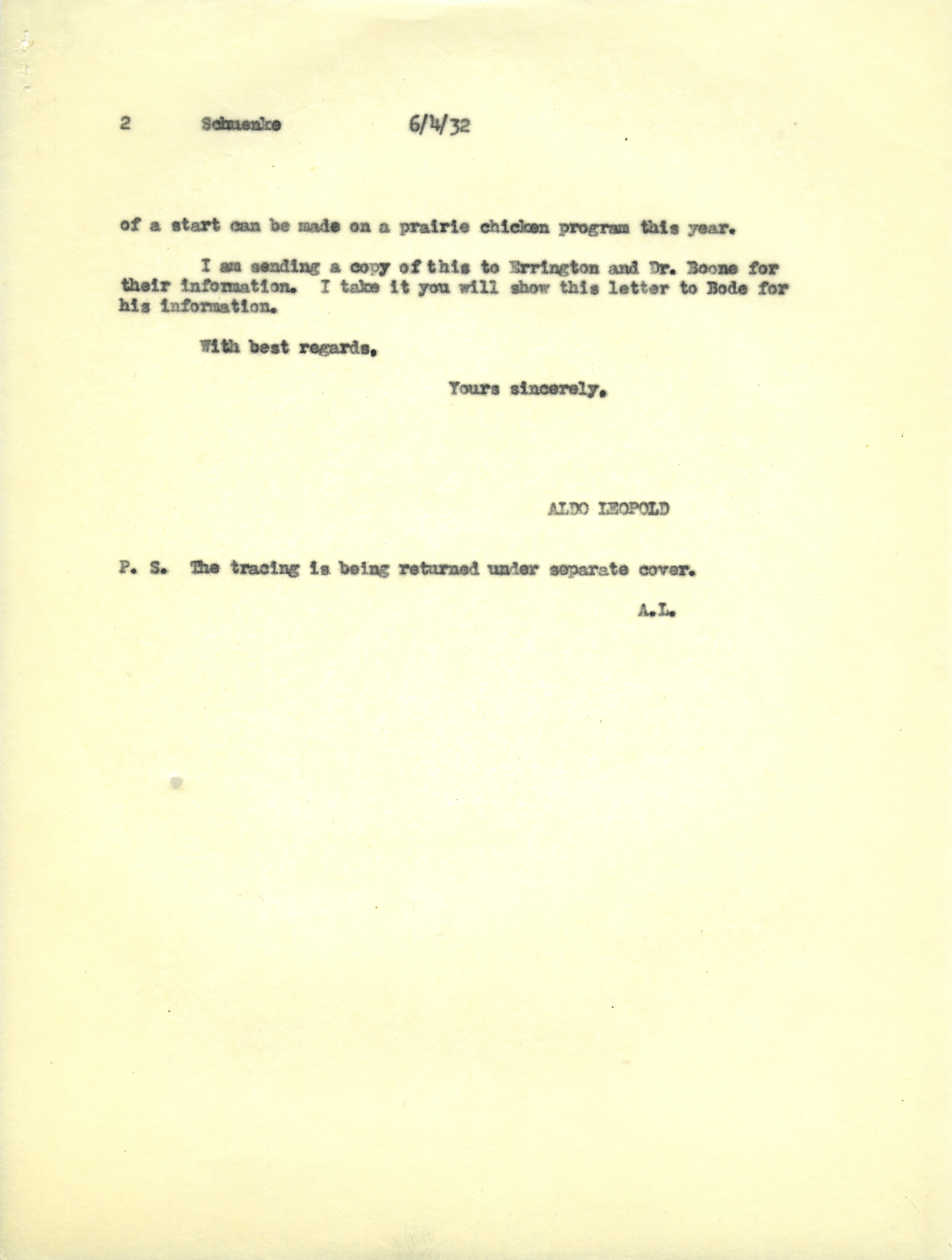 - Aldo Leopold letter to Schuenke, June 4, 1932