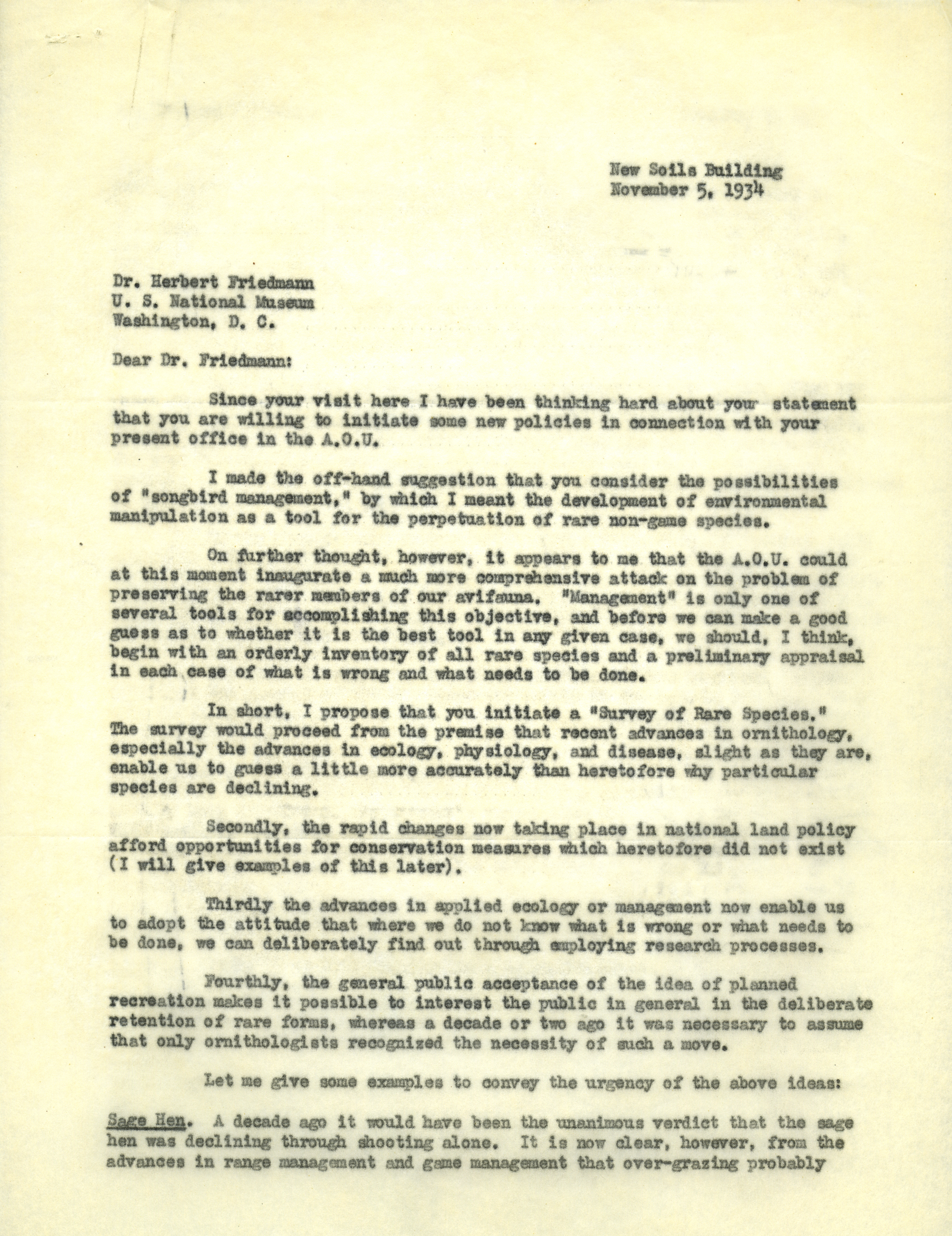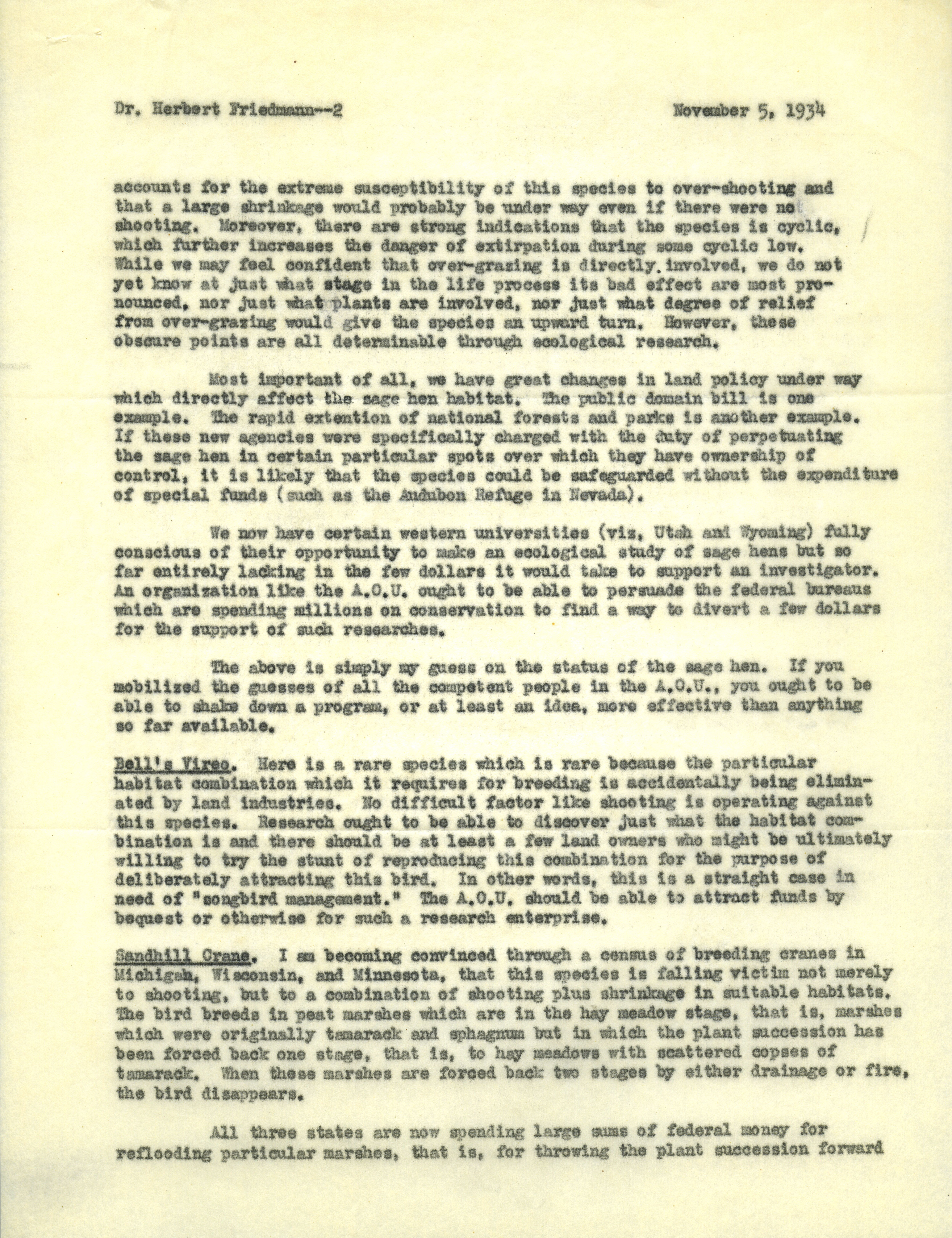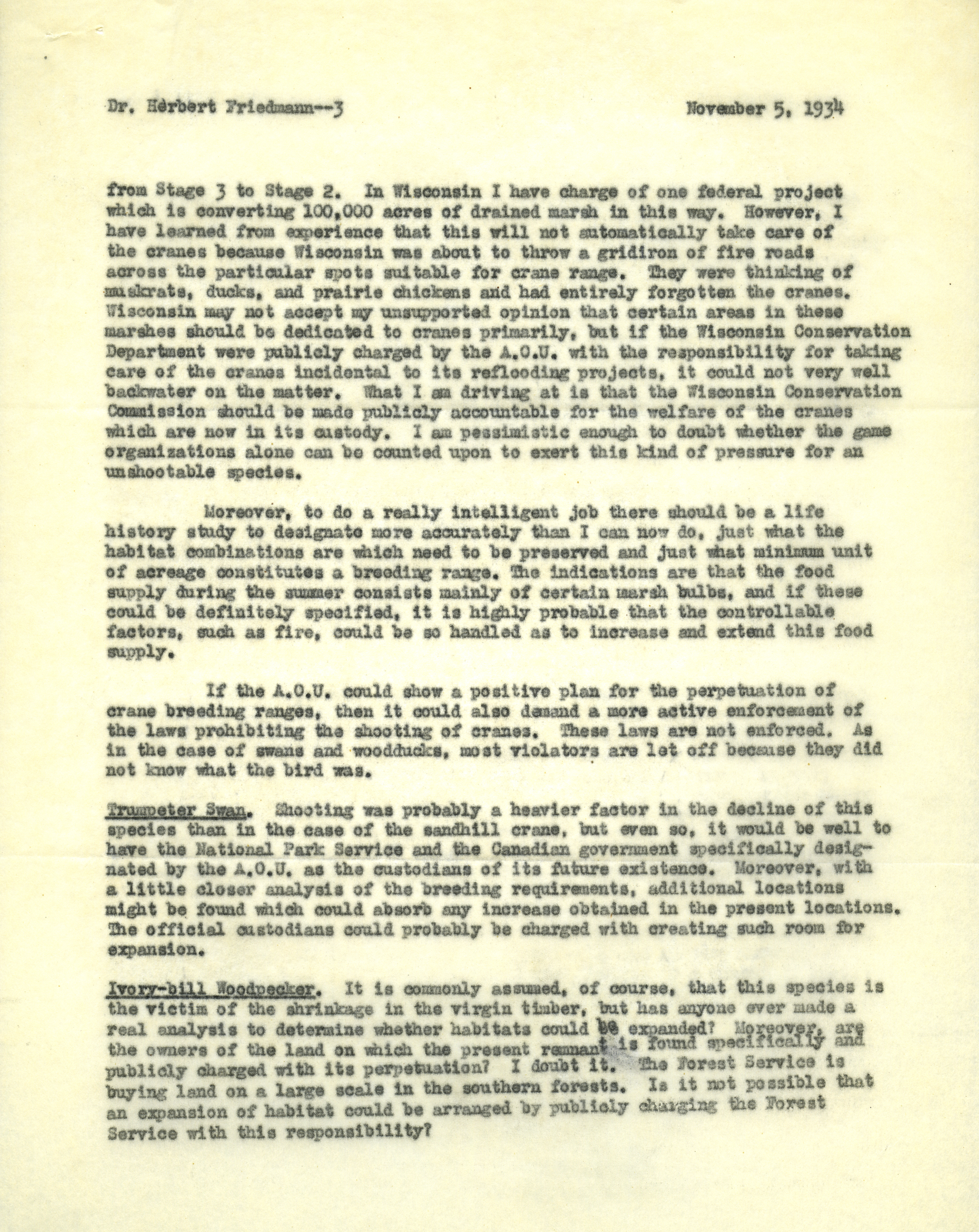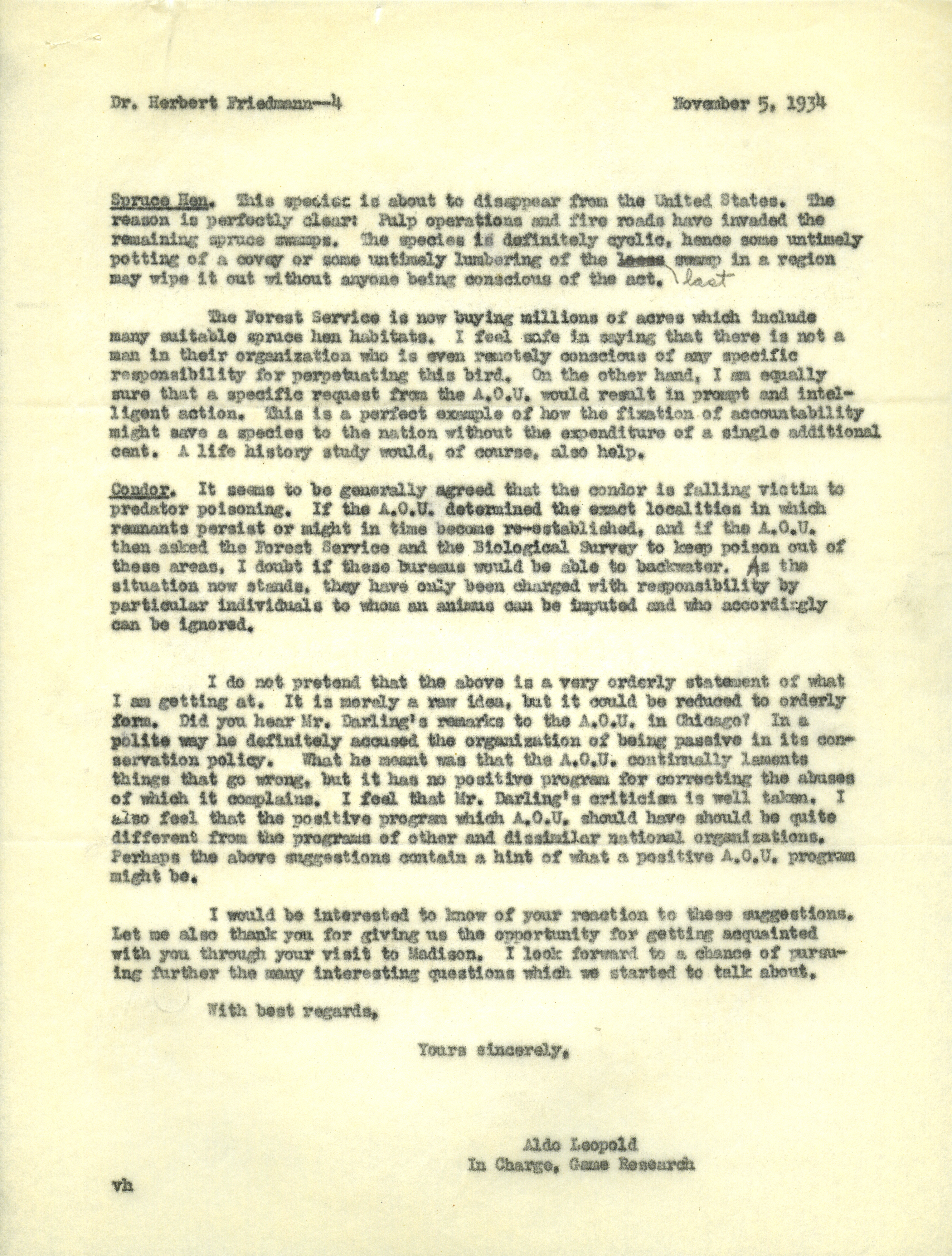 - Aldo Leopold letter to Friedmann, November 5, 1934