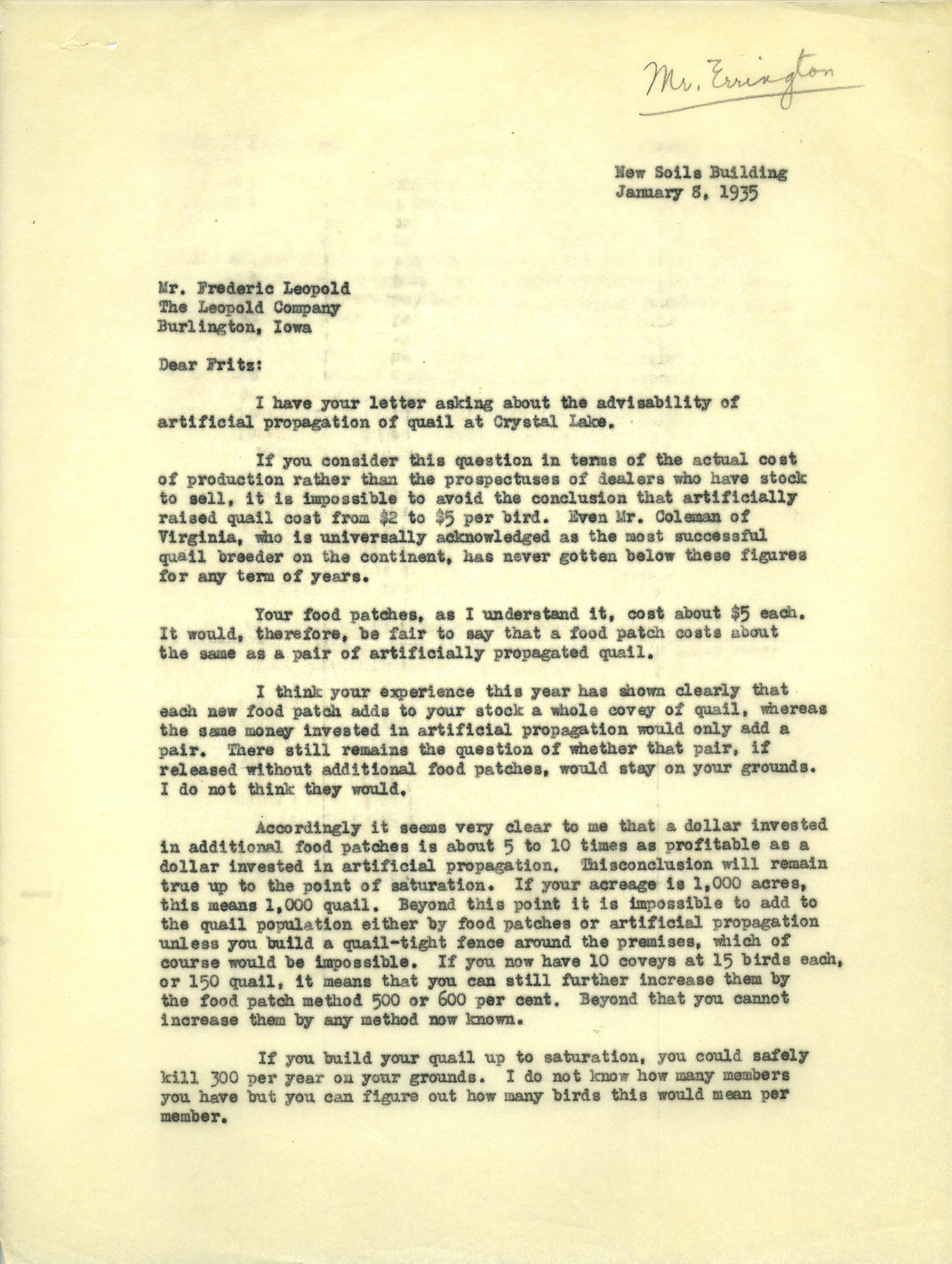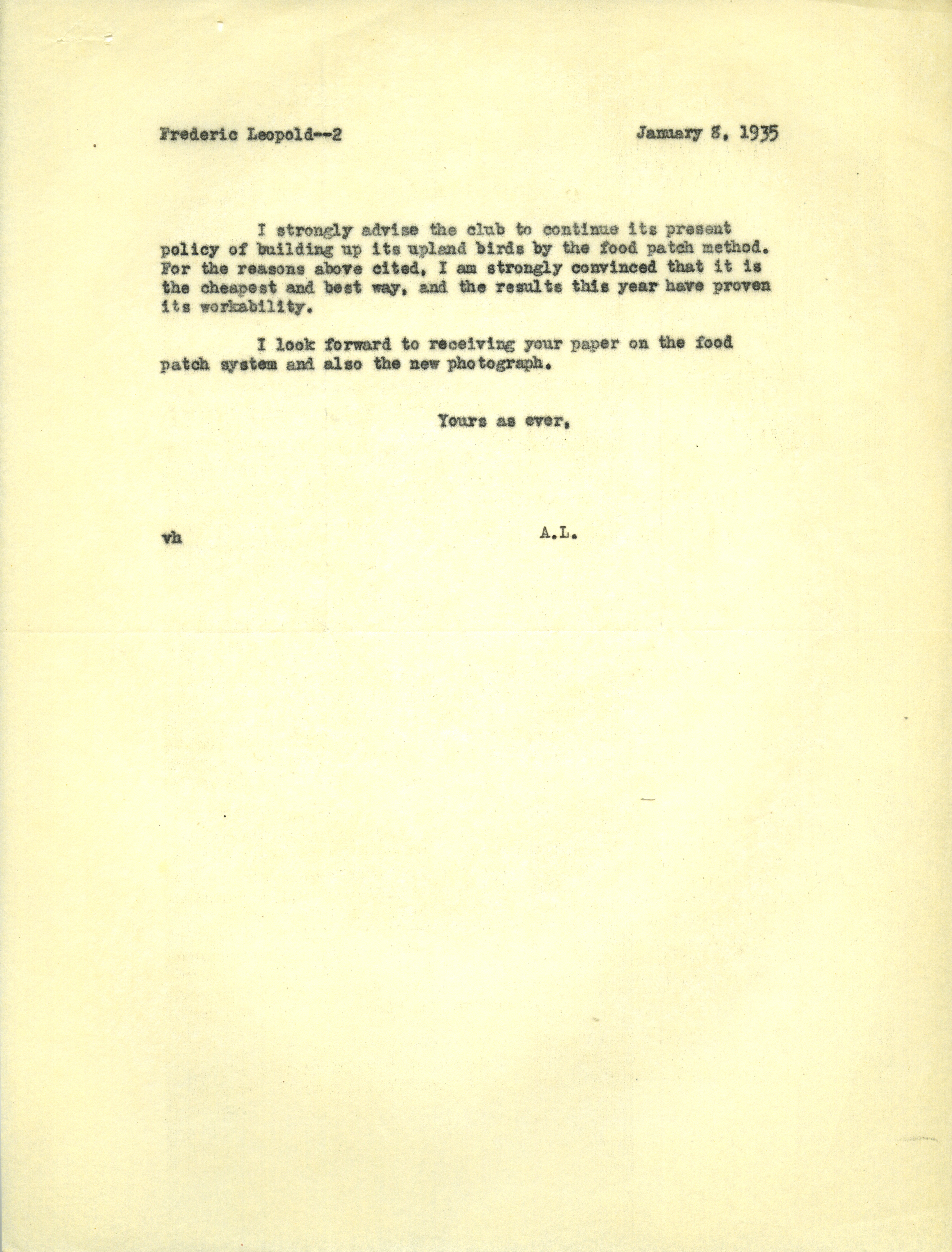 - Aldo Leopold letter to Aldo Leopold, January 8, 1935