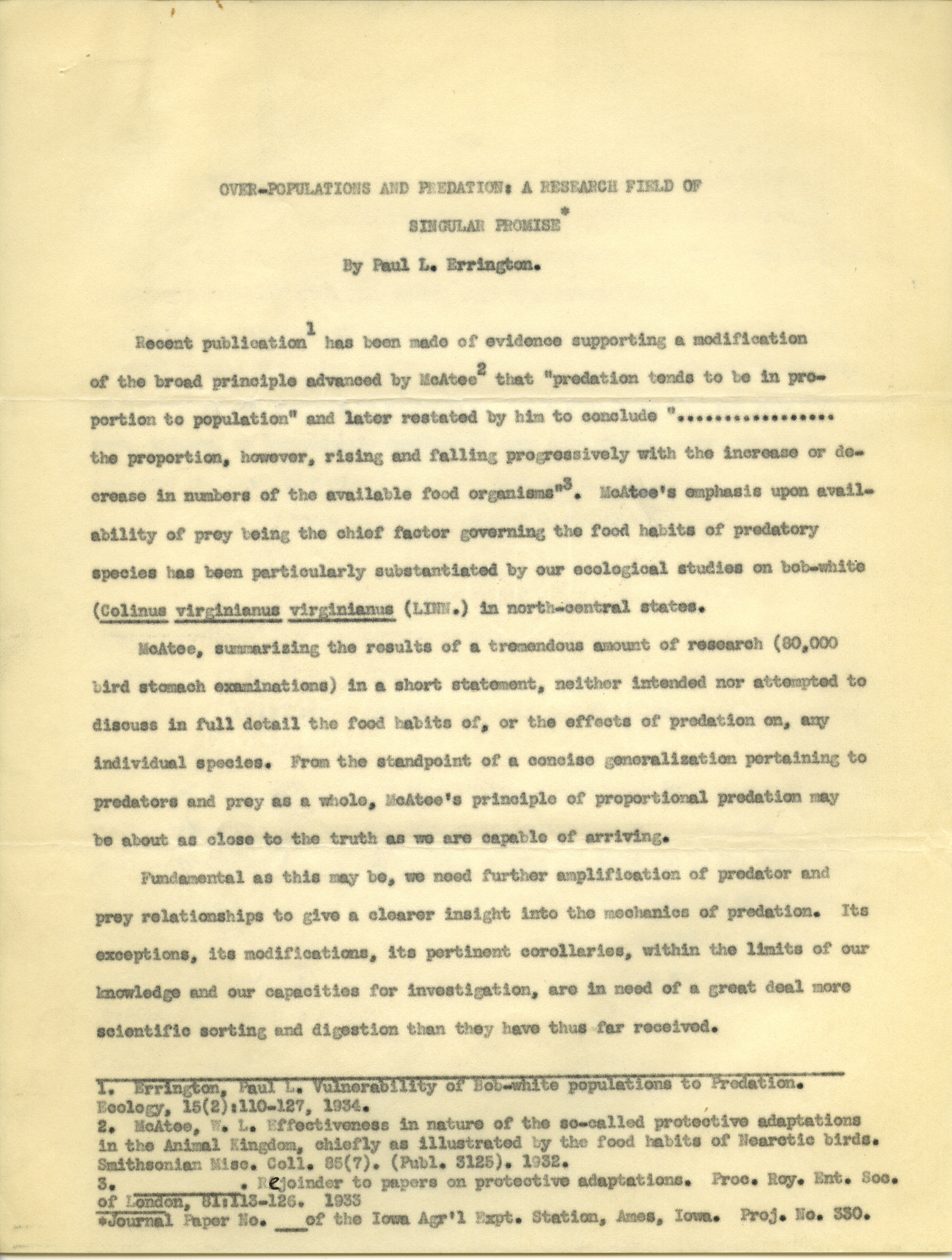 - "Aldo Leopold letter to Paul Errington, February 20, 1935", Paul L. Errington Collection, Iowa State University Library Digital Collections