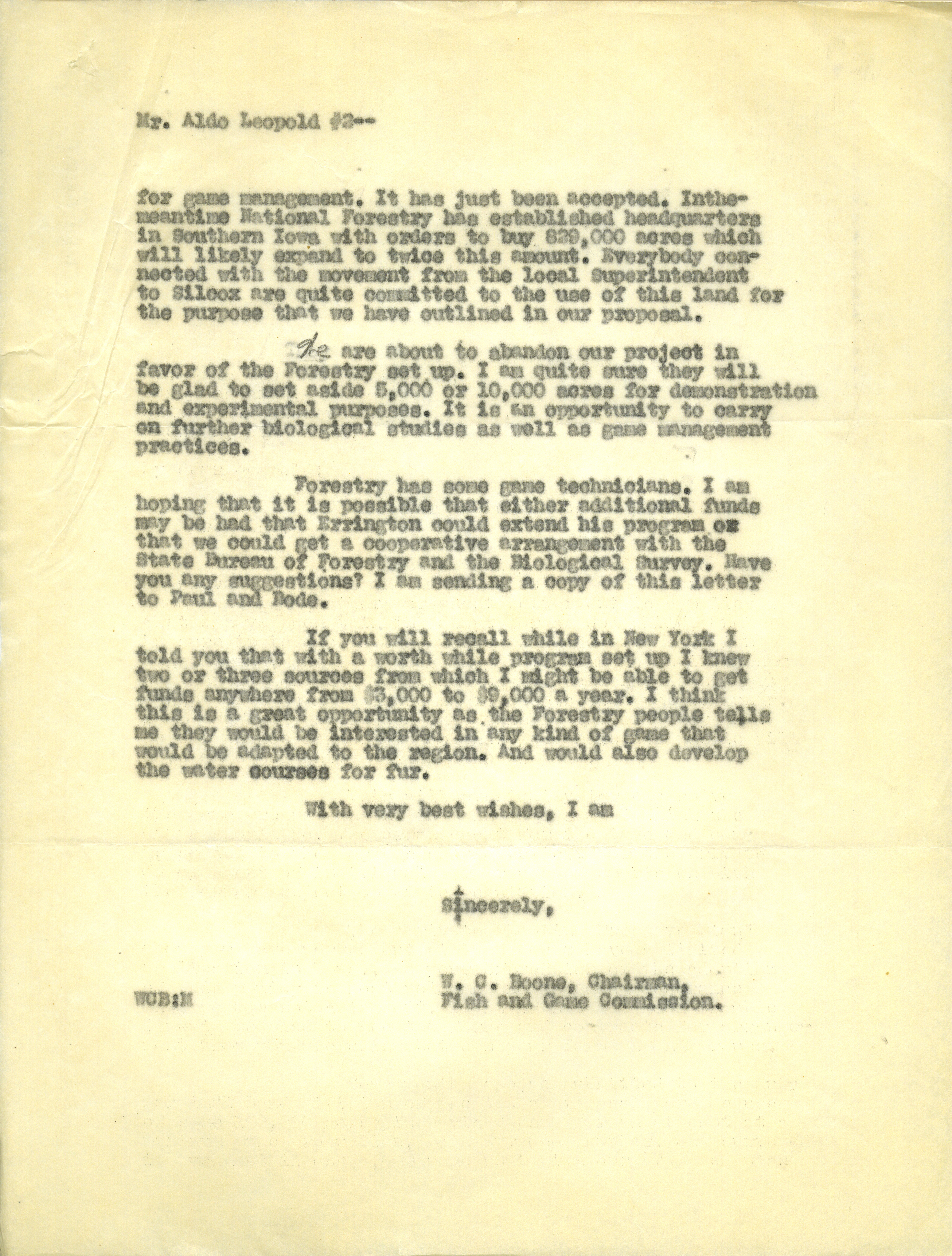 - Letter from Boone to Aldo Leopold, March 4, 1935