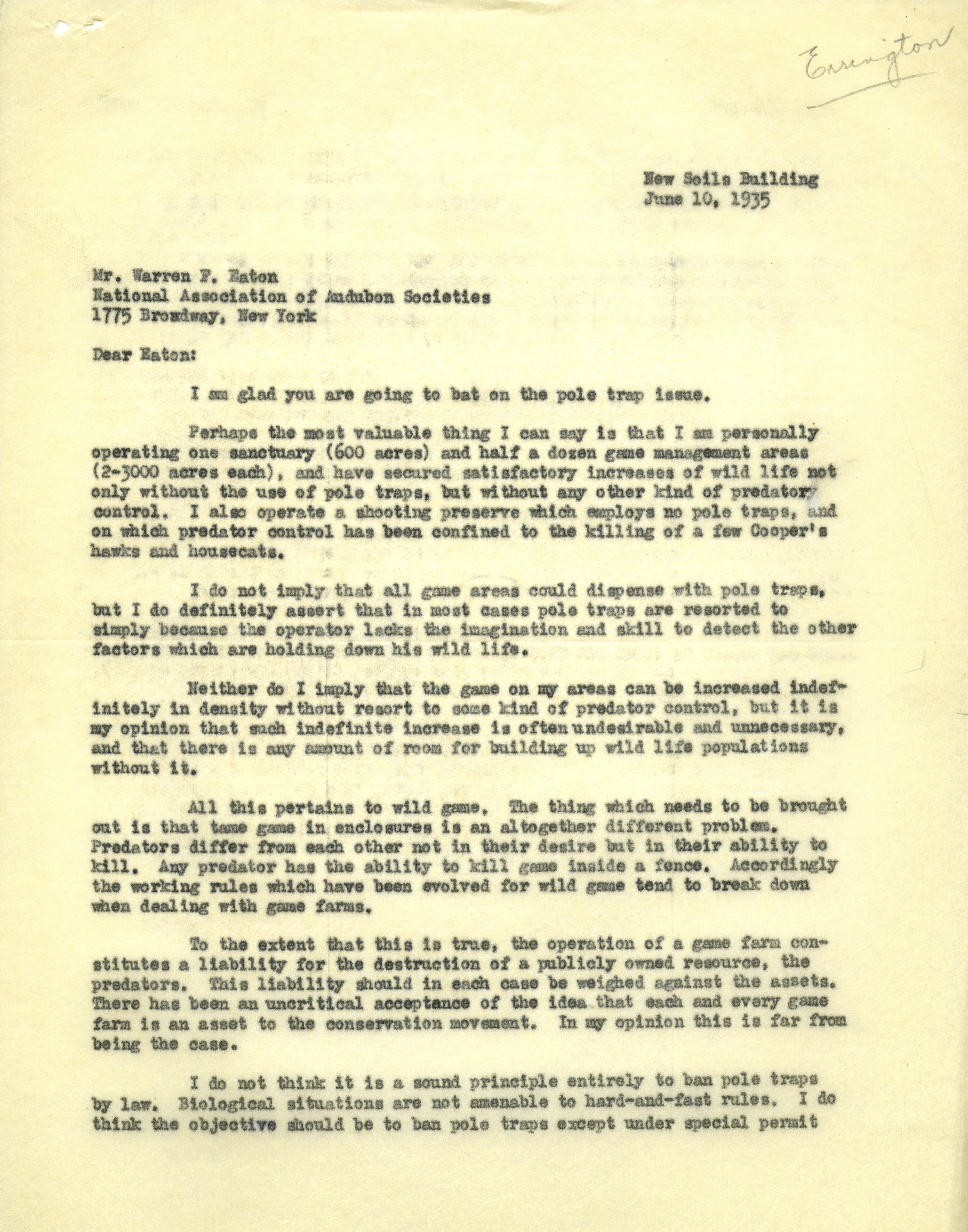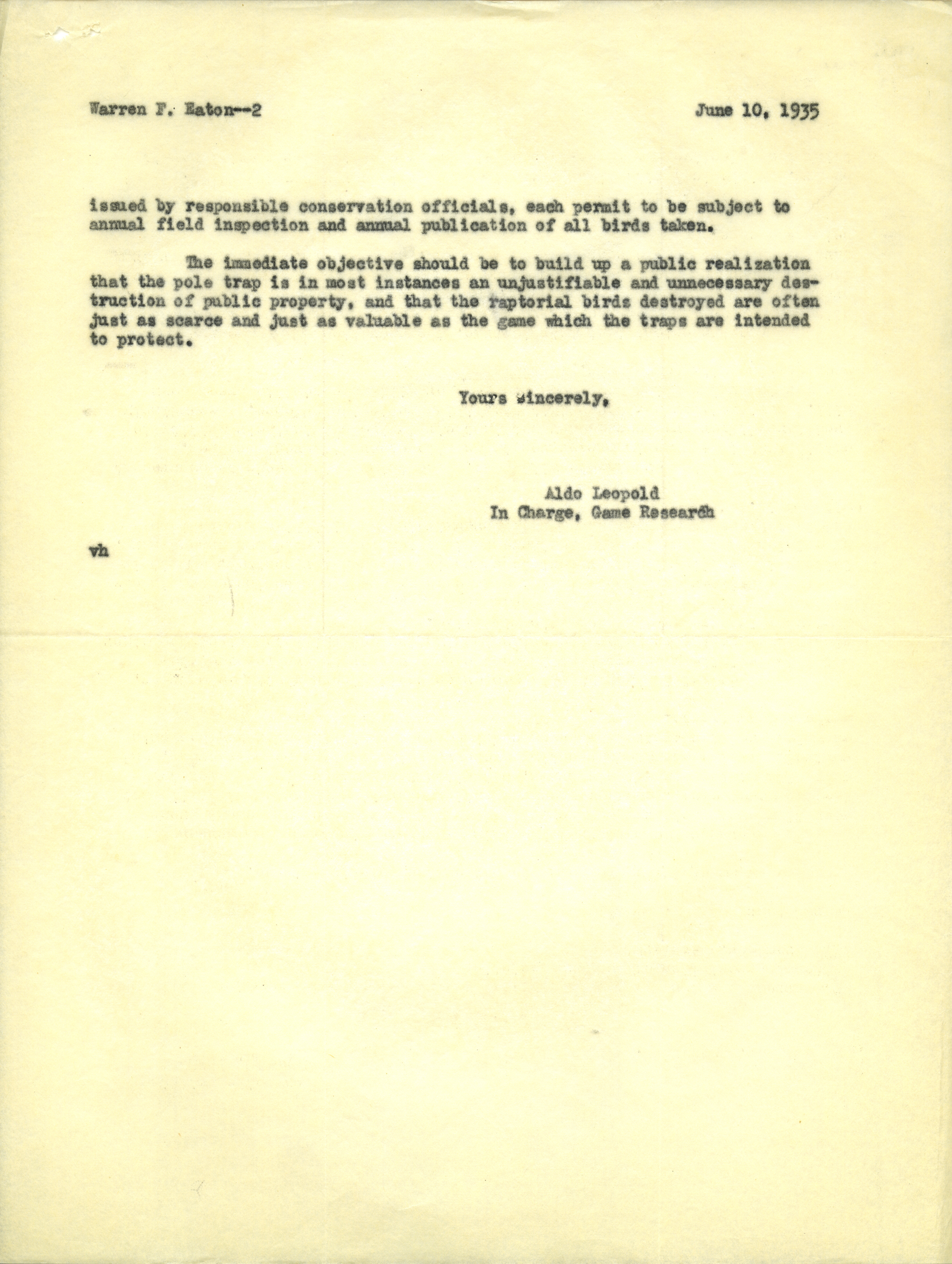 - Aldo Leopold letter to Eaton, June 10, 1935