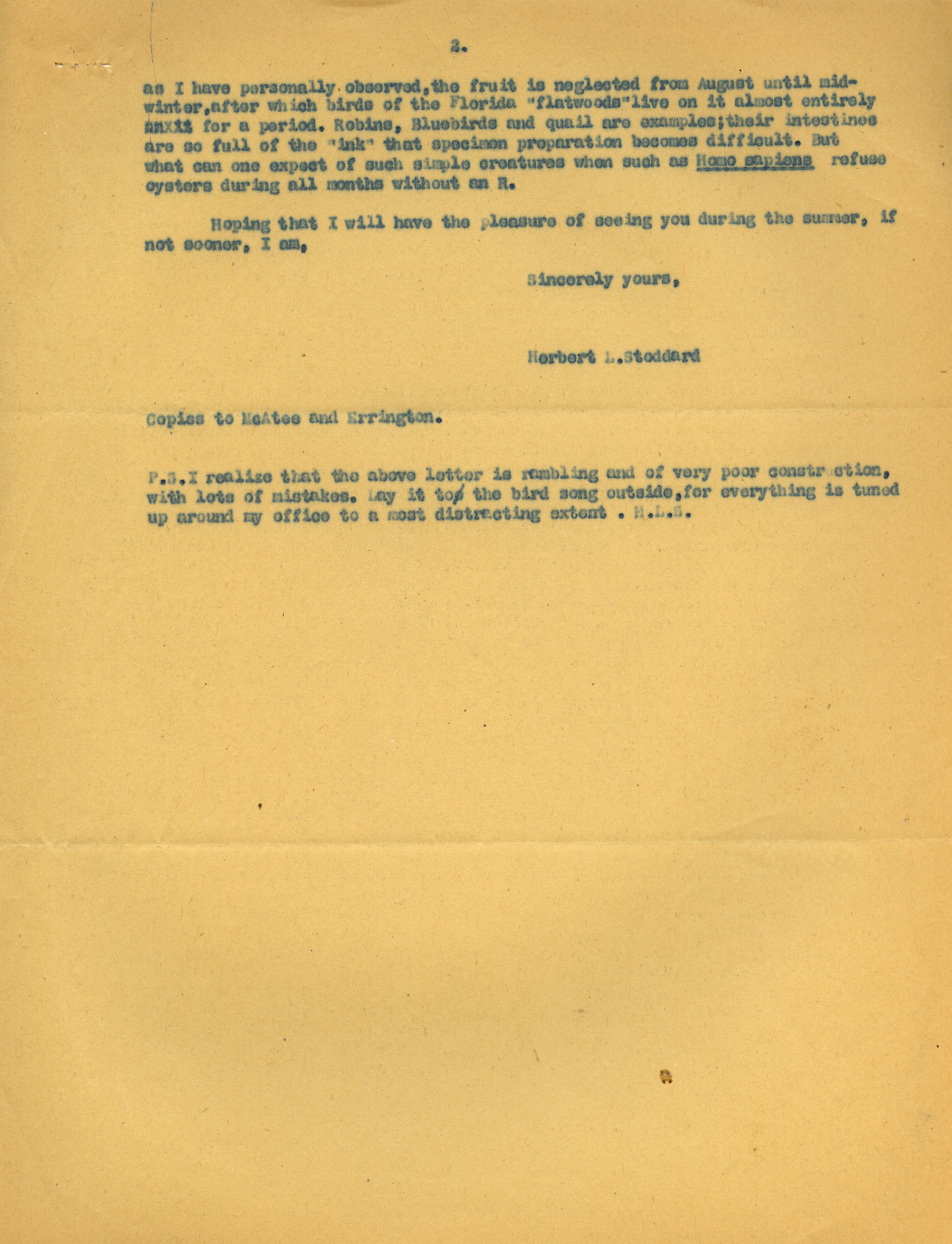 - "Letter from Stoddard to Aldo Leopold, April 18, 1936", Paul L. Errington Collection, Iowa State University Library Digital Collections