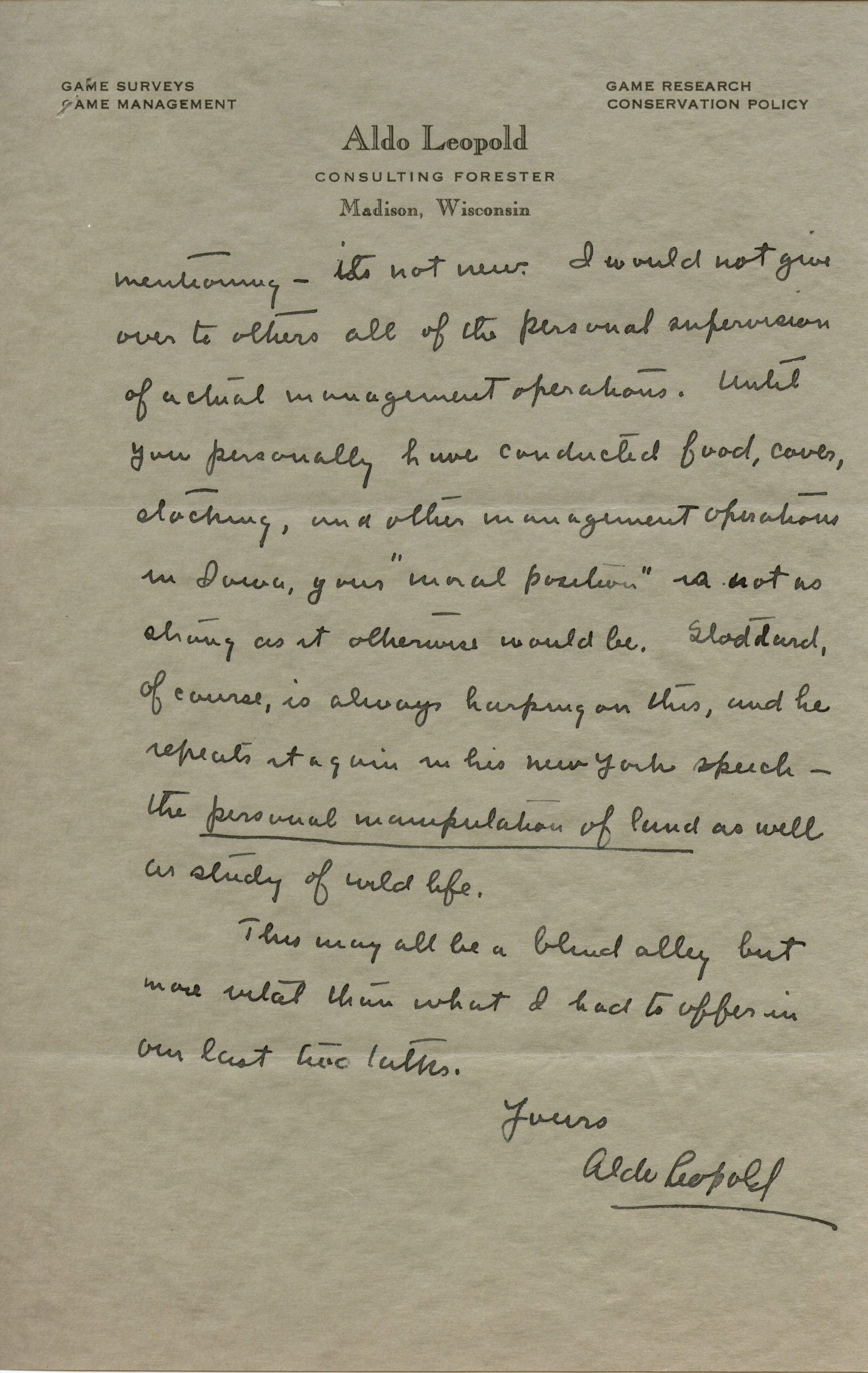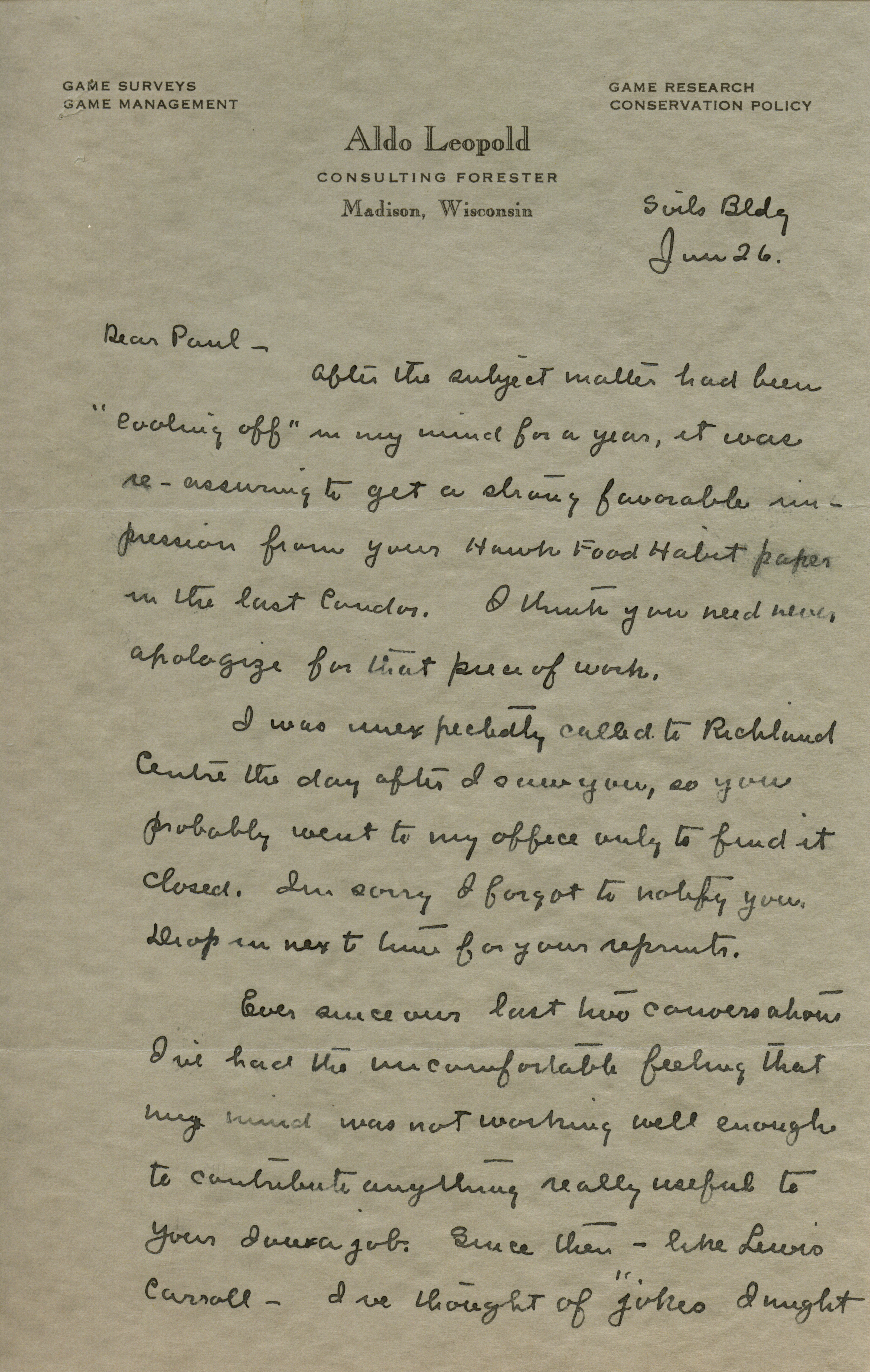 - Aldo Leopold letter to Paul Errington, June 26, 1937