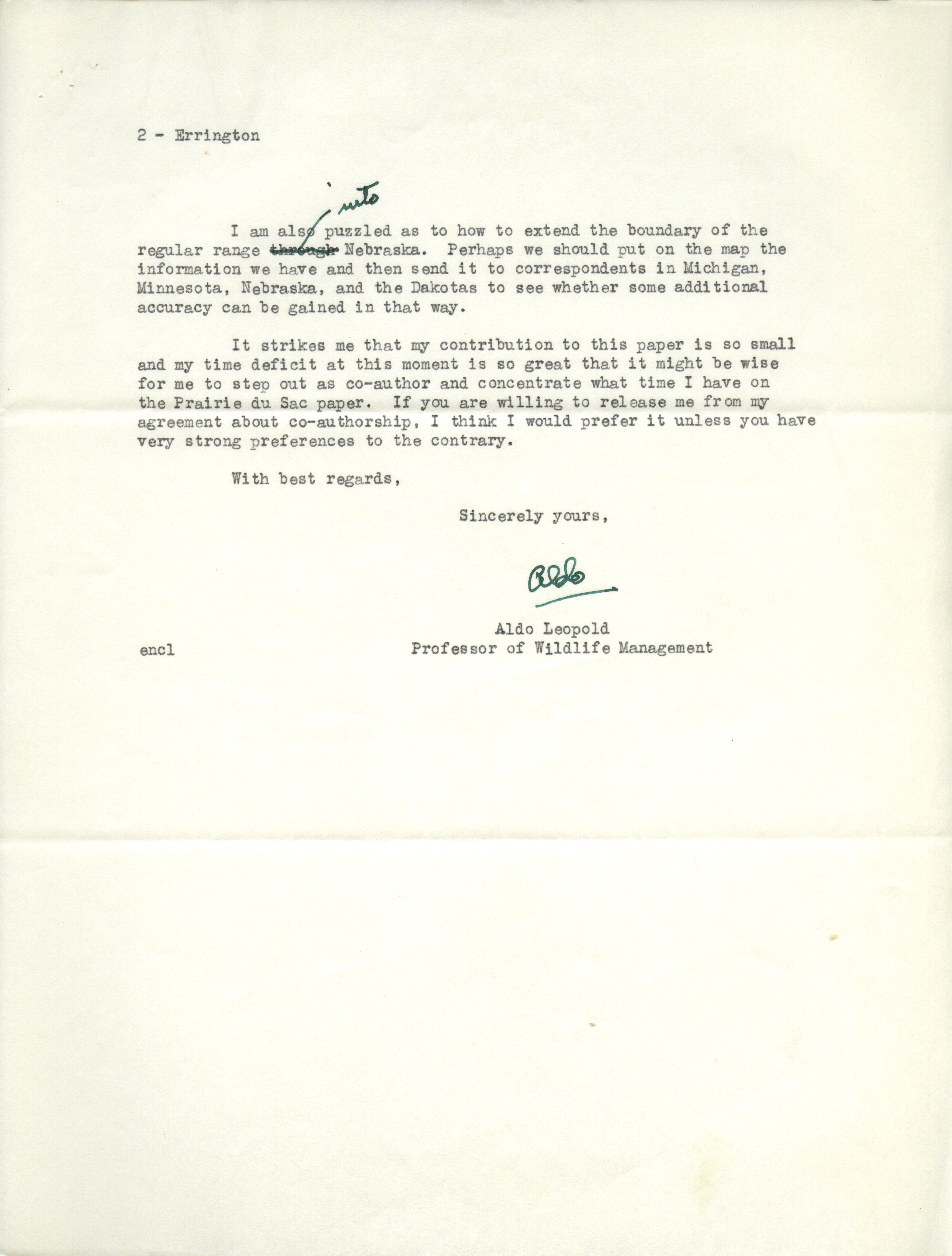 - Aldo Leopold letter to Paul Errington, September 4, 1940