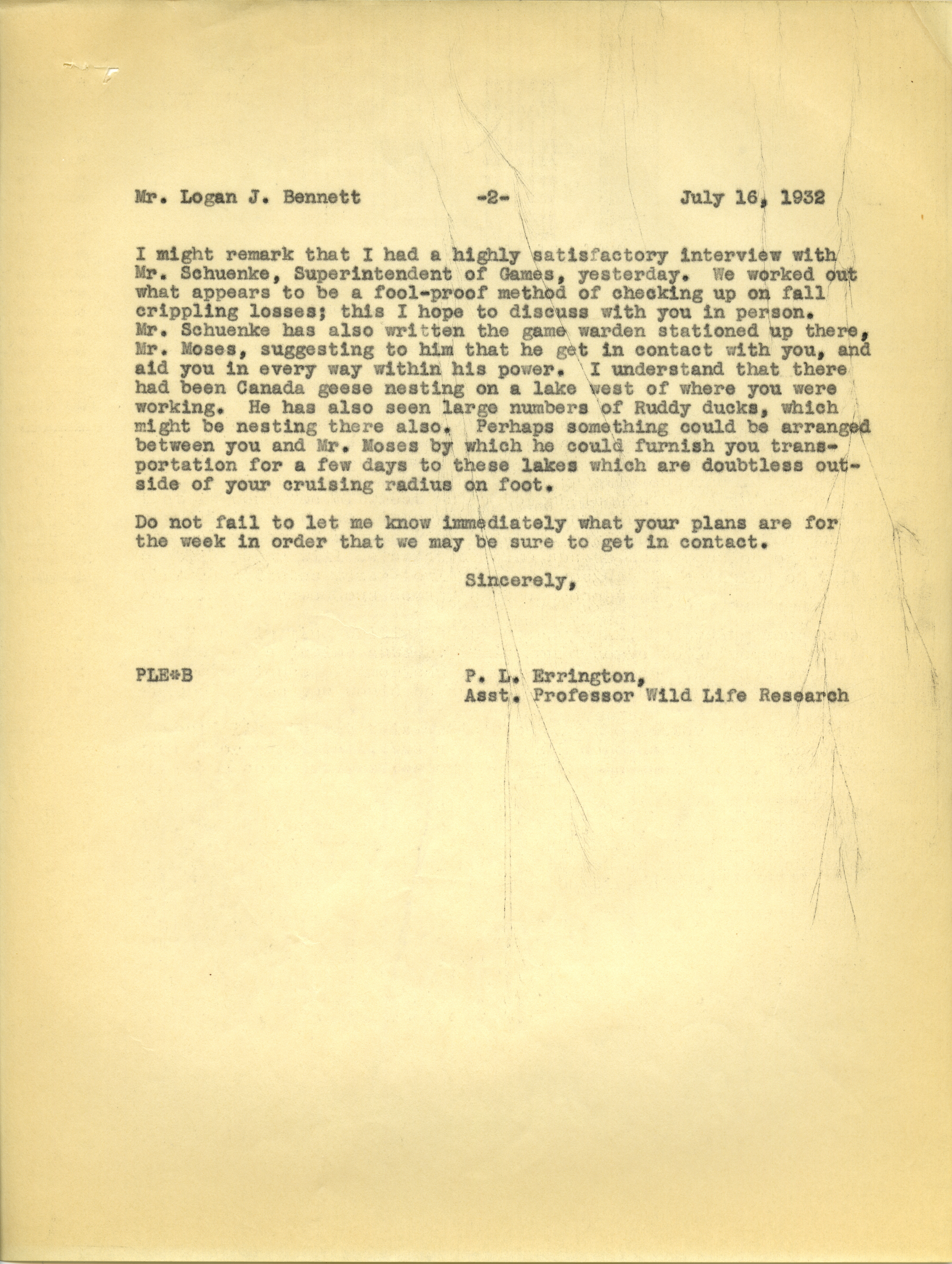 - "Paul L. Errington letter, July 16, 1932", Paul L. Errington Collection, Iowa State University Library Digital Collections