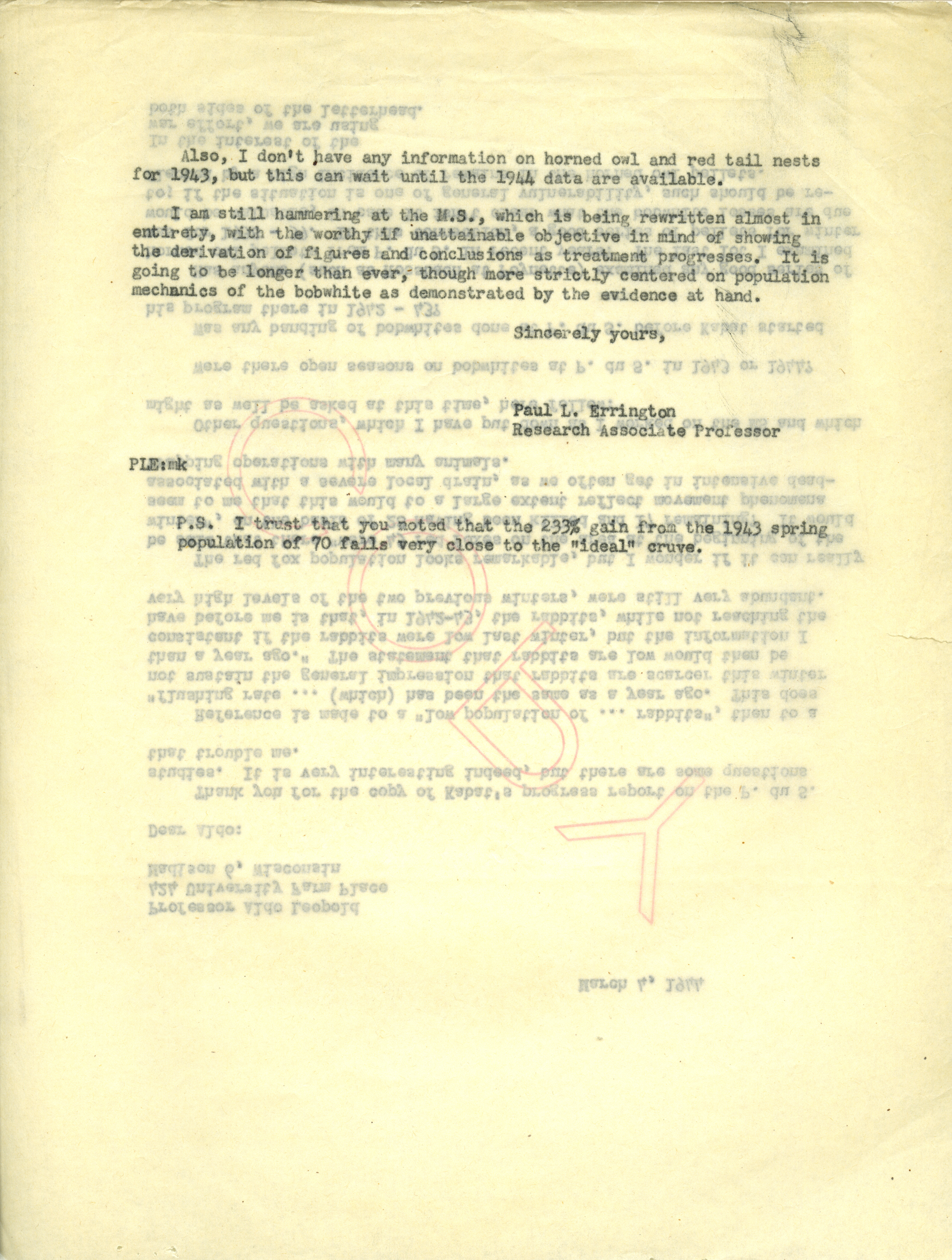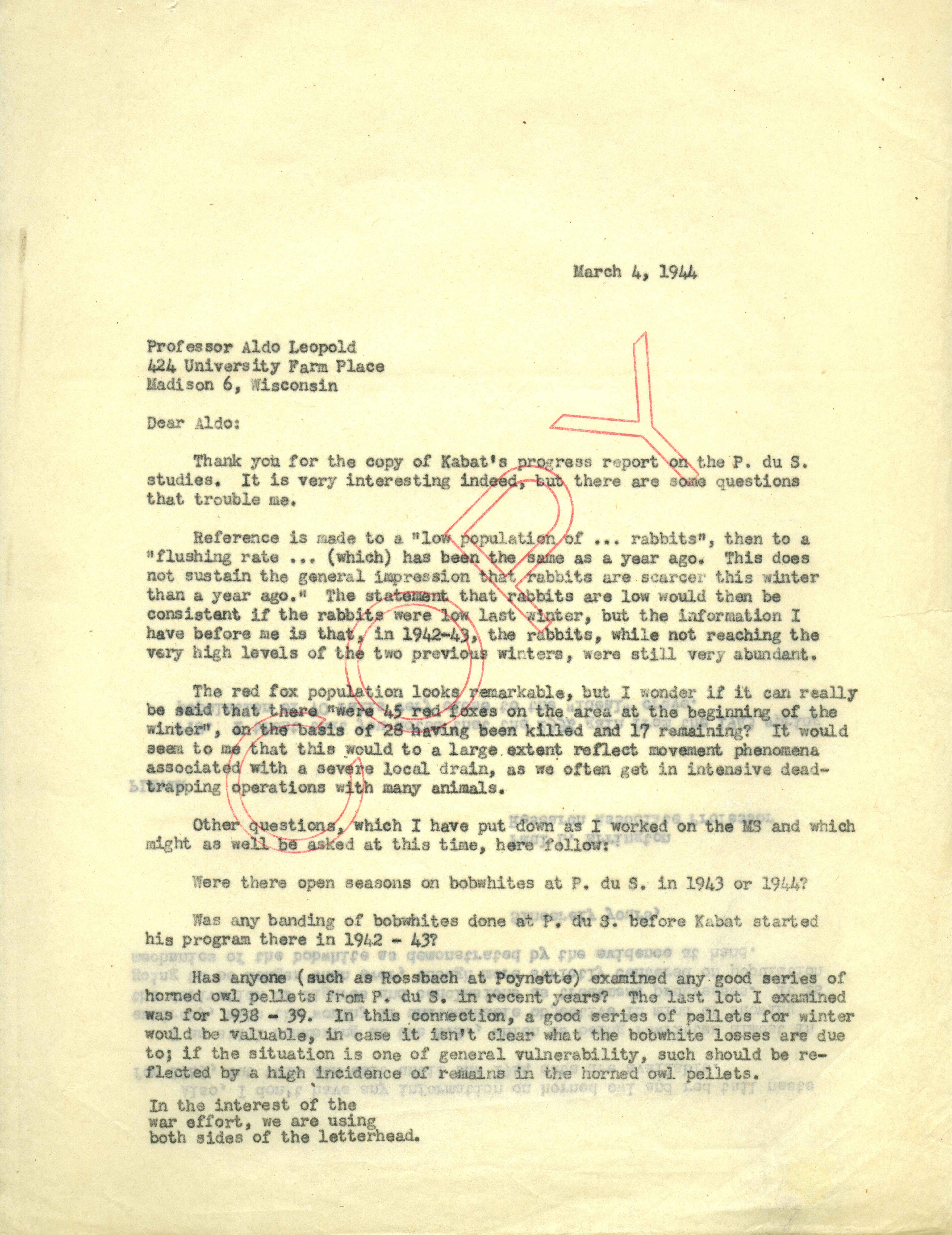 - Paul Errington letter to Aldo Leopold, March 4, 1944