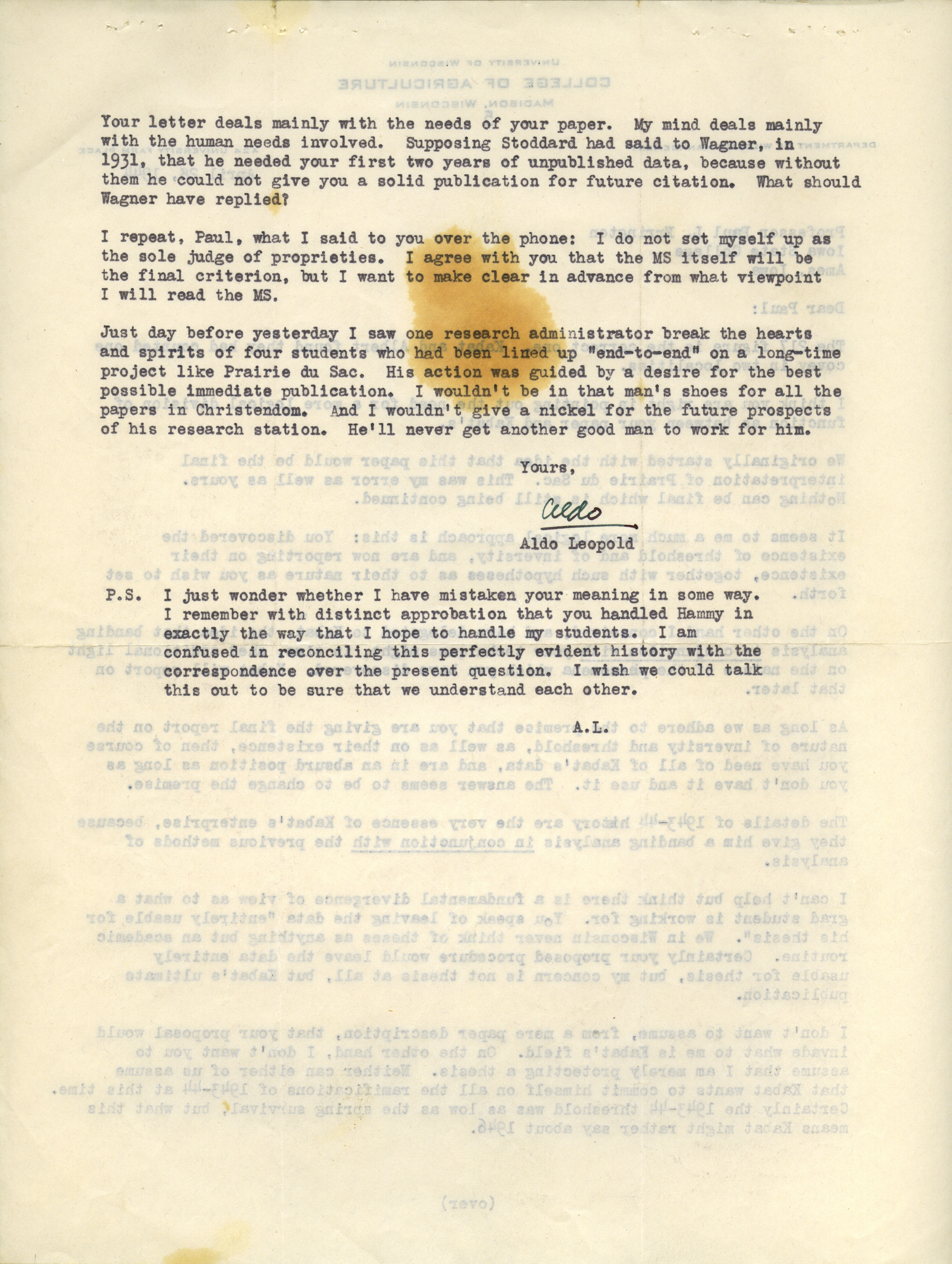 - Aldo Leopold letter to Paul Errington, April 28, 1944