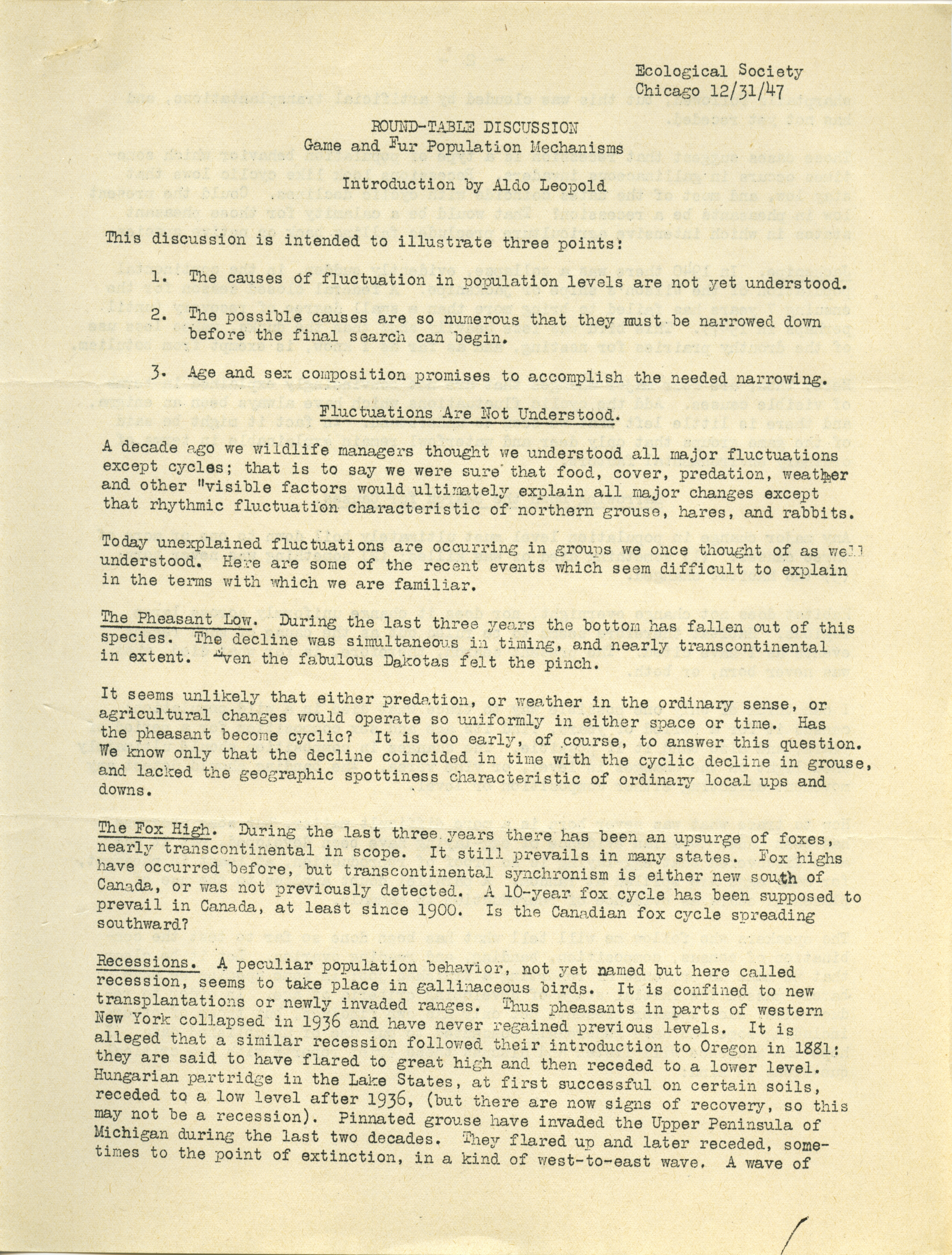 - Aldo Leopold letter to Paul Errington, December 17, 1947