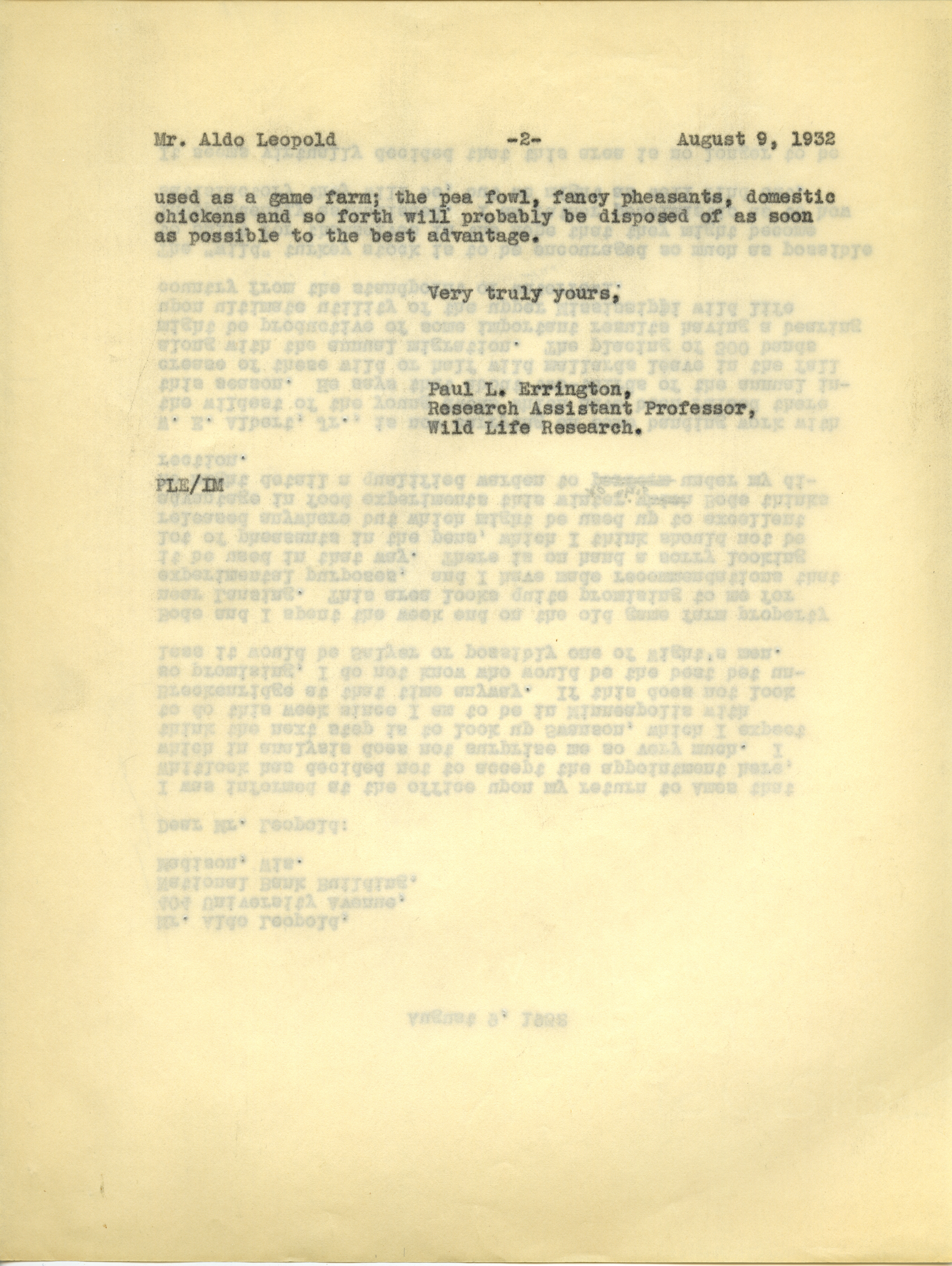 - Paul L. Errington letter 2, August 9, 1932