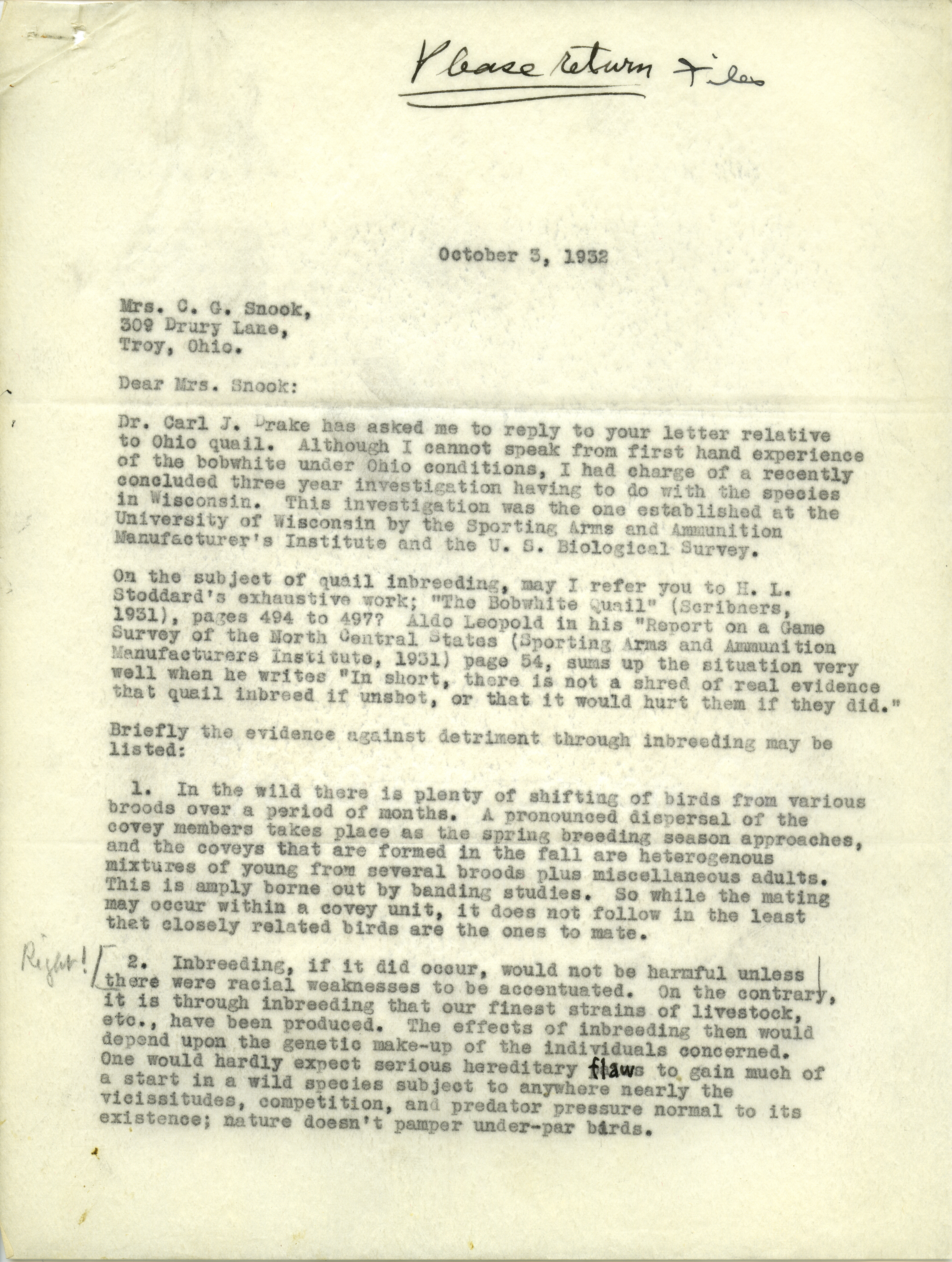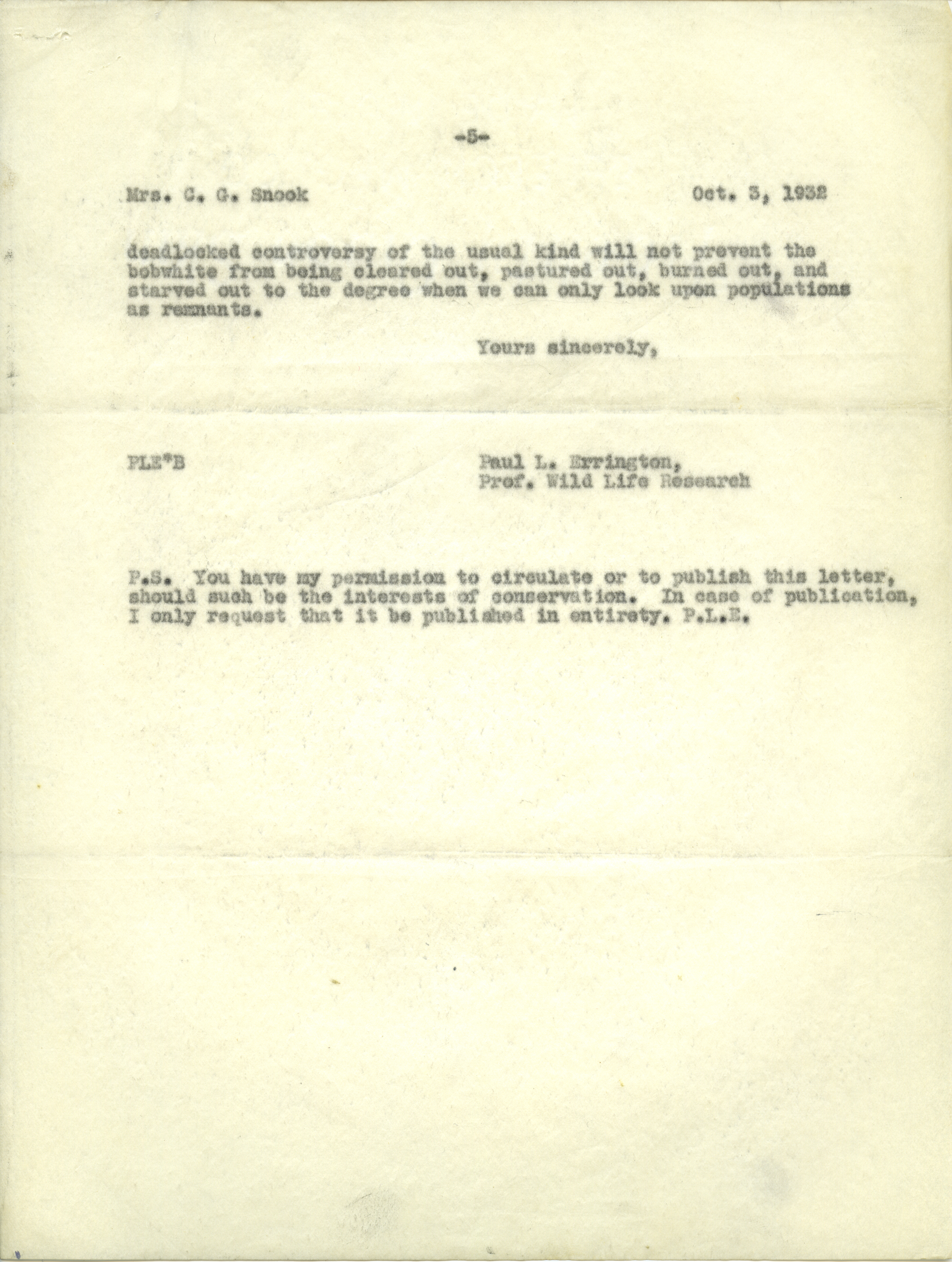- Paul L. Errington letter 1, October 3, 1932