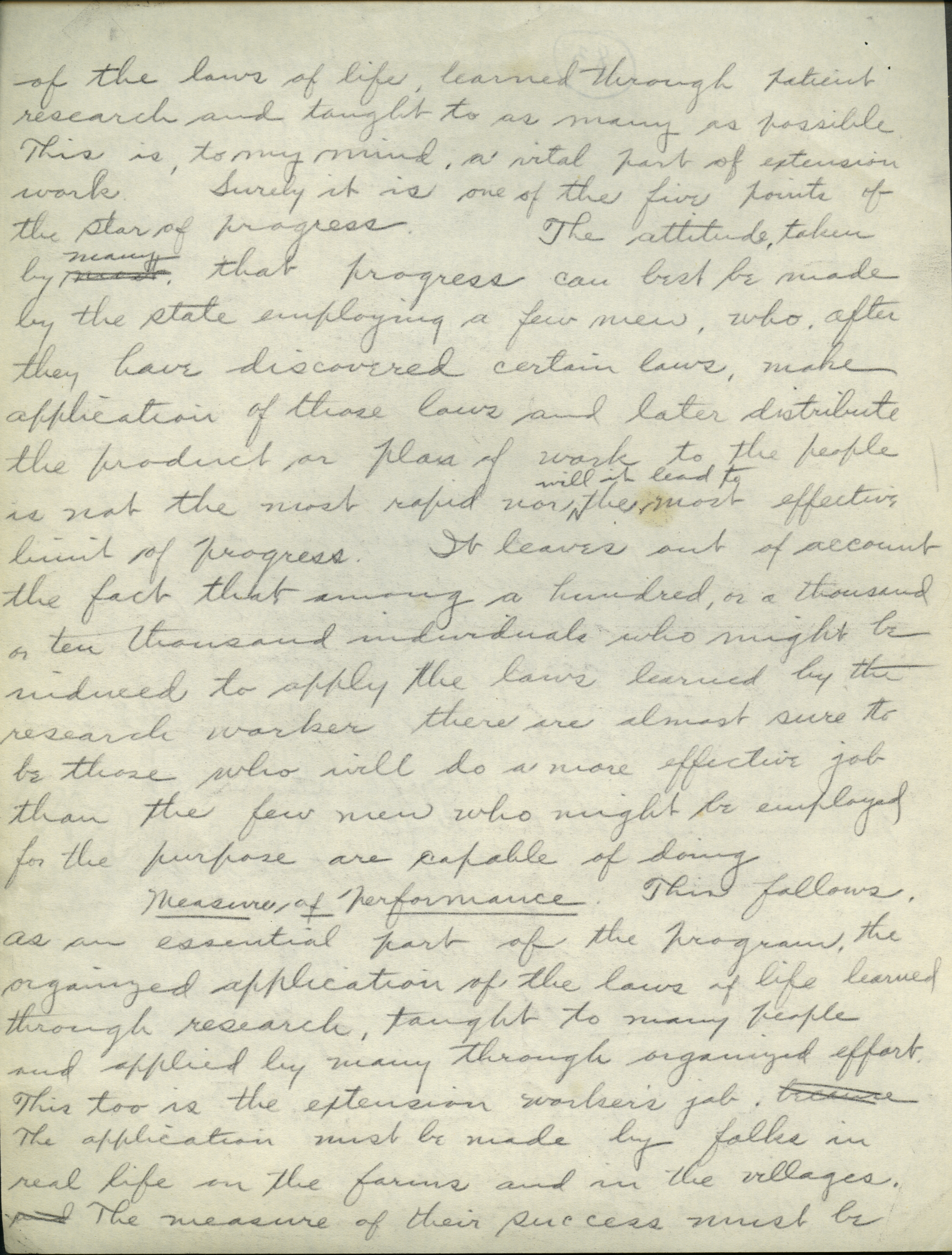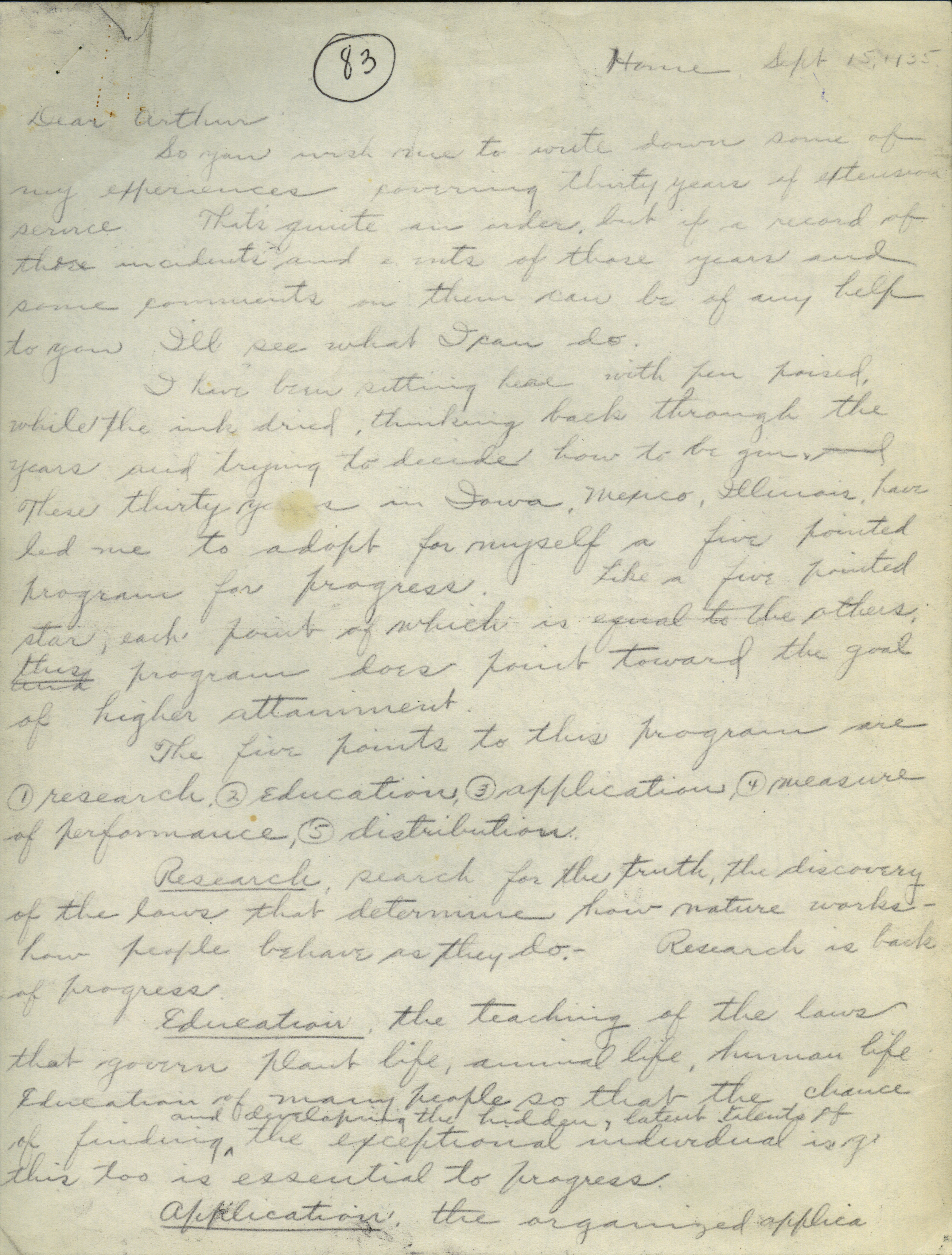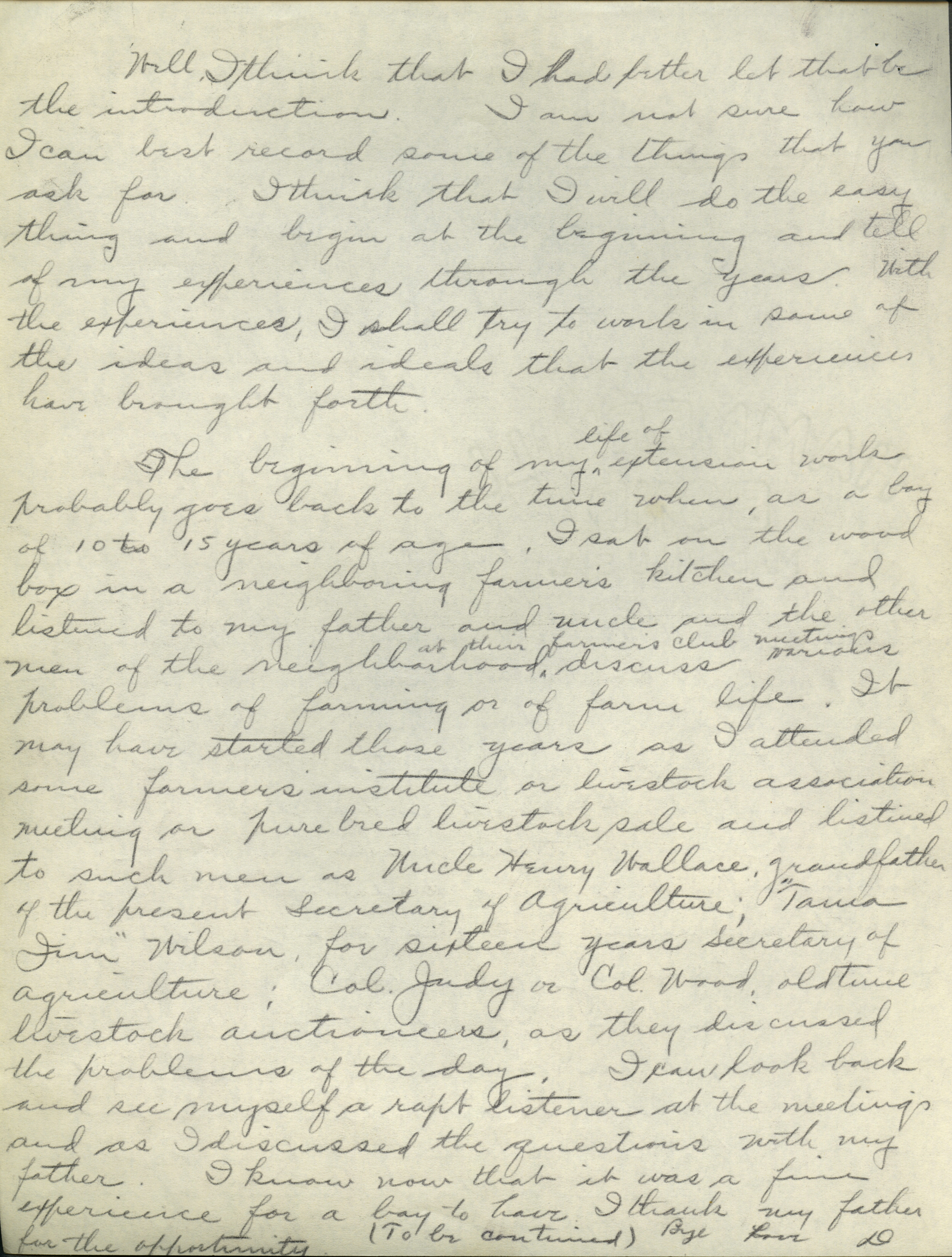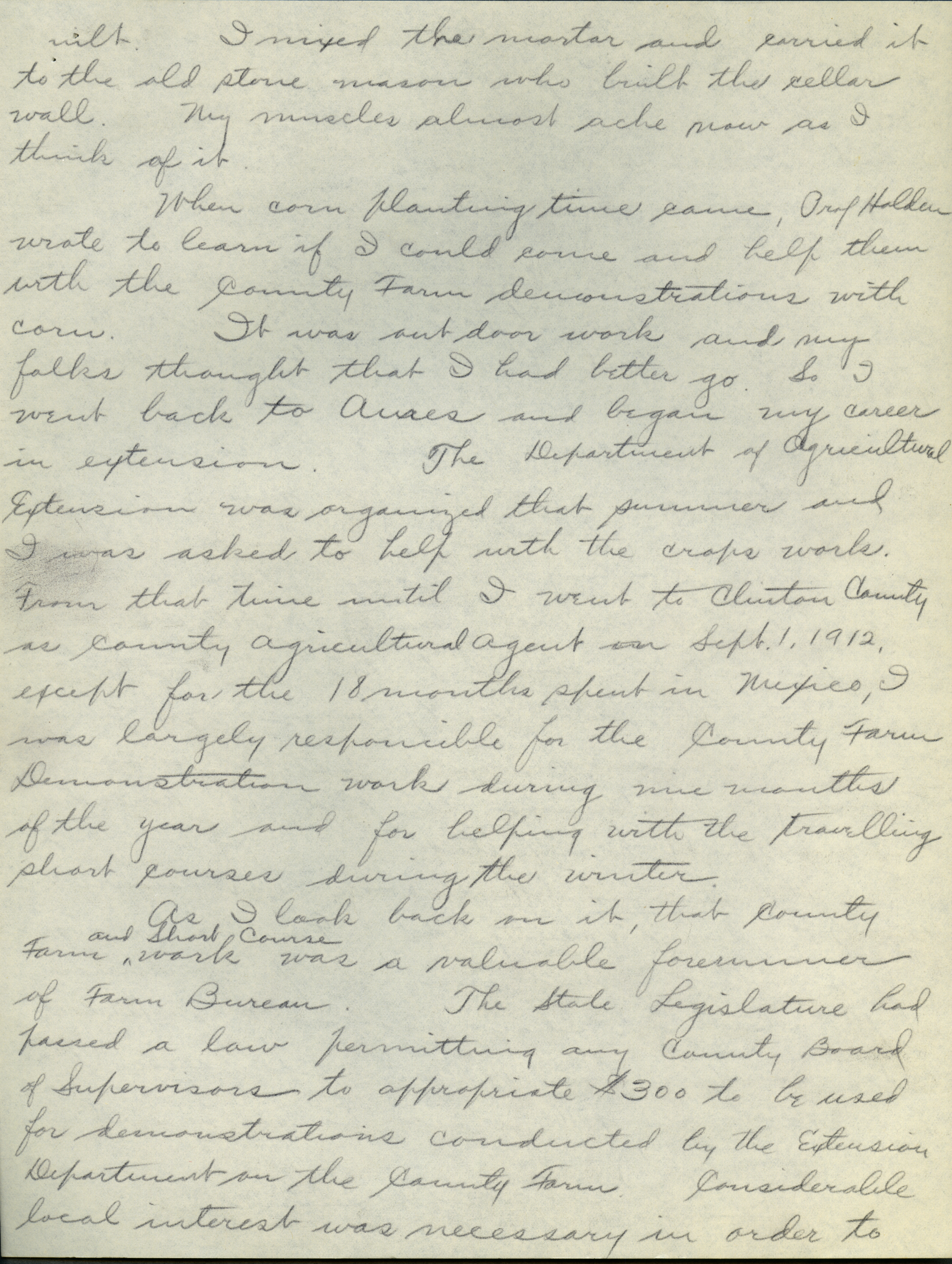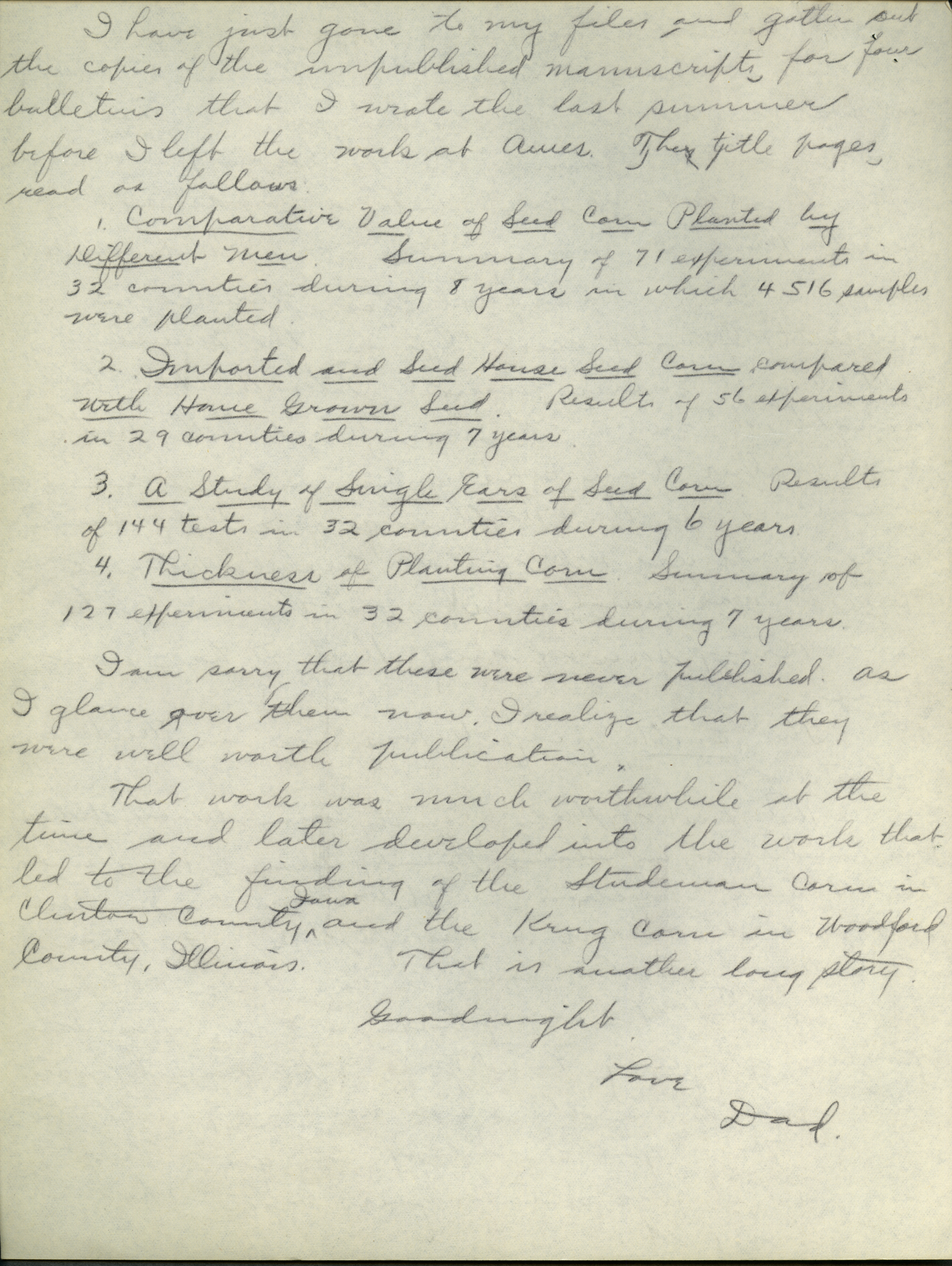 - Collection of six handwritten letters addressed to Arthur Mosher from his father, Martin L. Mosher. The topics of the letters include the five steps in agricultural development, early extension work, Mosher's general philosophy regarding extension work, and personal recollections.