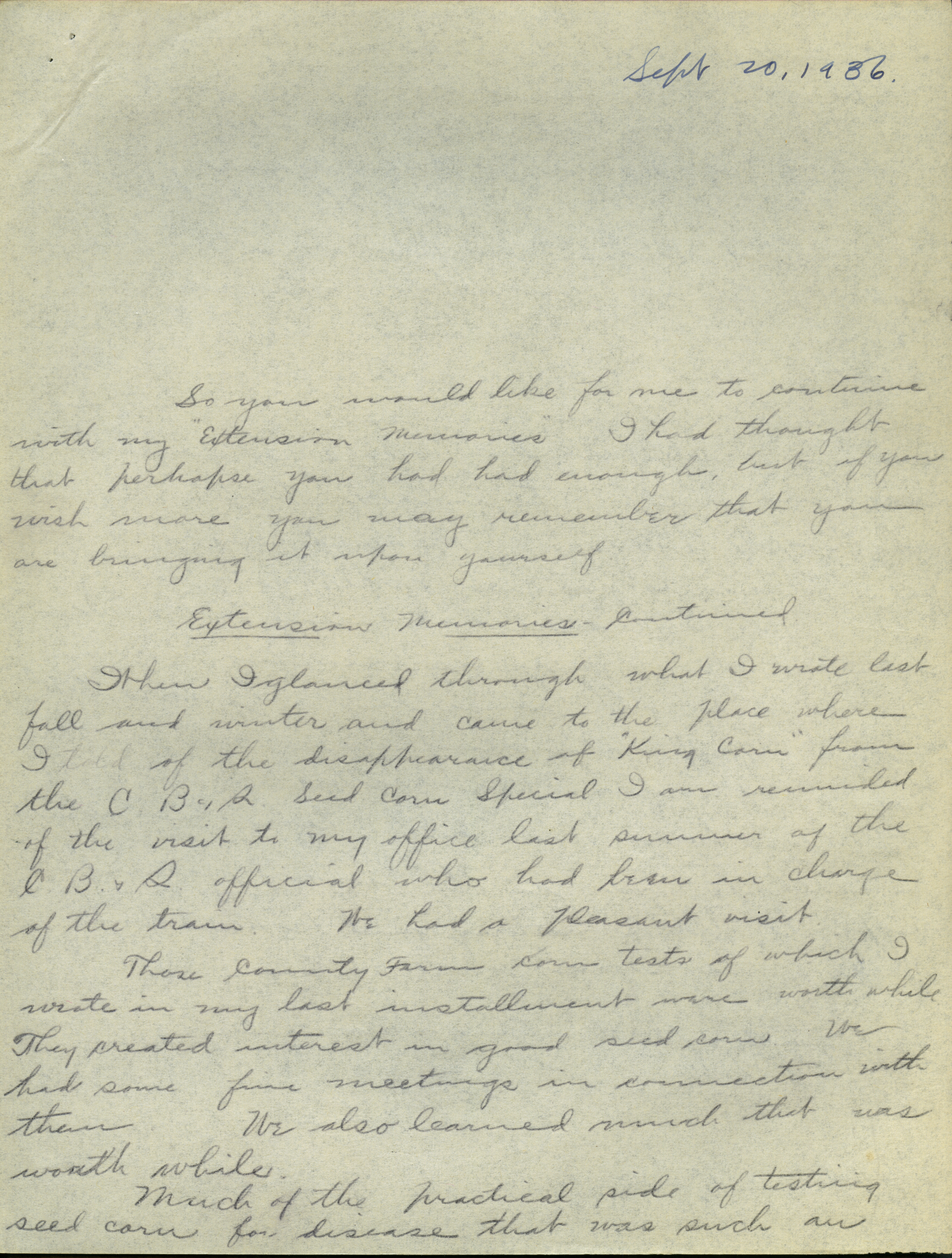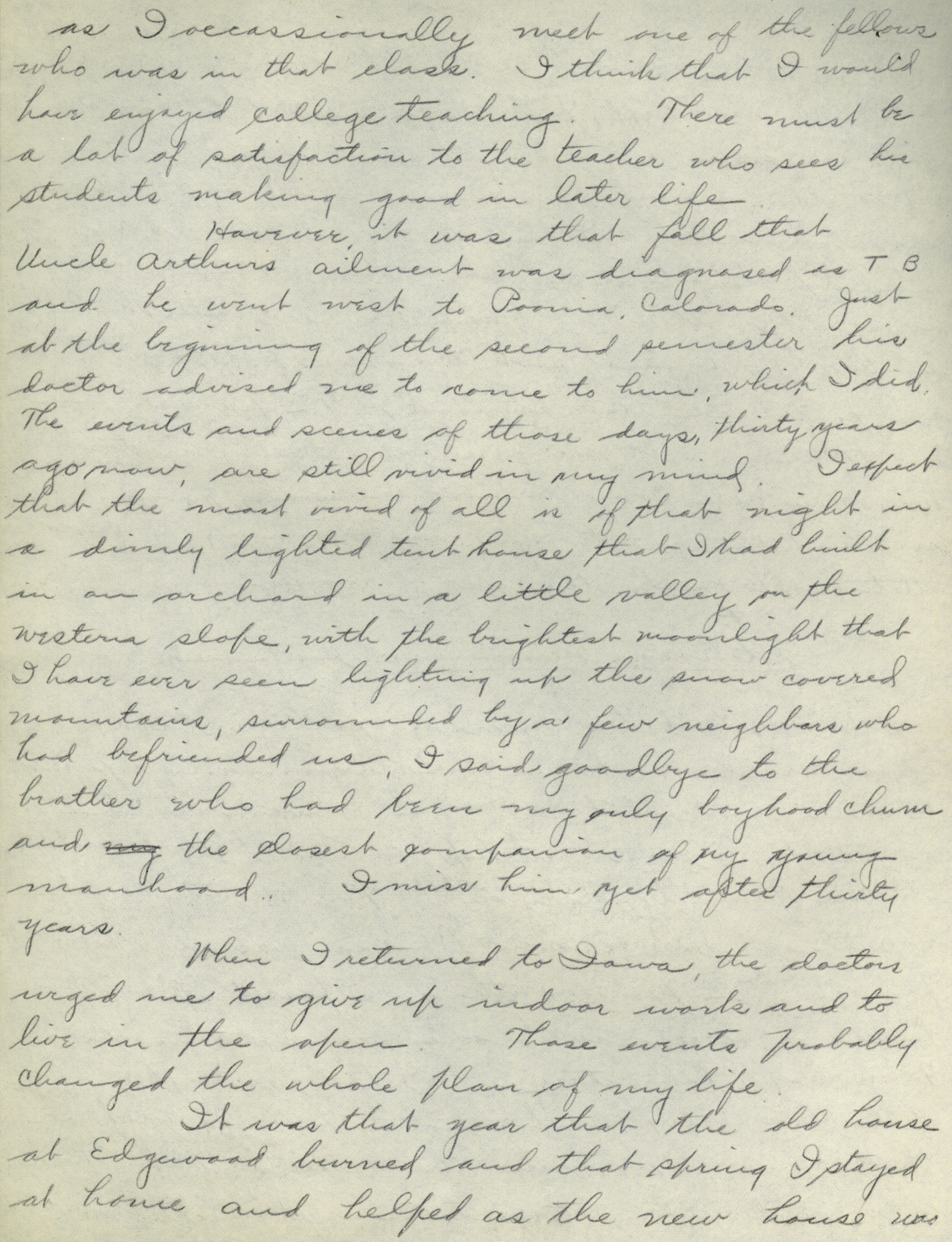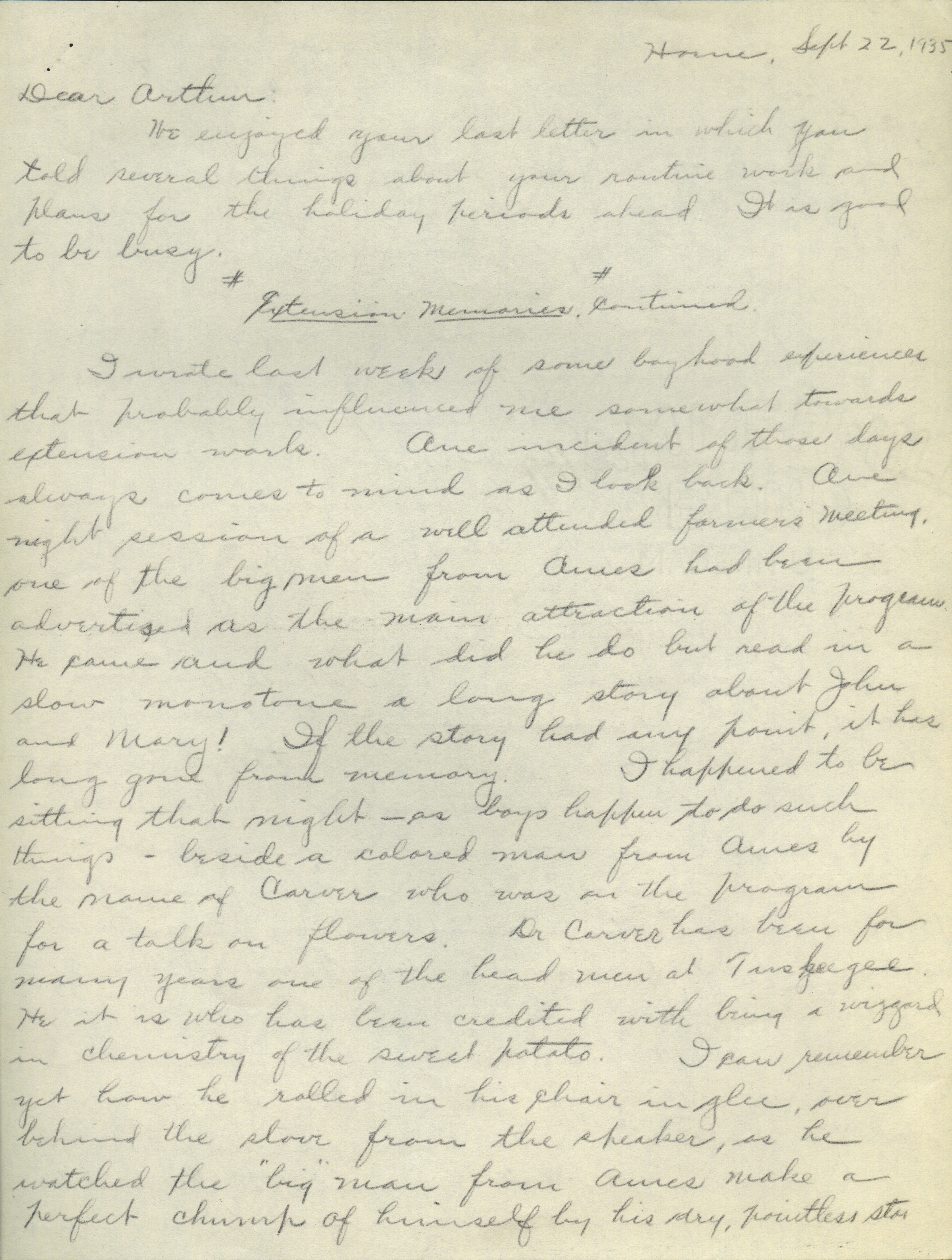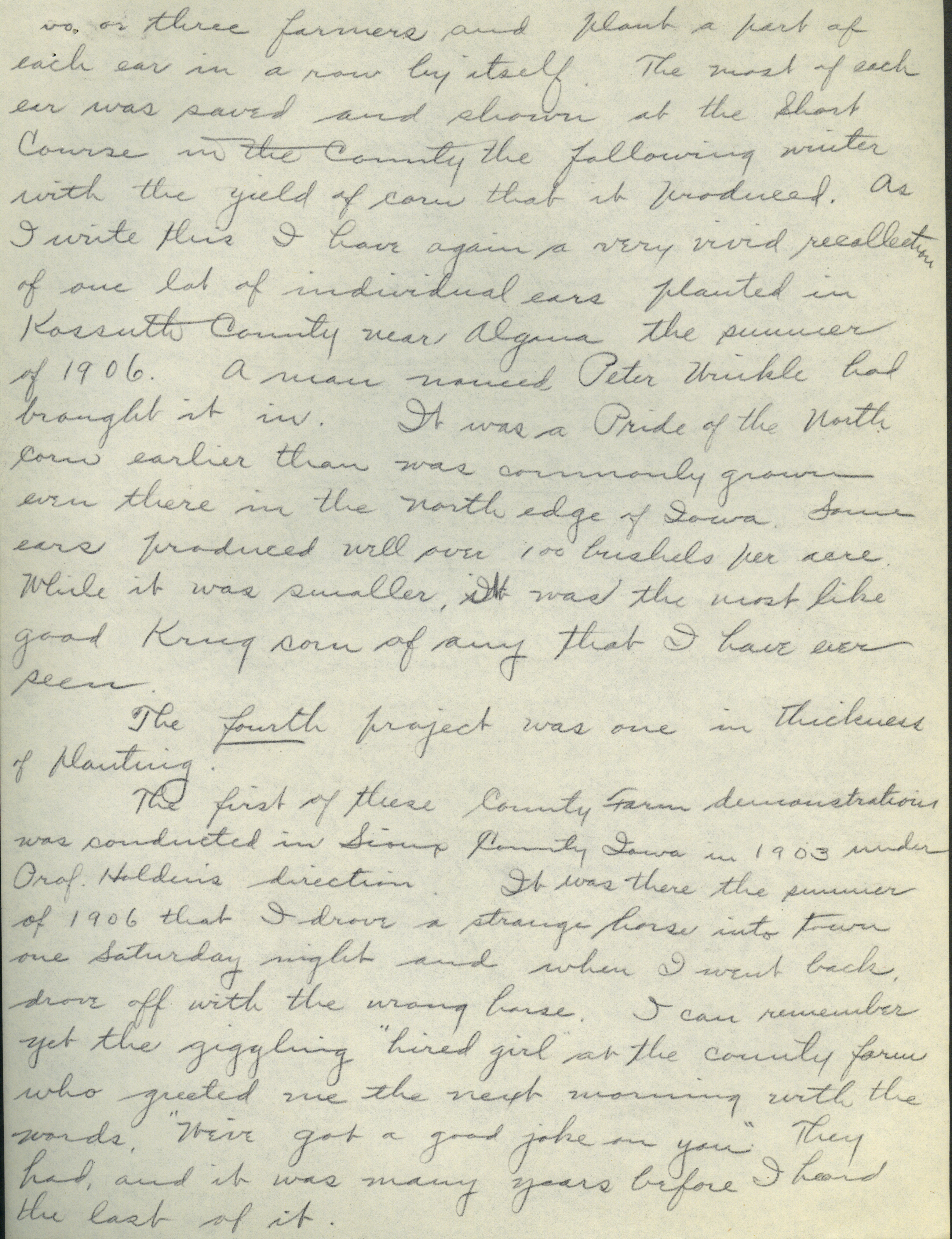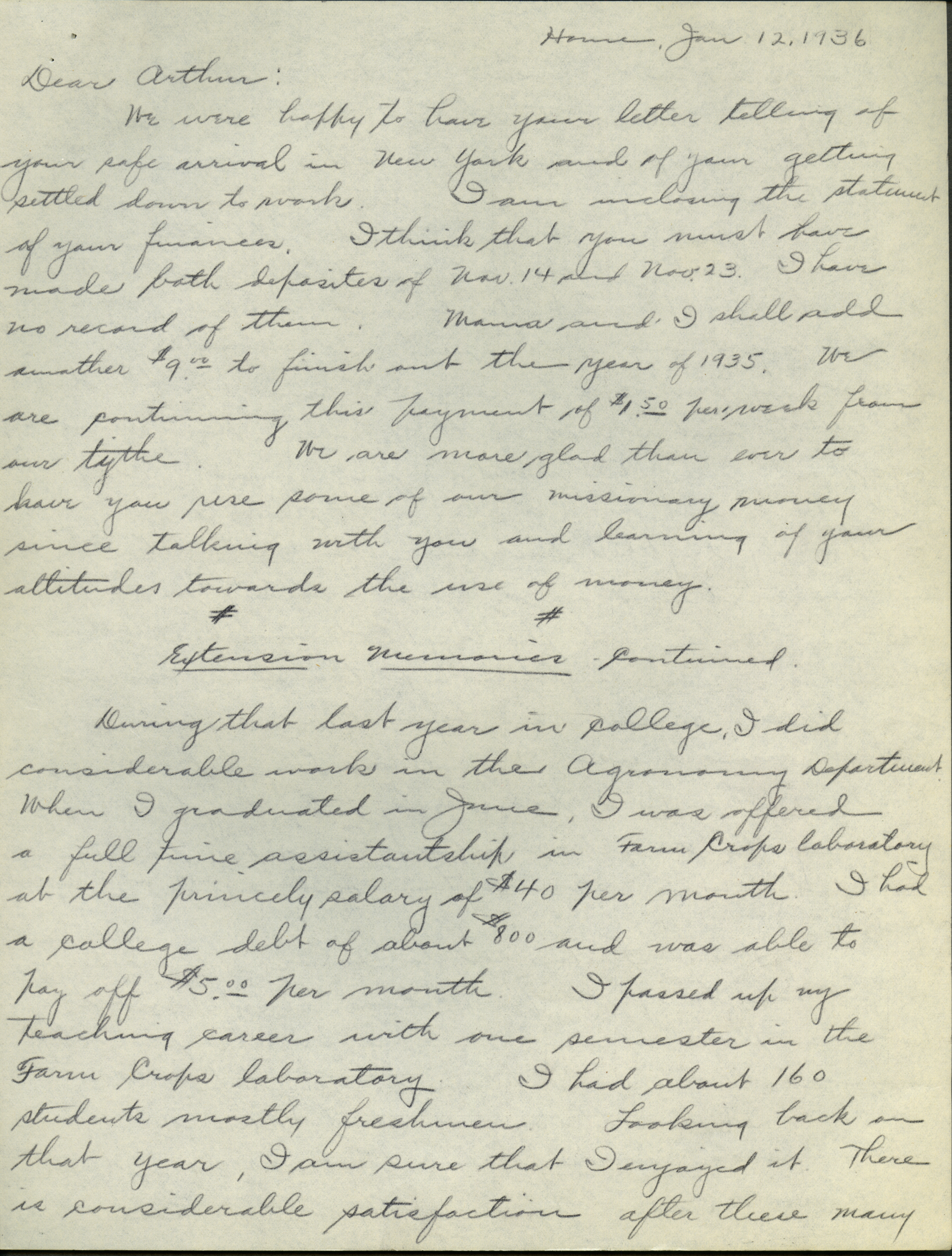 - Collection of six handwritten letters addressed to Arthur Mosher from his father, Martin L. Mosher. The topics of the letters include the five steps in agricultural development, early extension work, Mosher's general philosophy regarding extension work, and personal recollections.