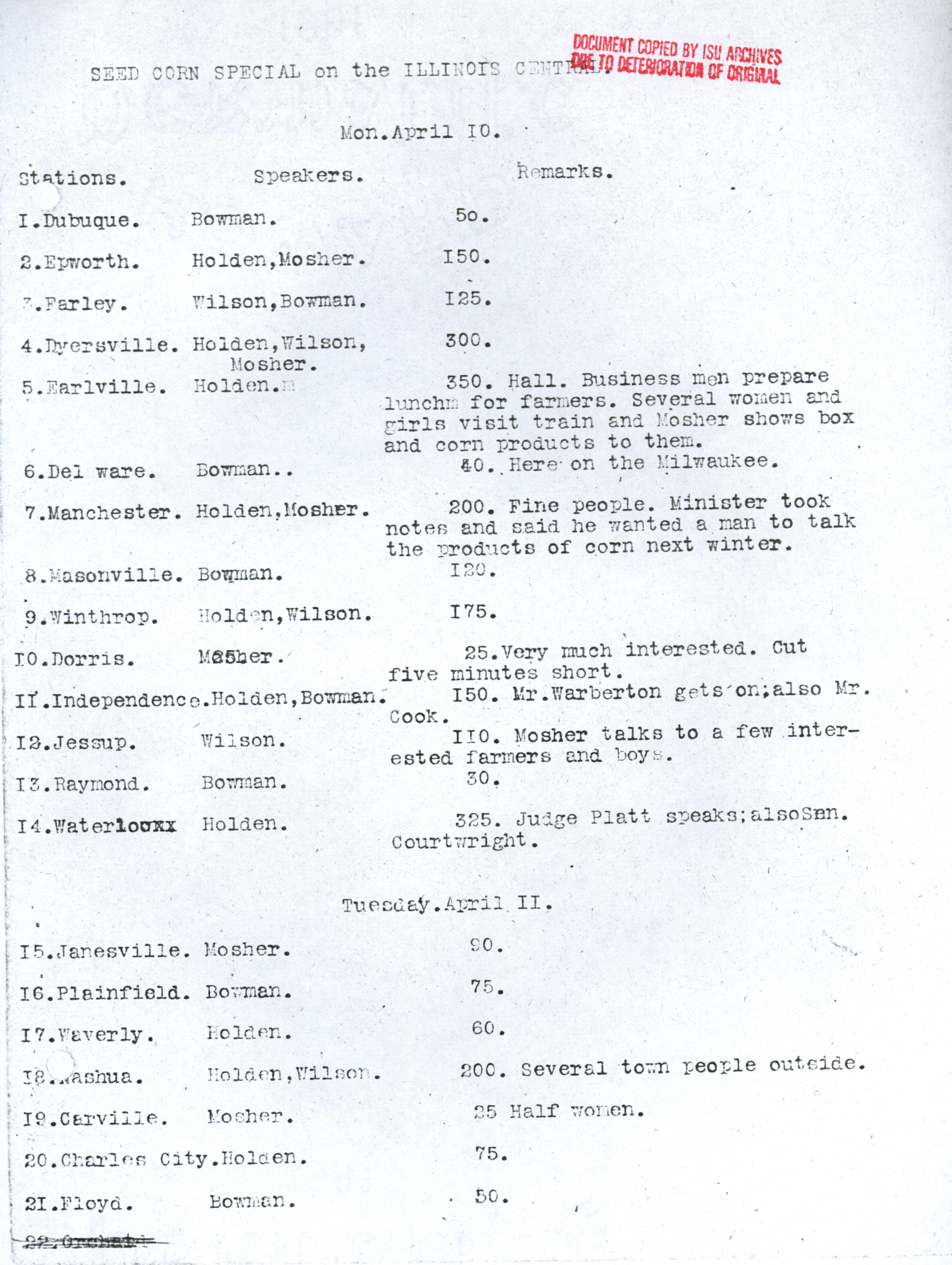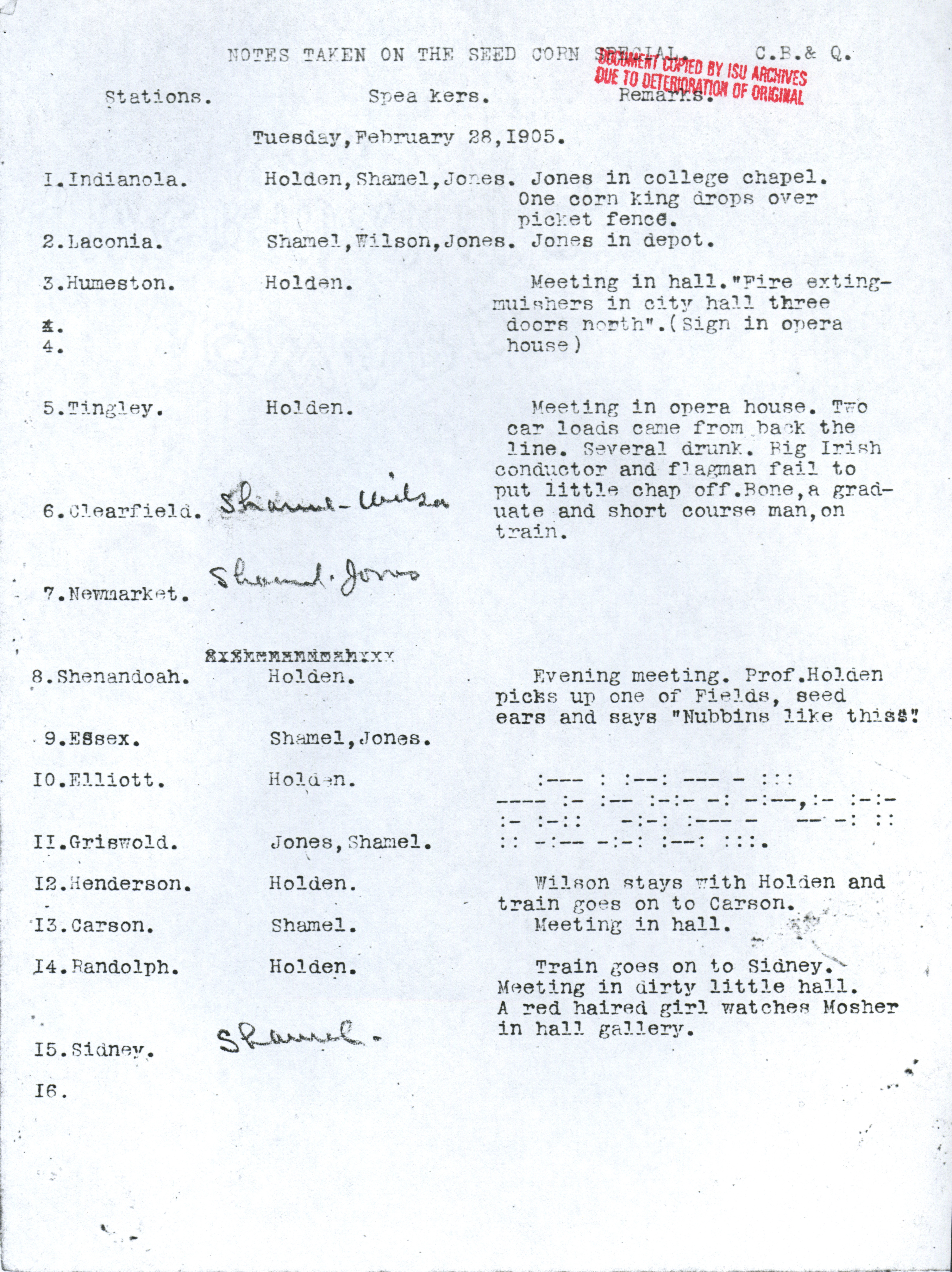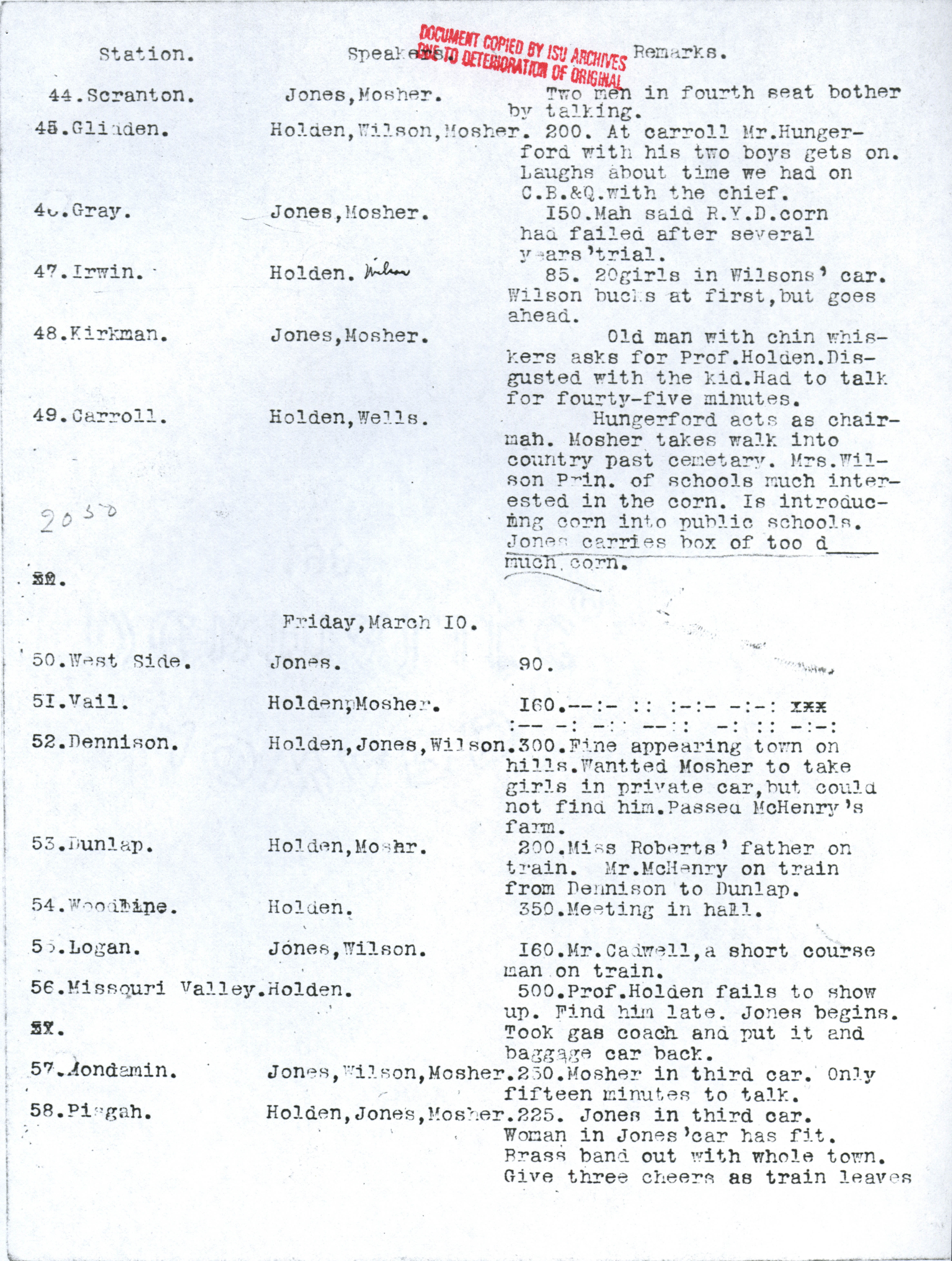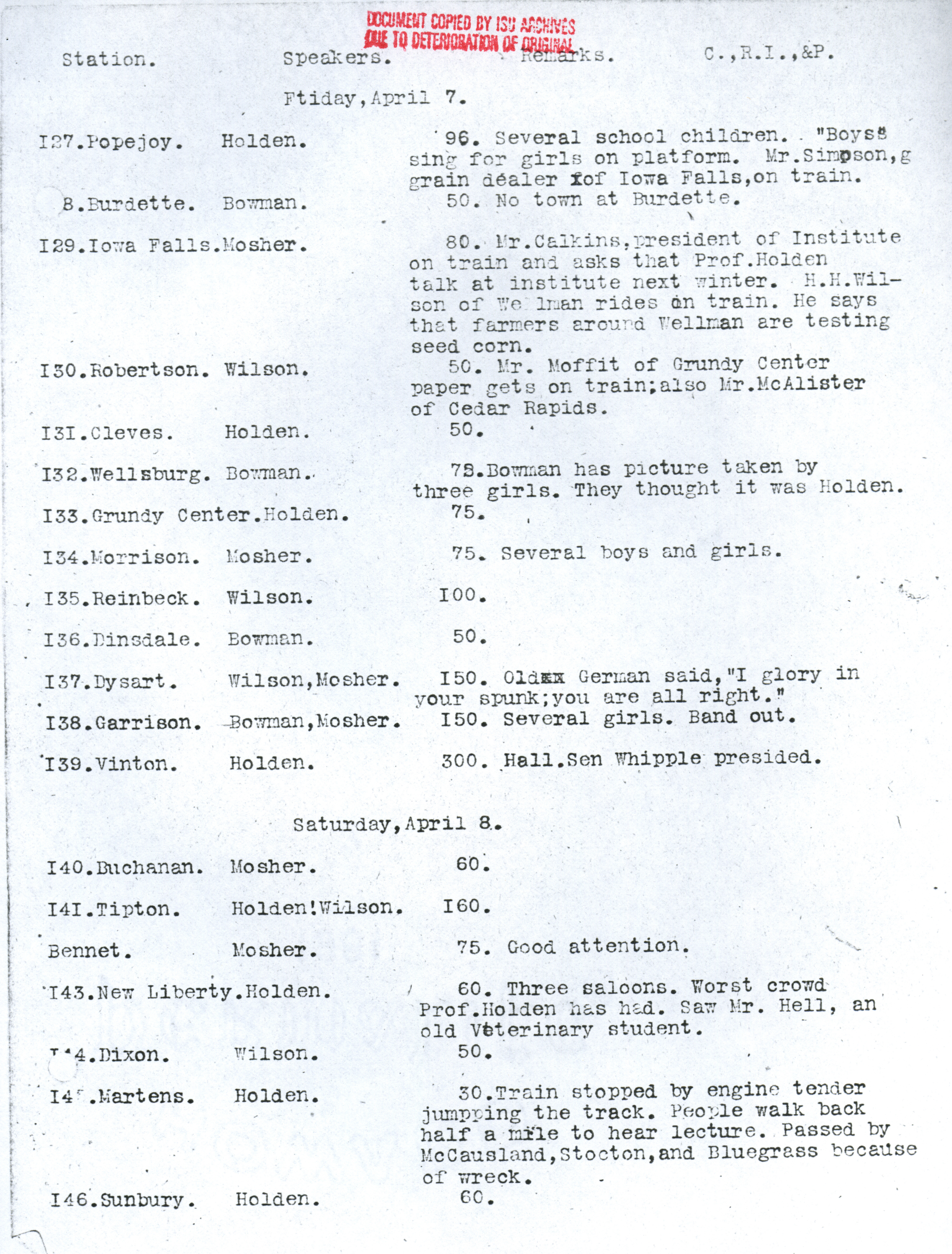 - "Diary of the seed corn train", Iowa State University Extension and Outreach Collection, Iowa State University Library Digital Collections