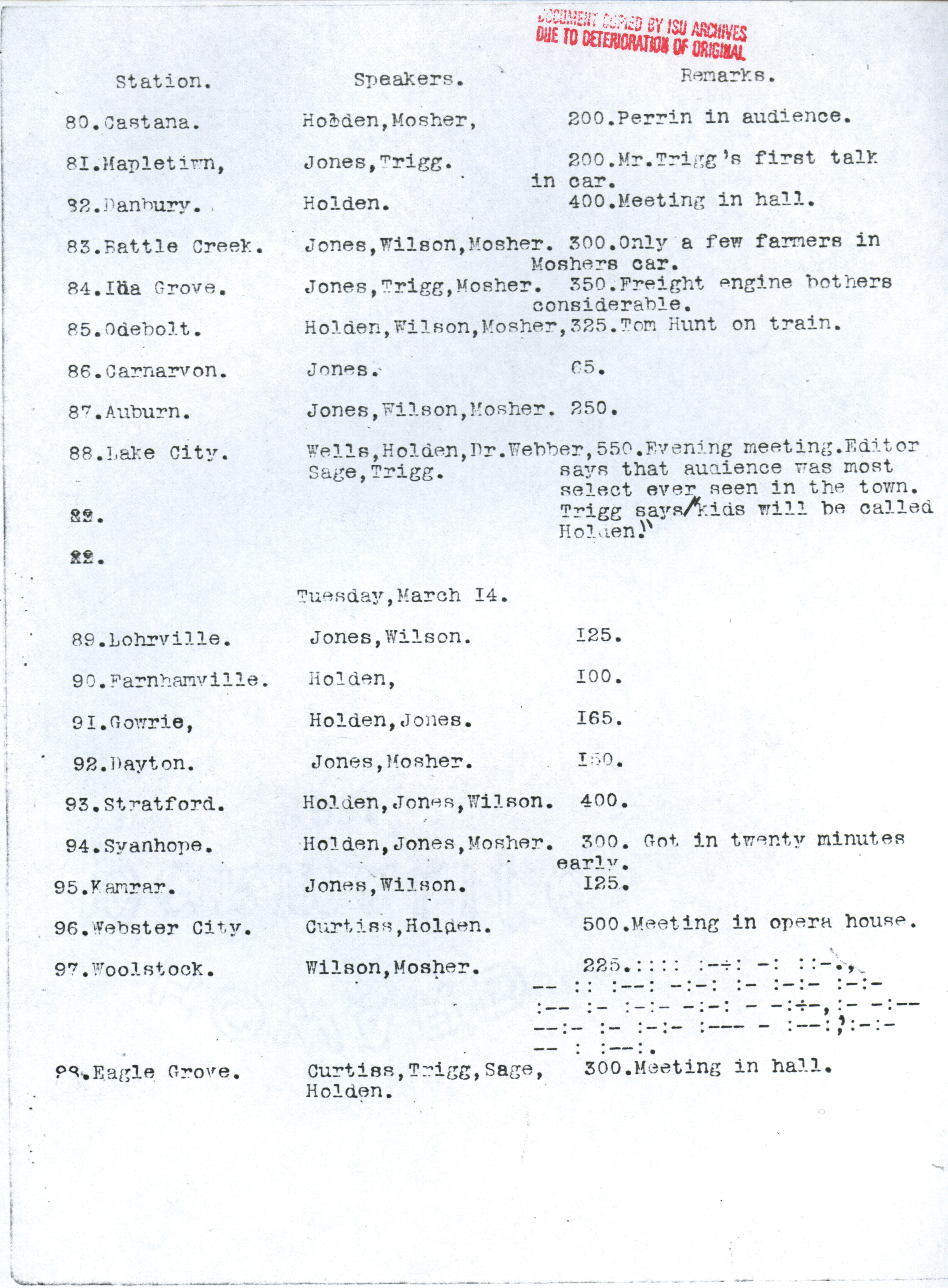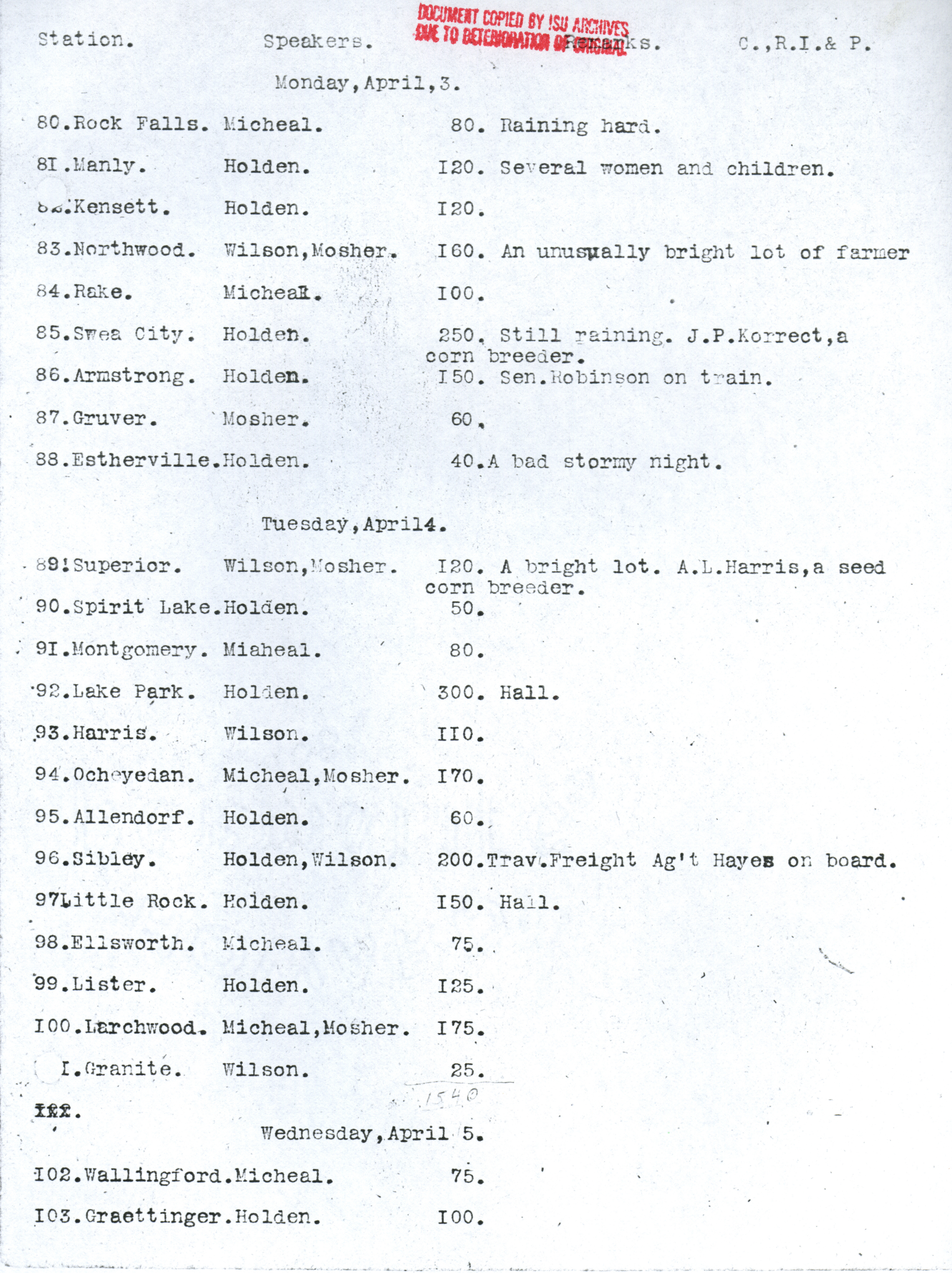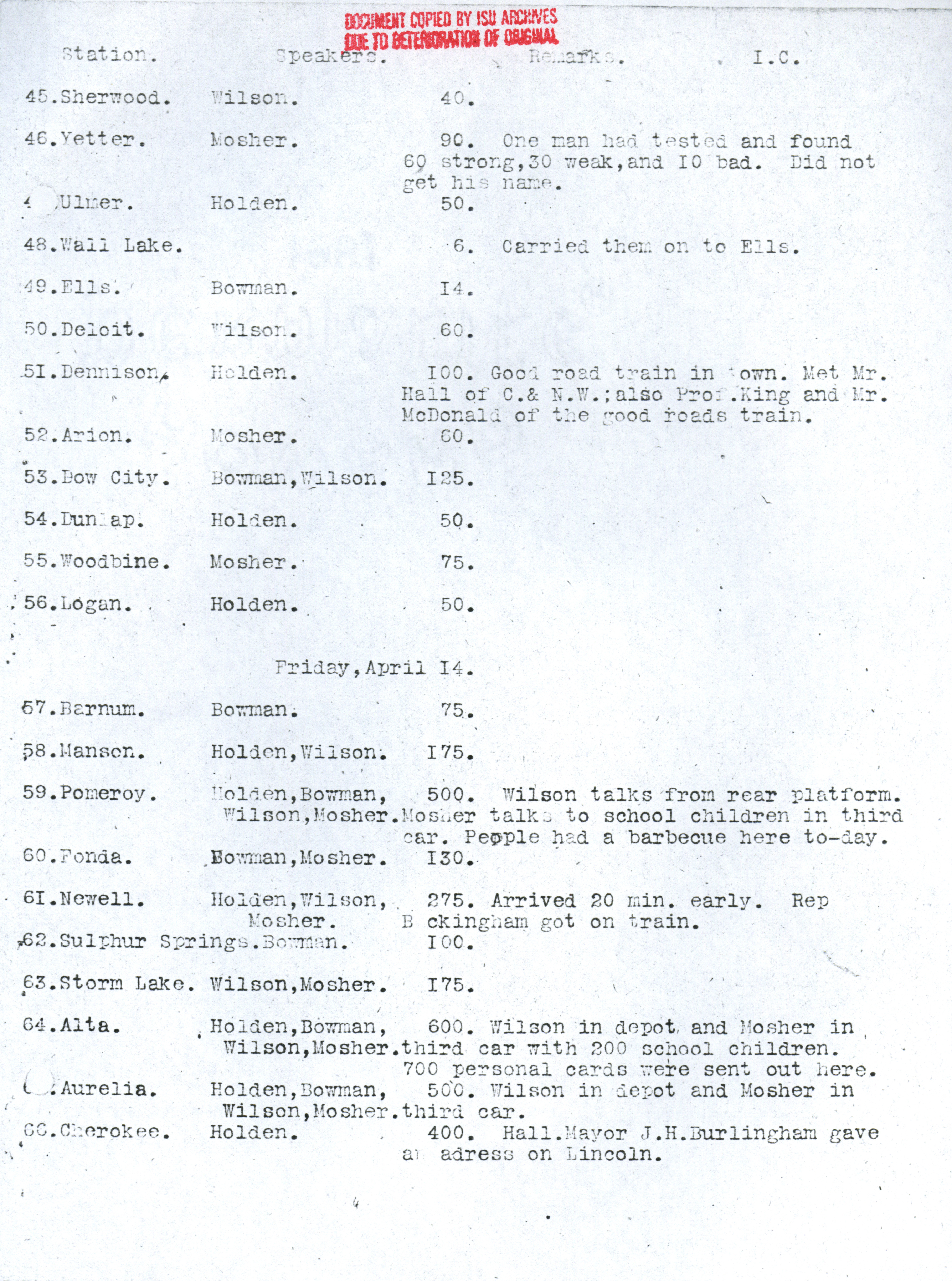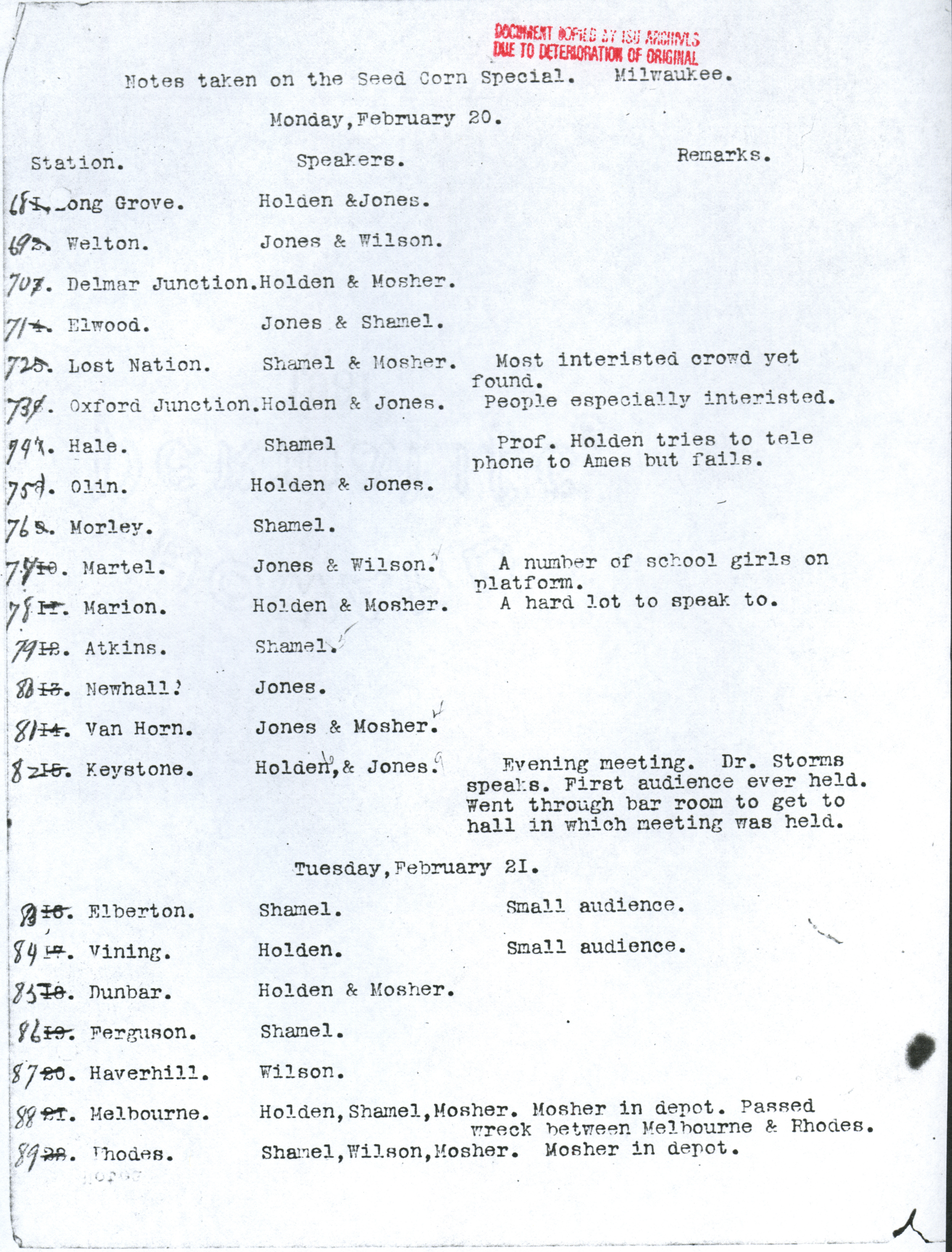 - "Diary of the seed corn train", Iowa State University Extension and Outreach Collection, Iowa State University Library Digital Collections
