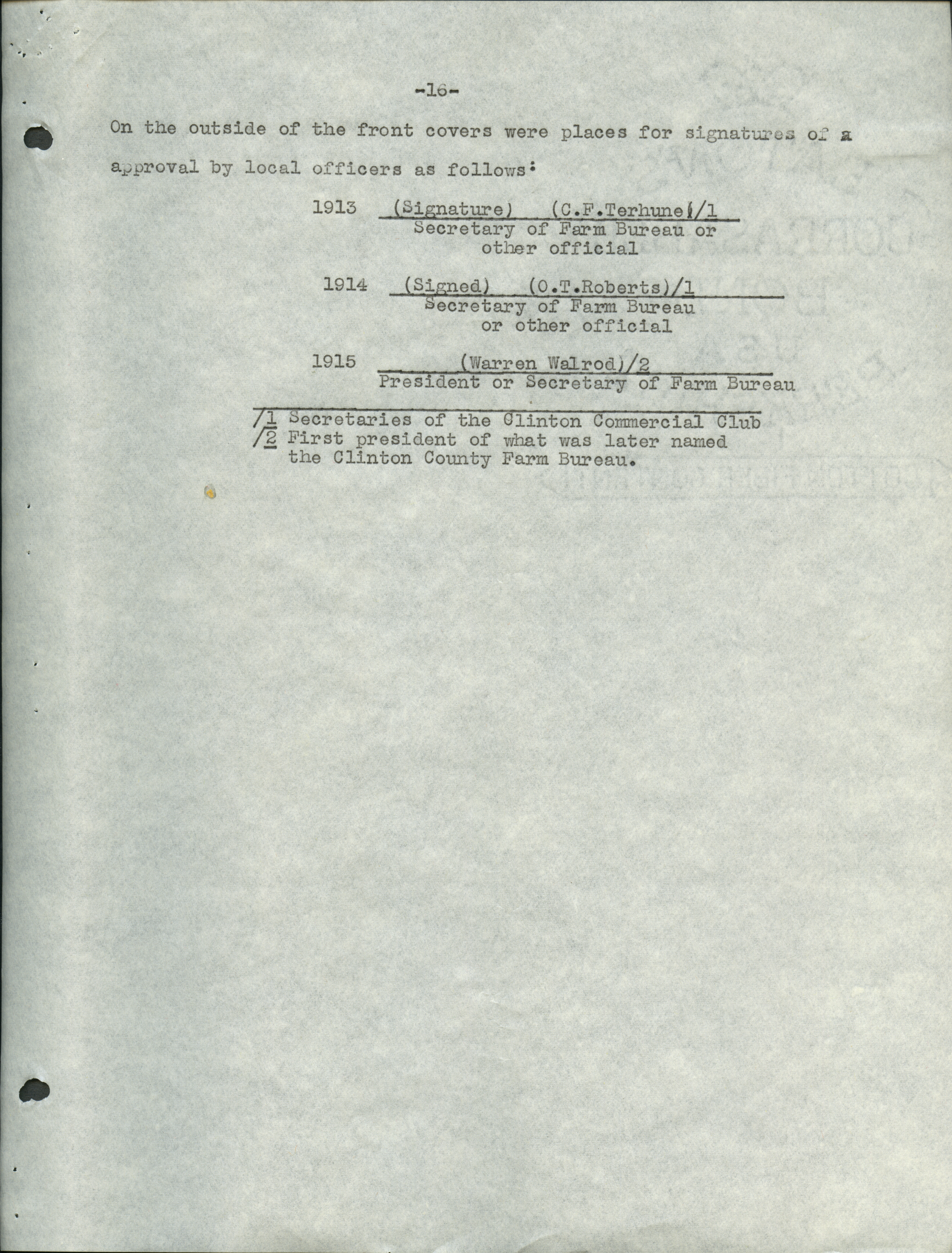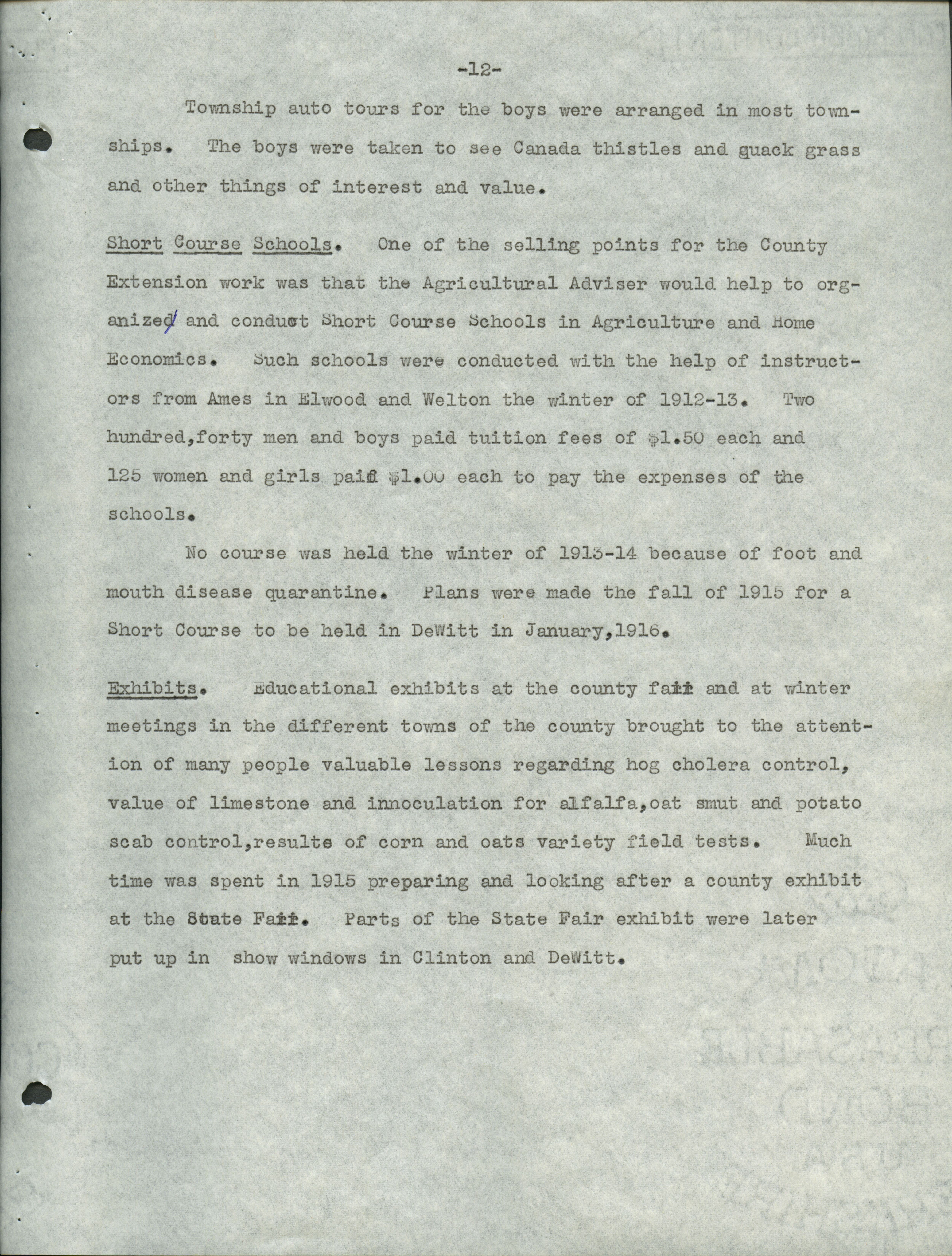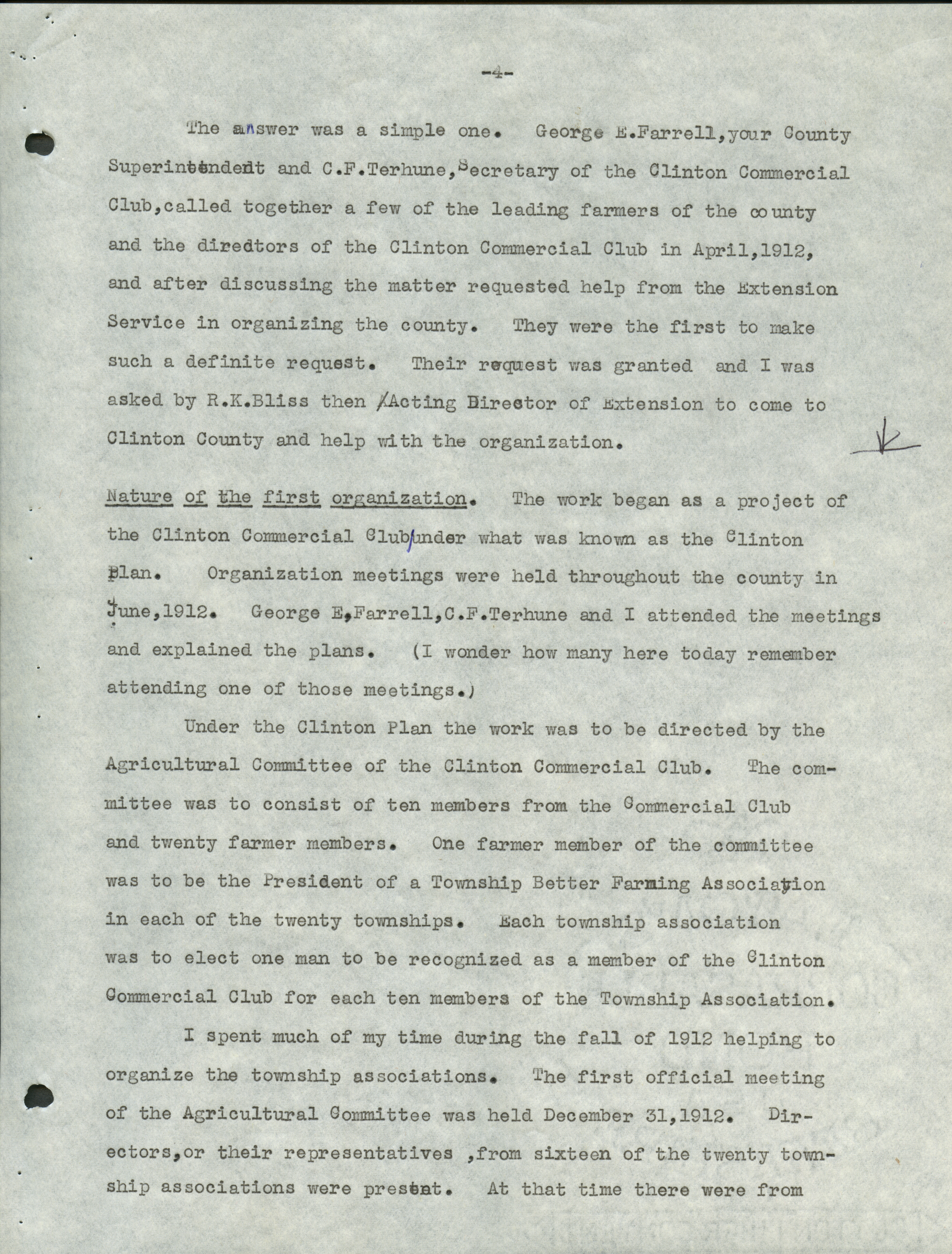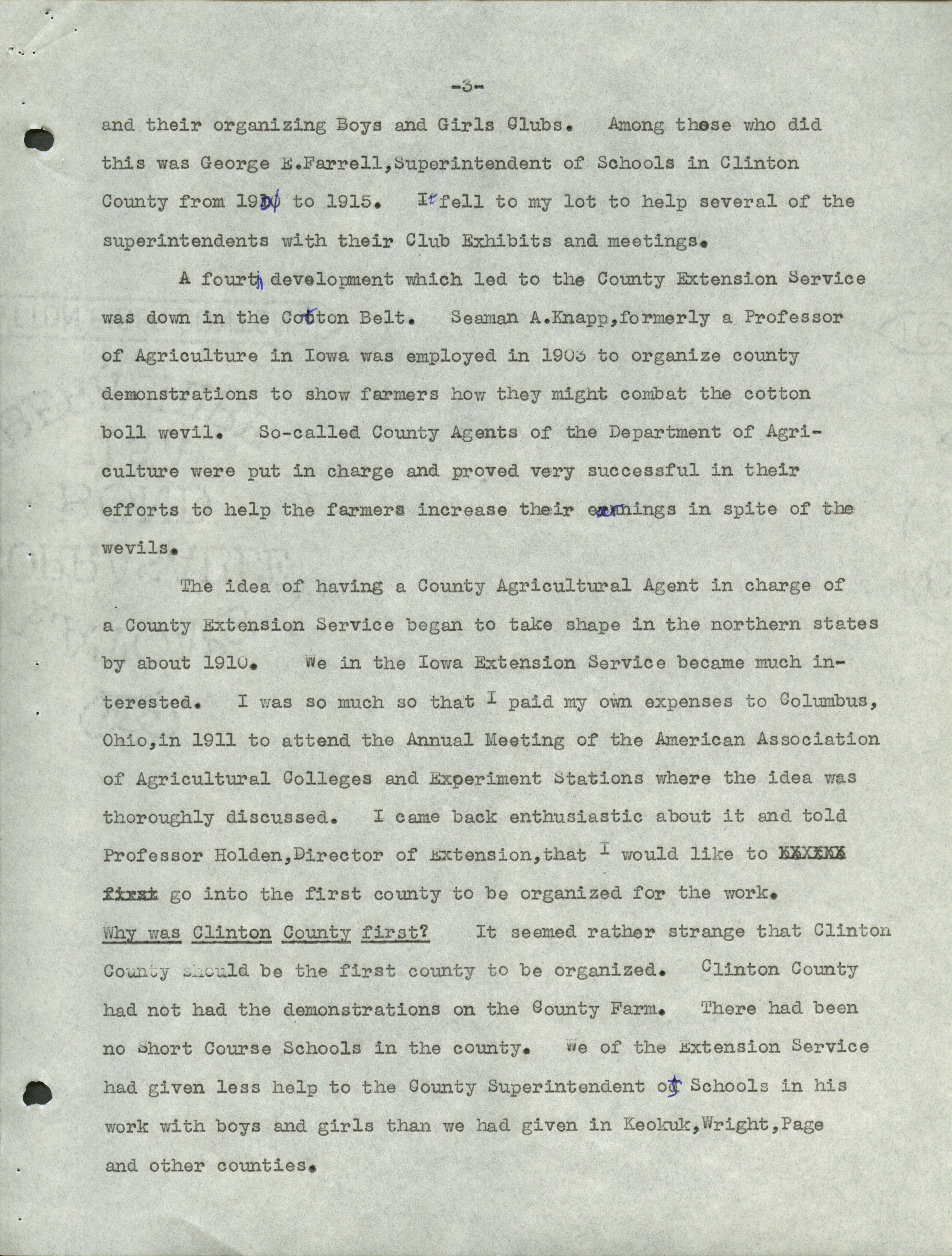 - "The first extension work in Clinton County, Iowa", Iowa State University Extension and Outreach Collection, Iowa State University Library Digital Collections