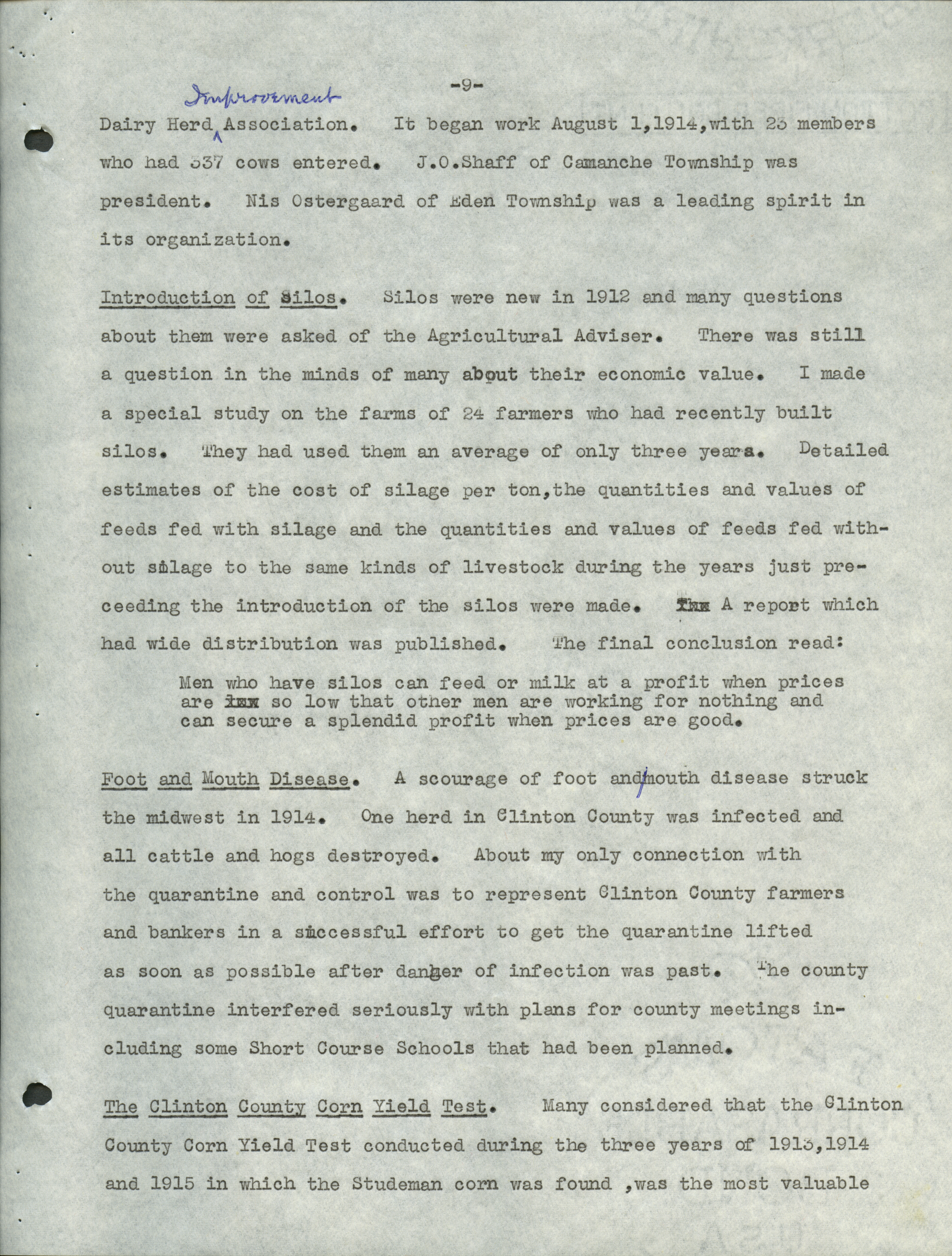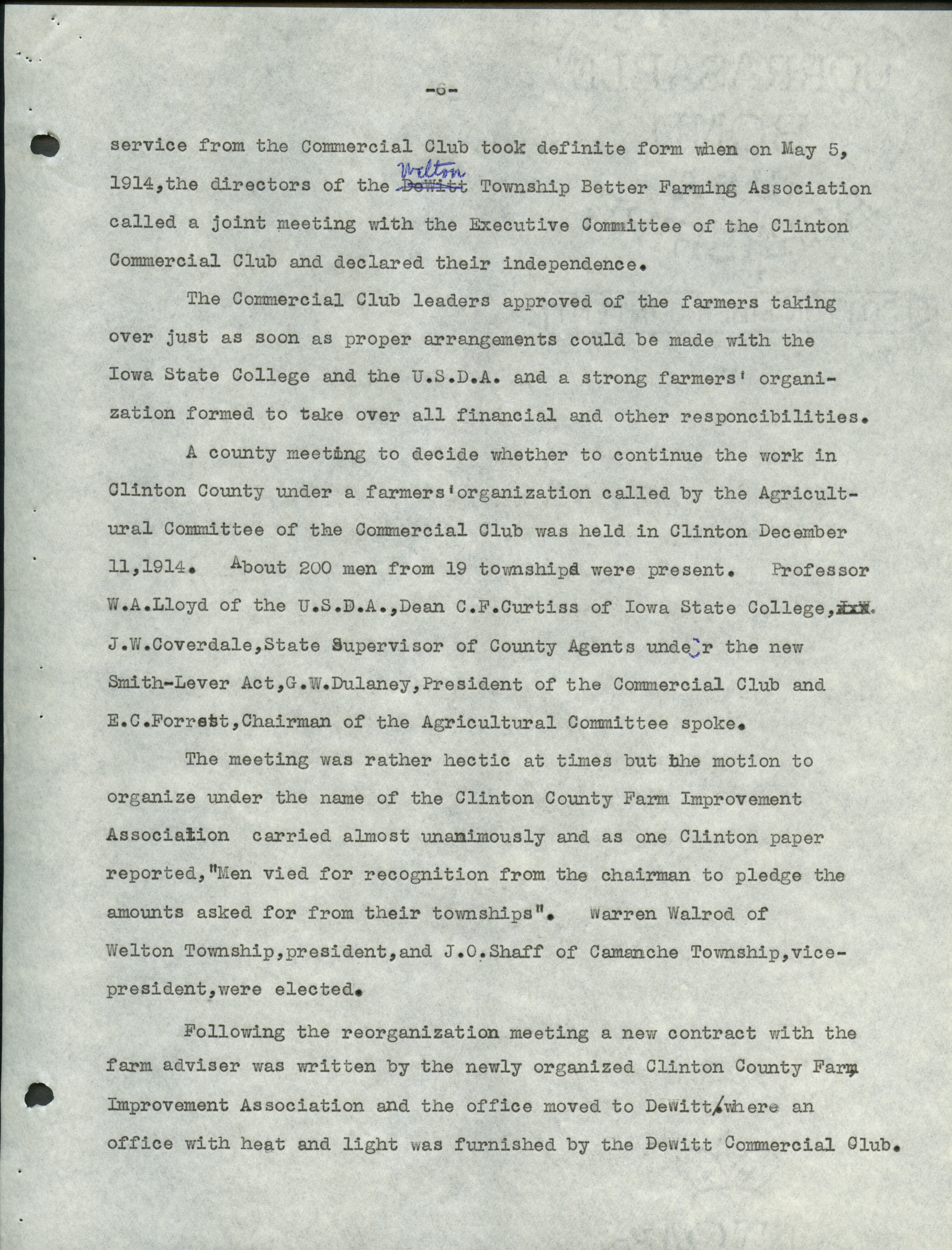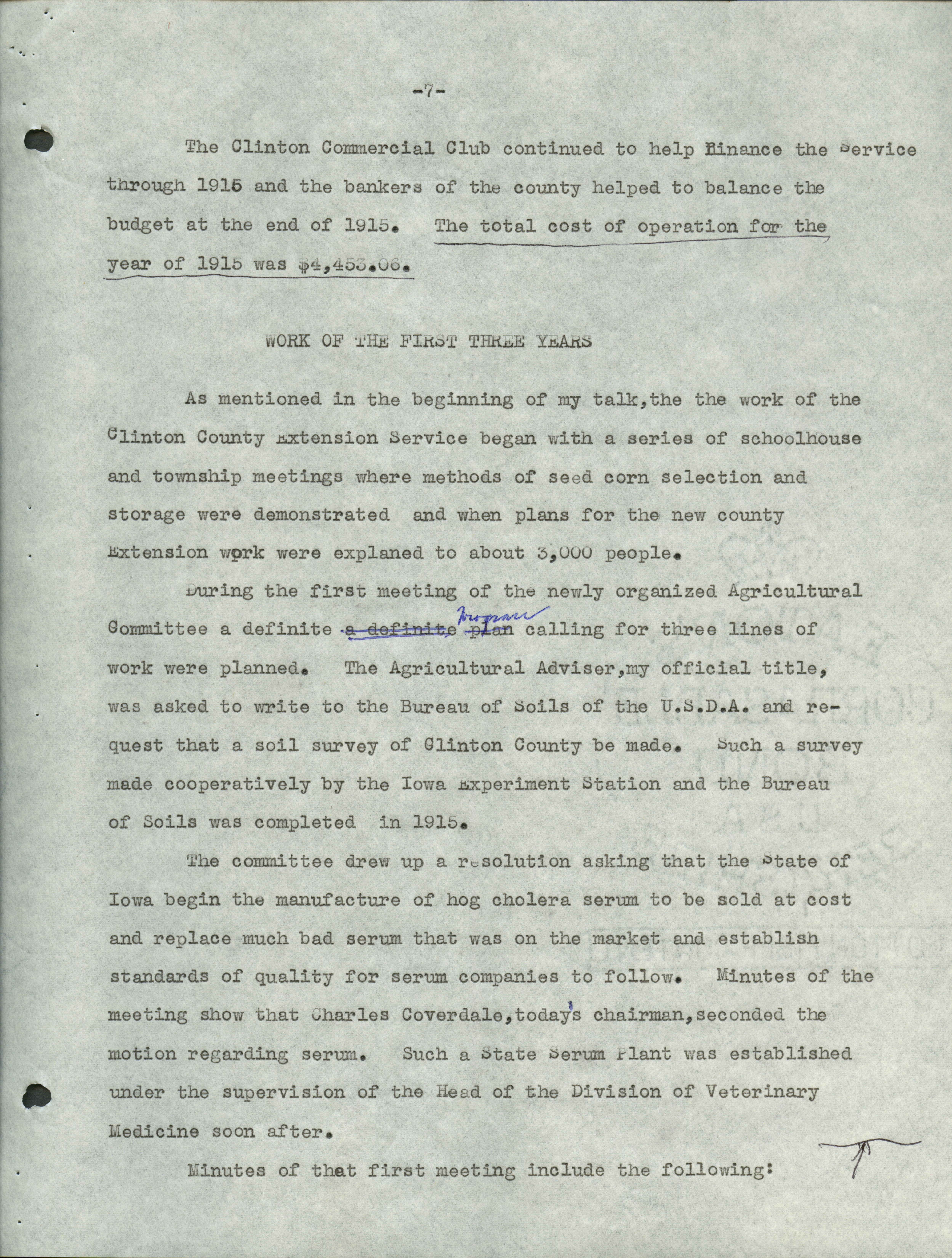 - "The first extension work in Clinton County, Iowa", Iowa State University Extension and Outreach Collection, Iowa State University Library Digital Collections
