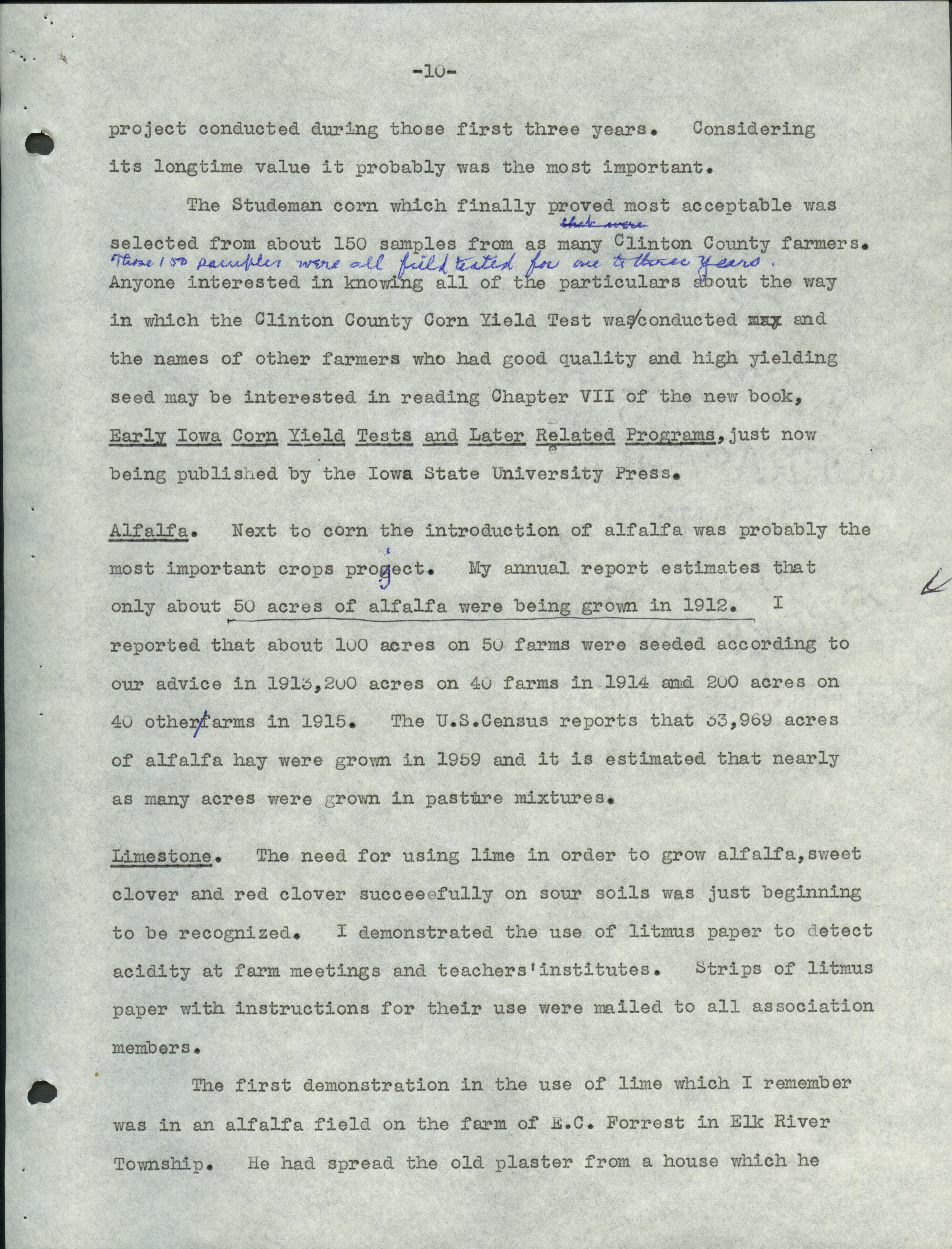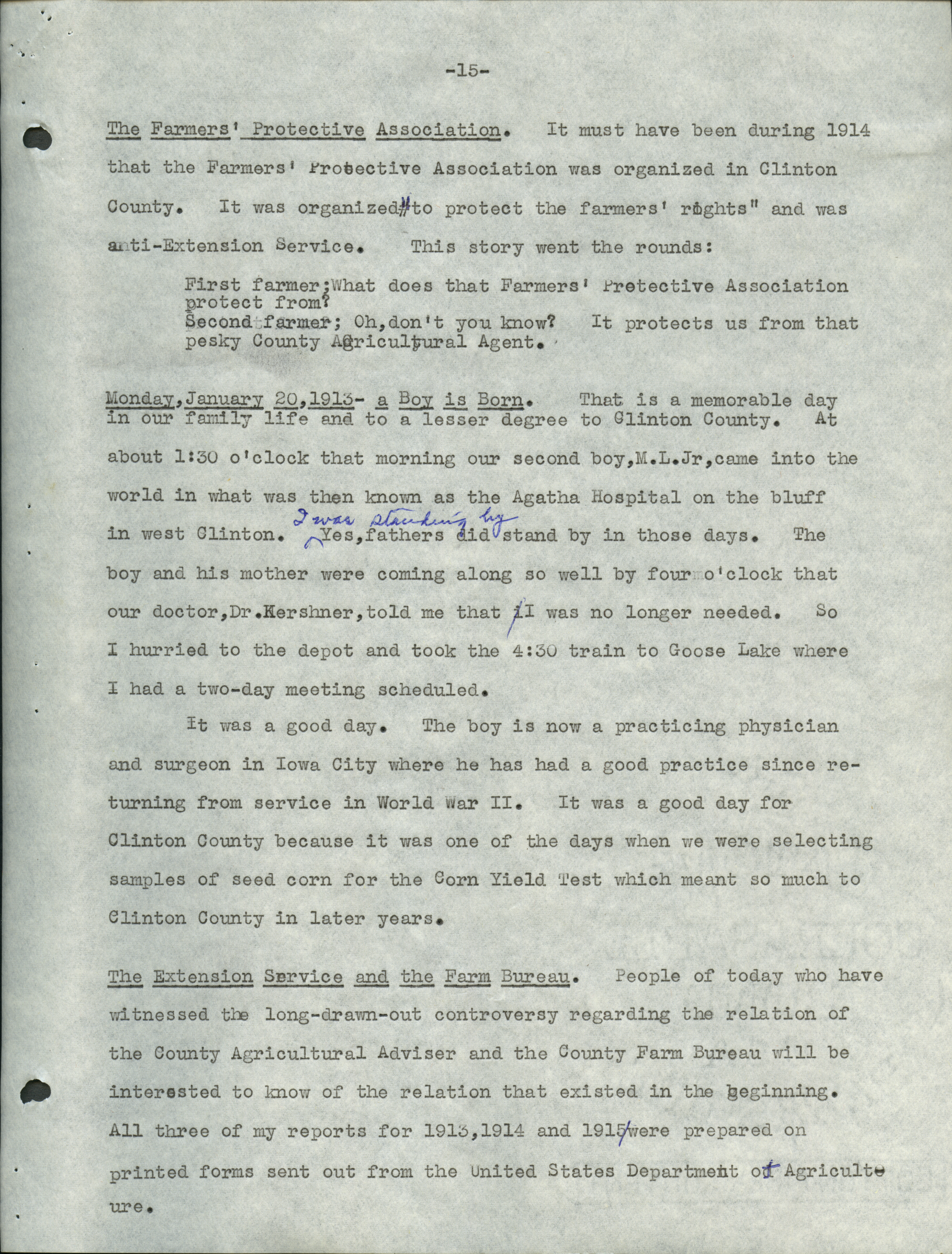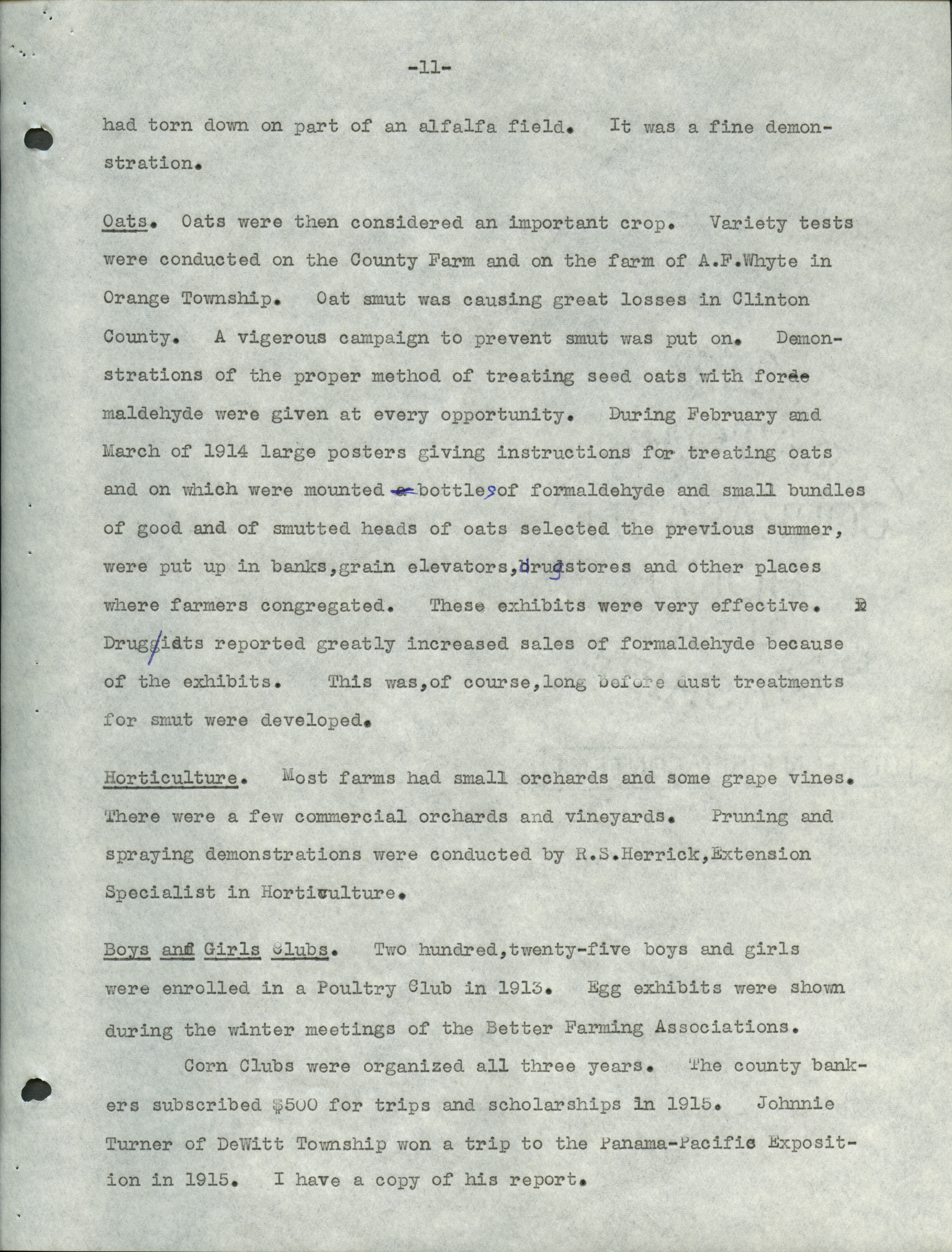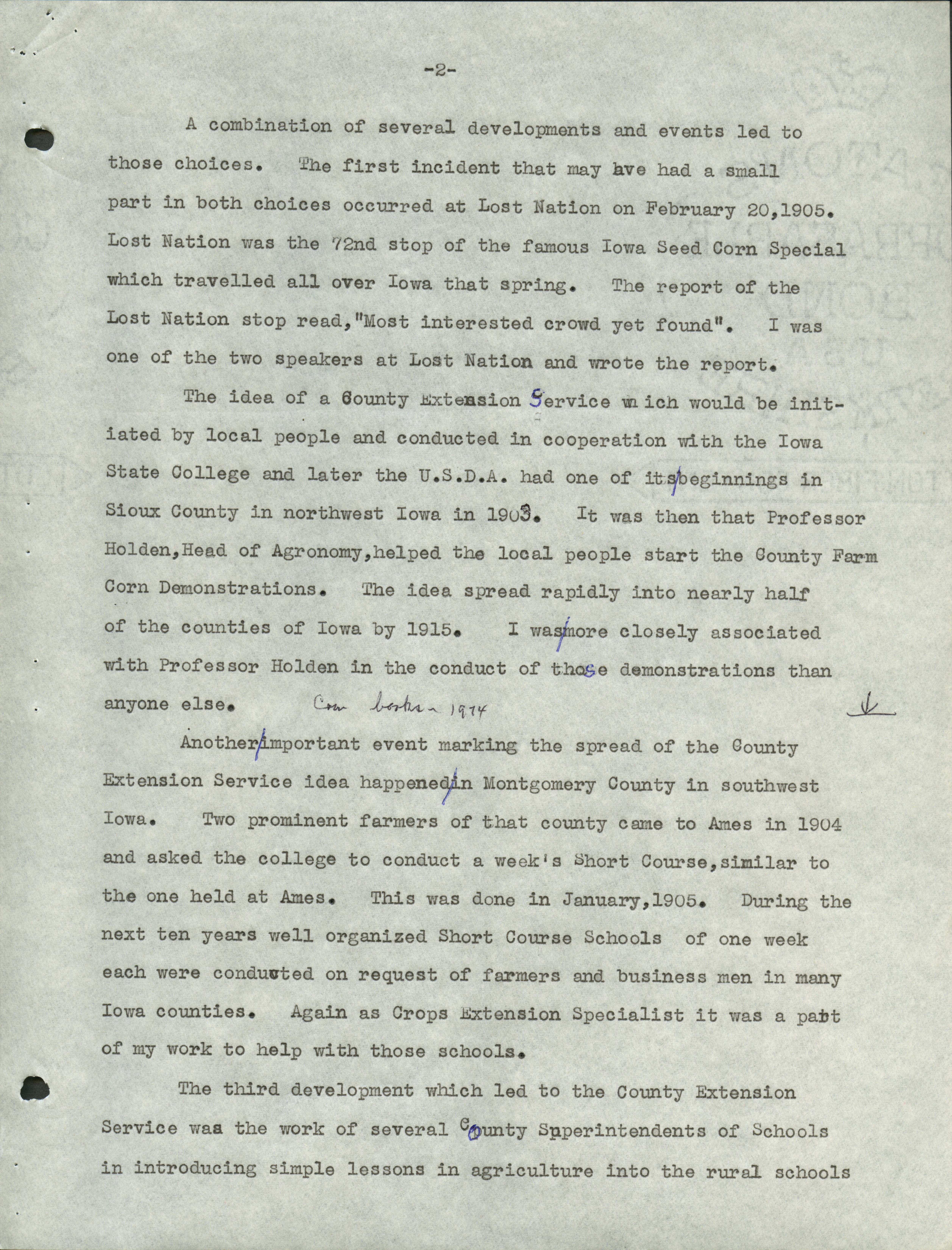 - "The first extension work in Clinton County, Iowa", Iowa State University Extension and Outreach Collection, Iowa State University Library Digital Collections