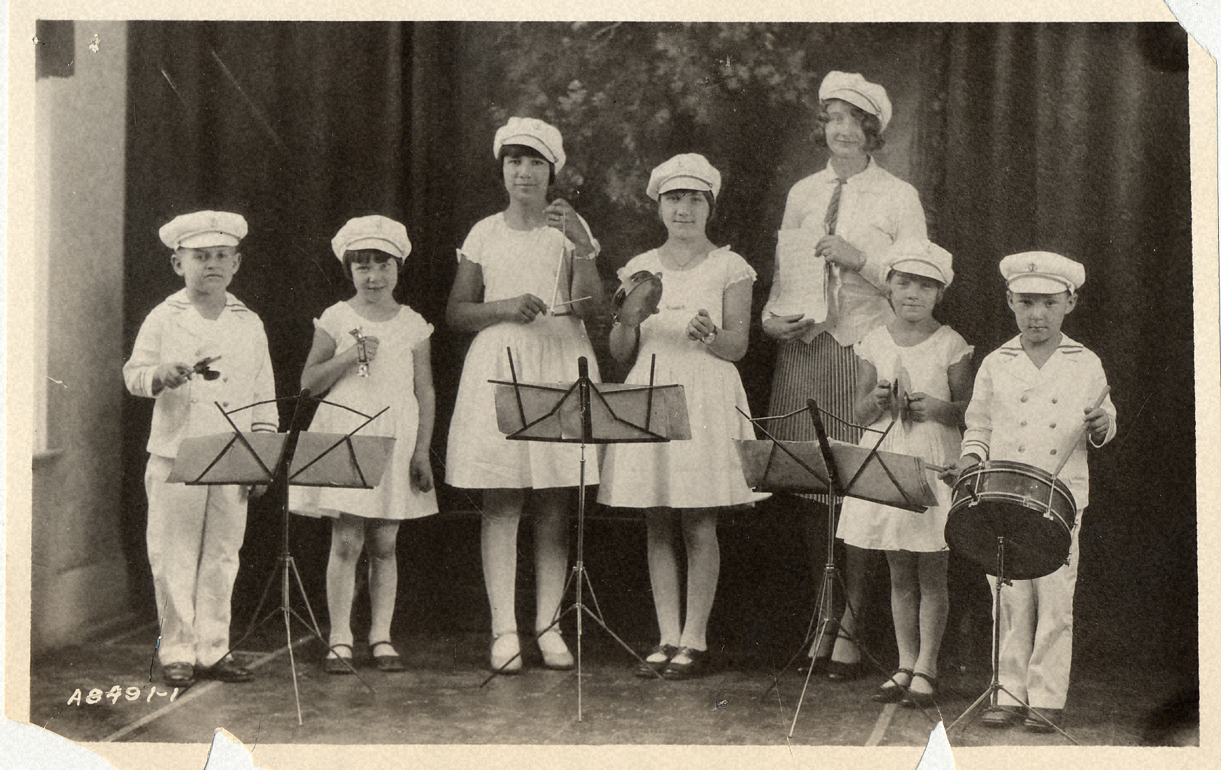 - Photograph of an orchestra made up of a group of children. Taken in 1929.