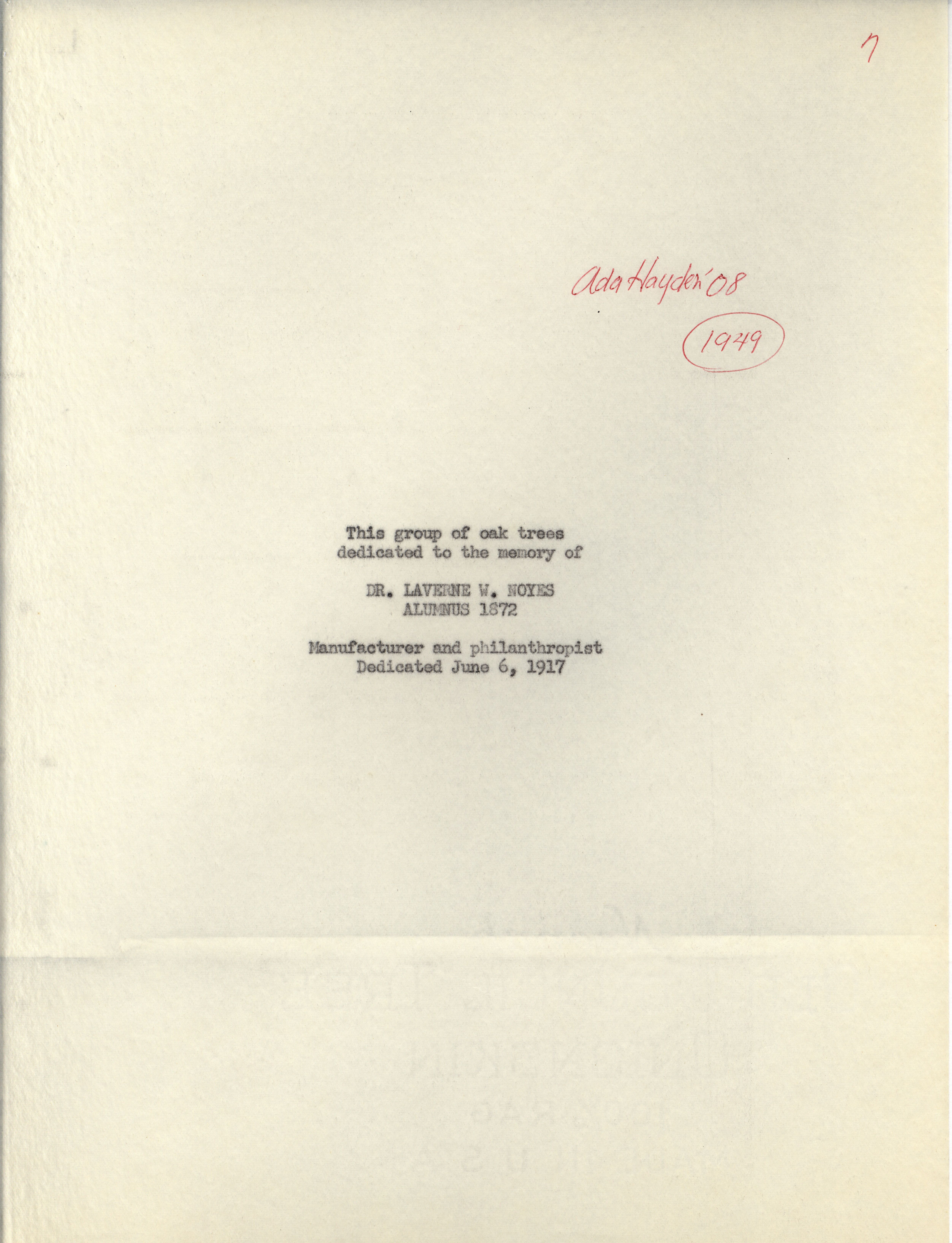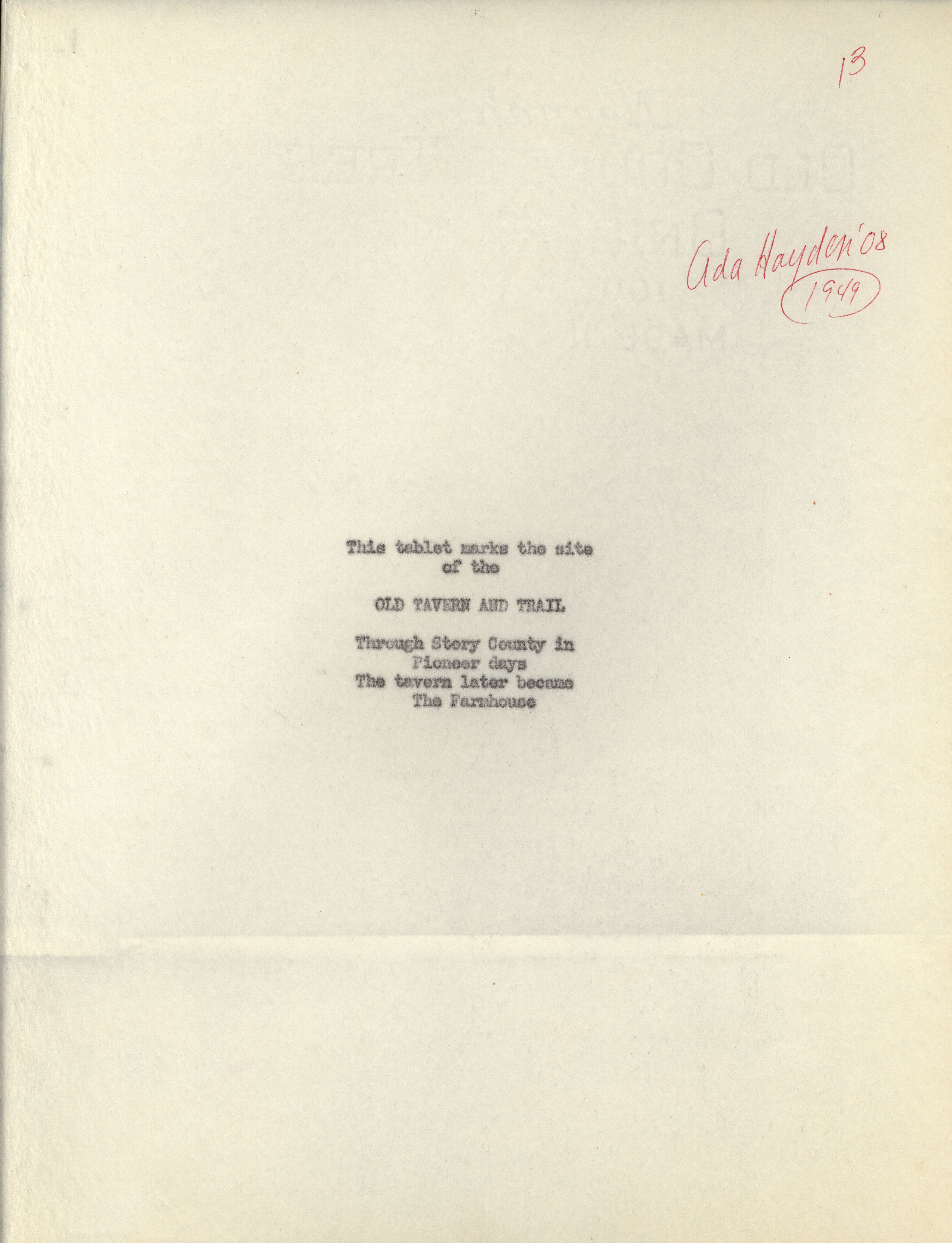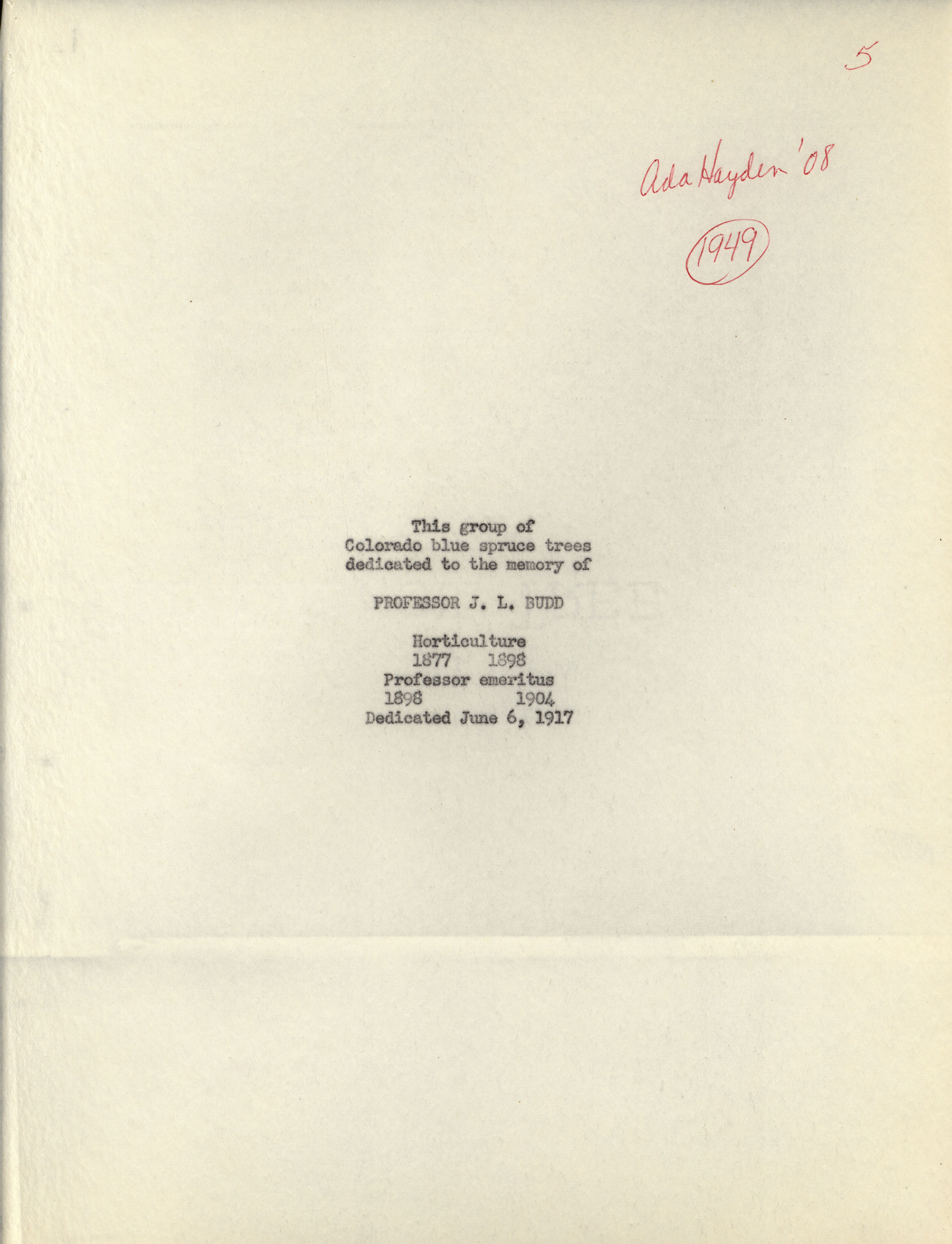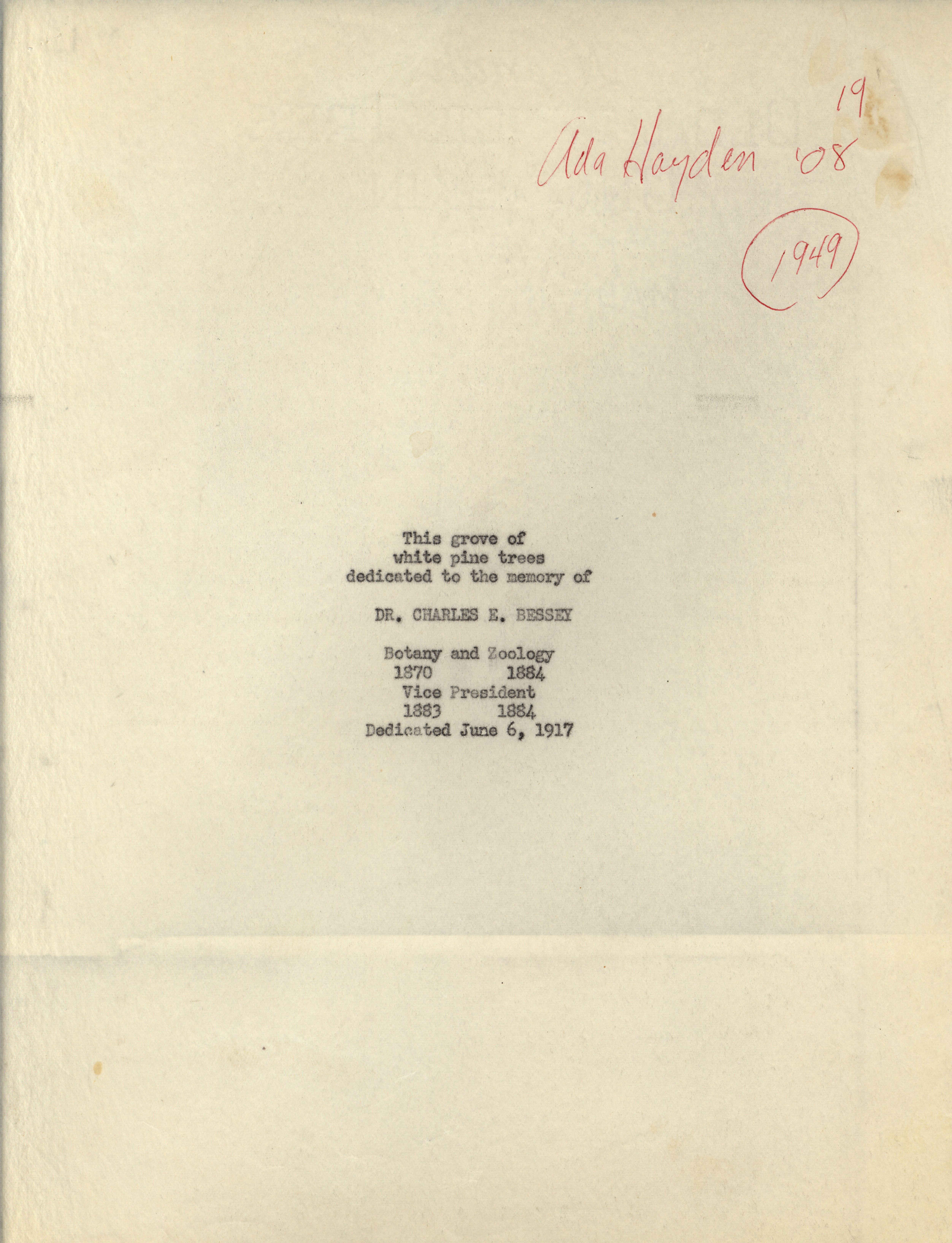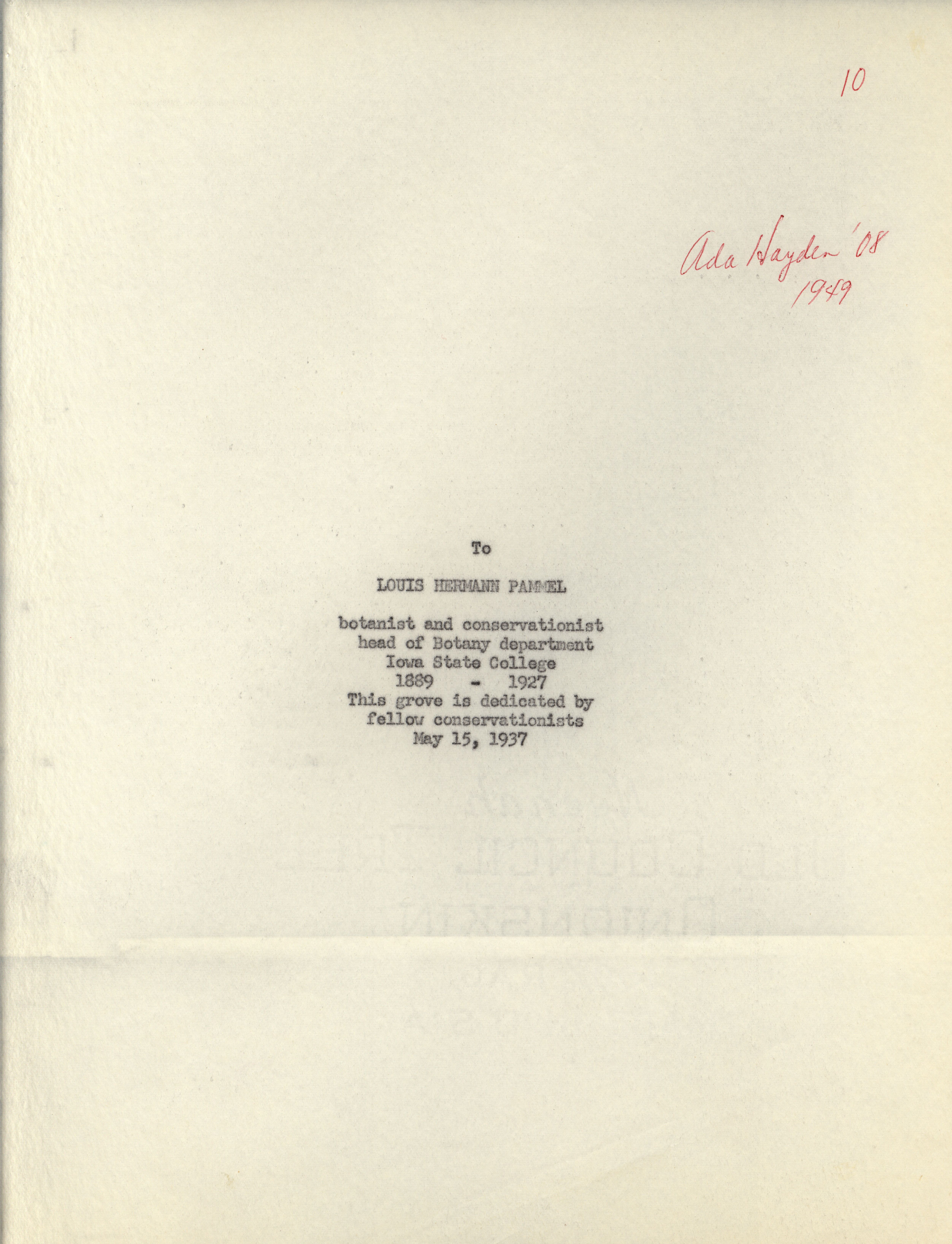 - Report written by Ada Hayden entitled, "A Report on Some Campus Memorials." Describes the stones and plaques found across Iowa State University's campus commemorating people, sites or objects from 1949.