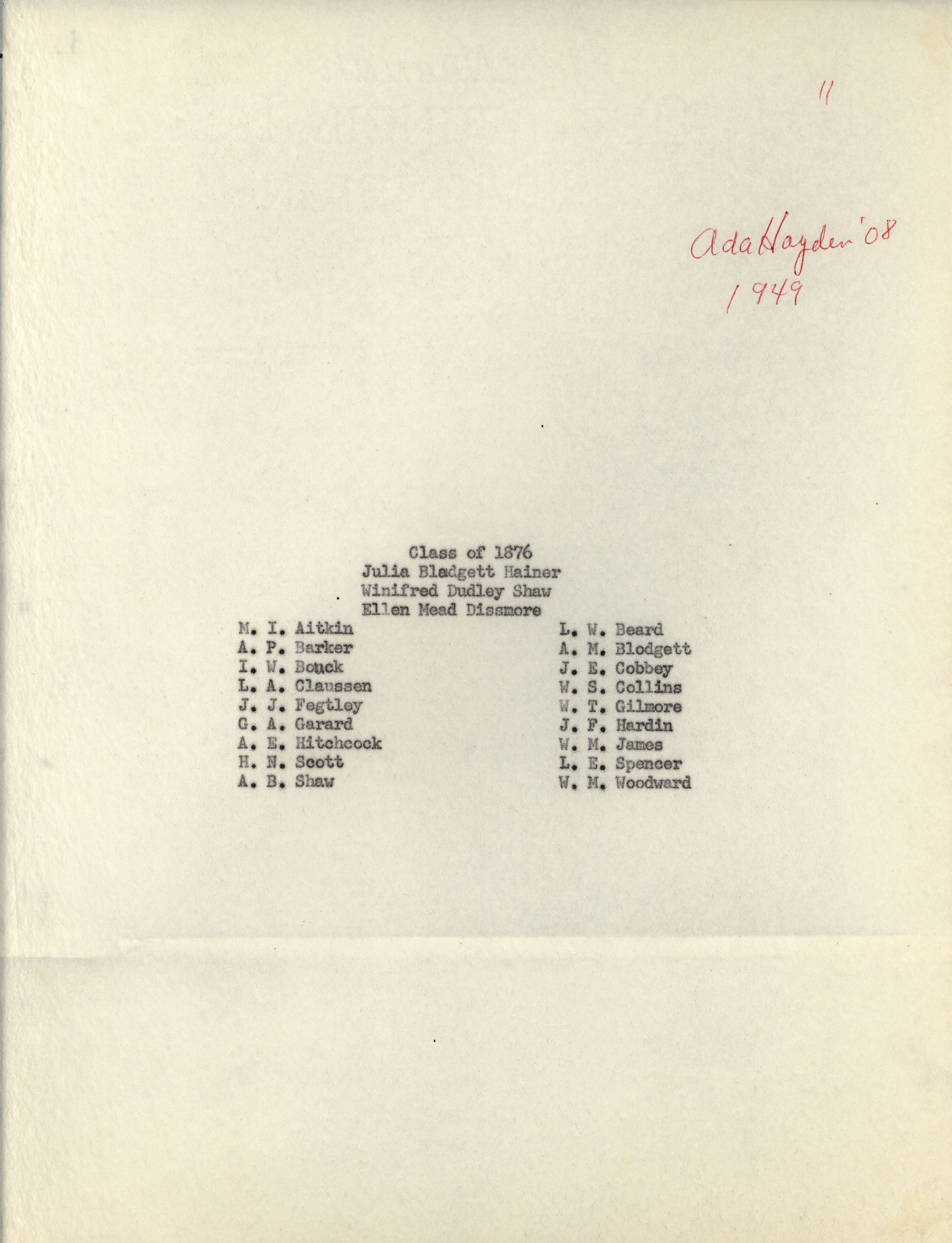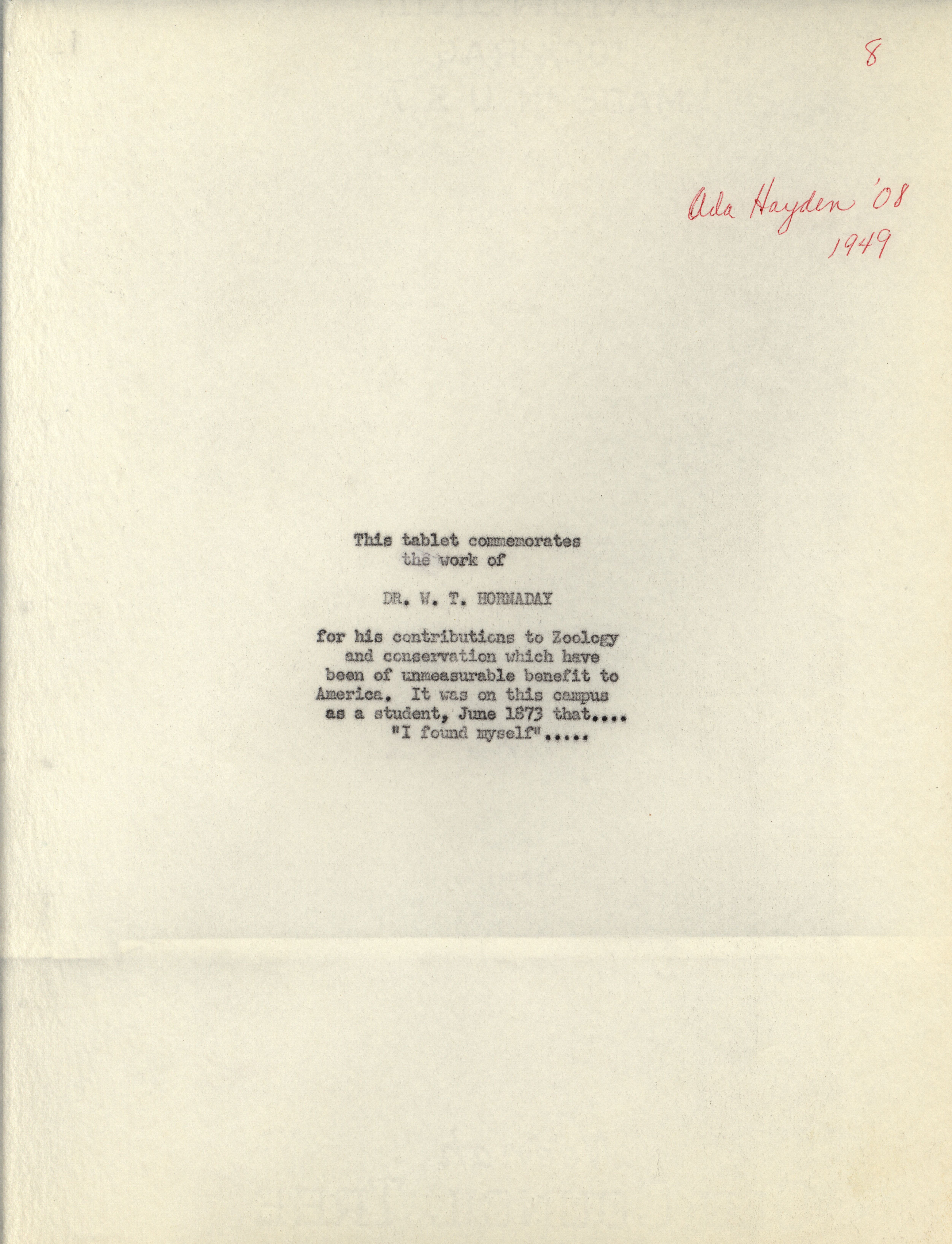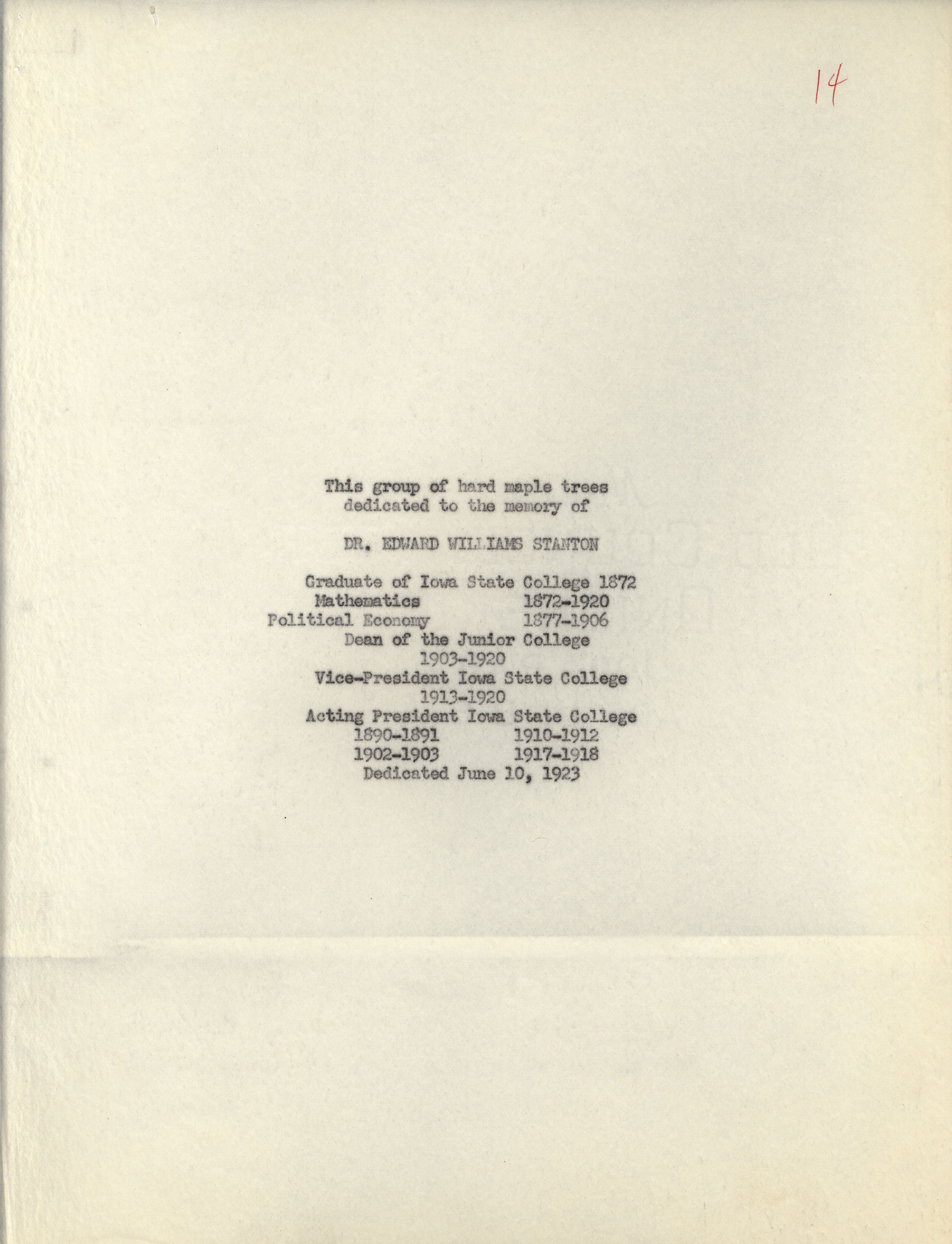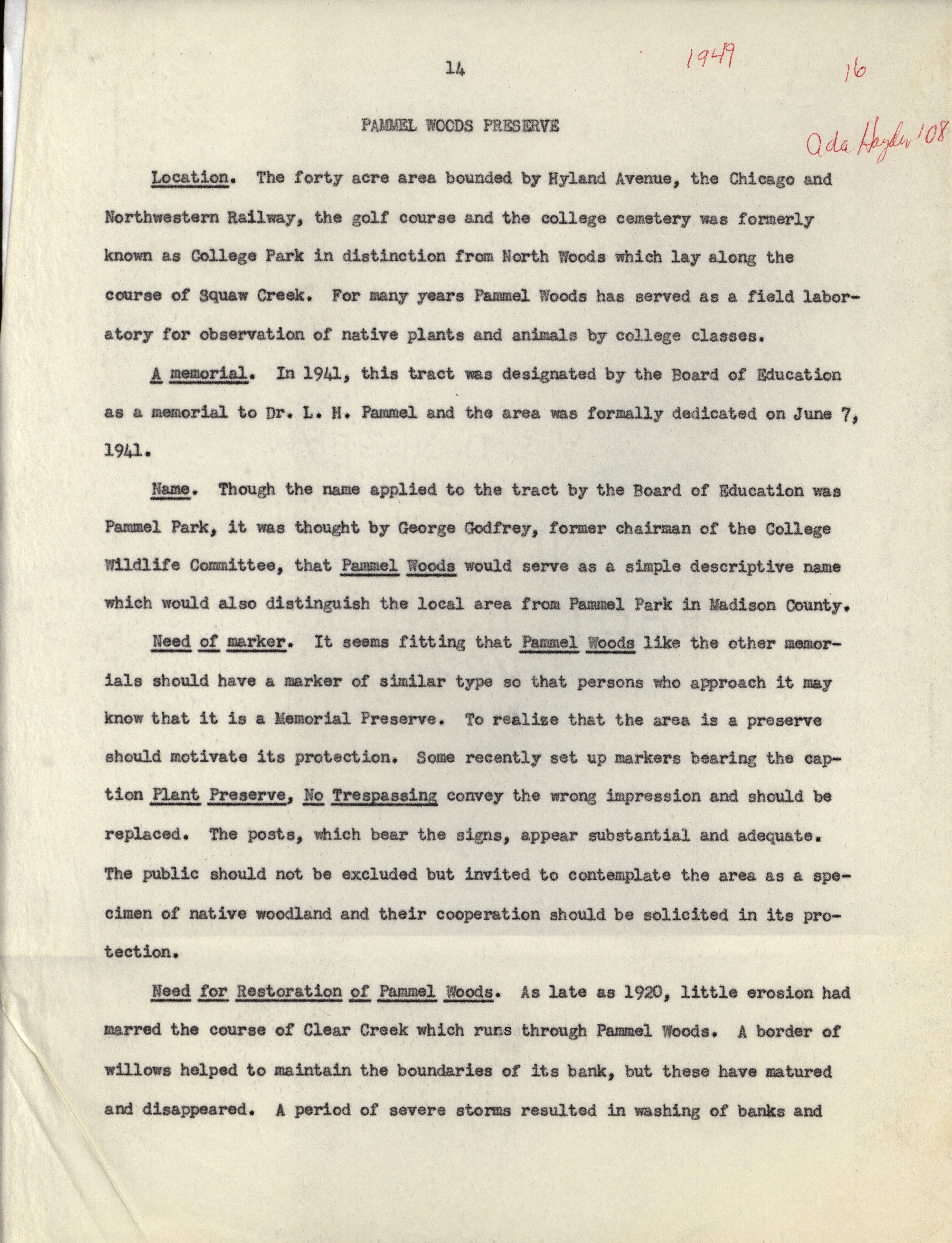 - Report written by Ada Hayden entitled, "A Report on Some Campus Memorials." Describes the stones and plaques found across Iowa State University's campus commemorating people, sites or objects from 1949.