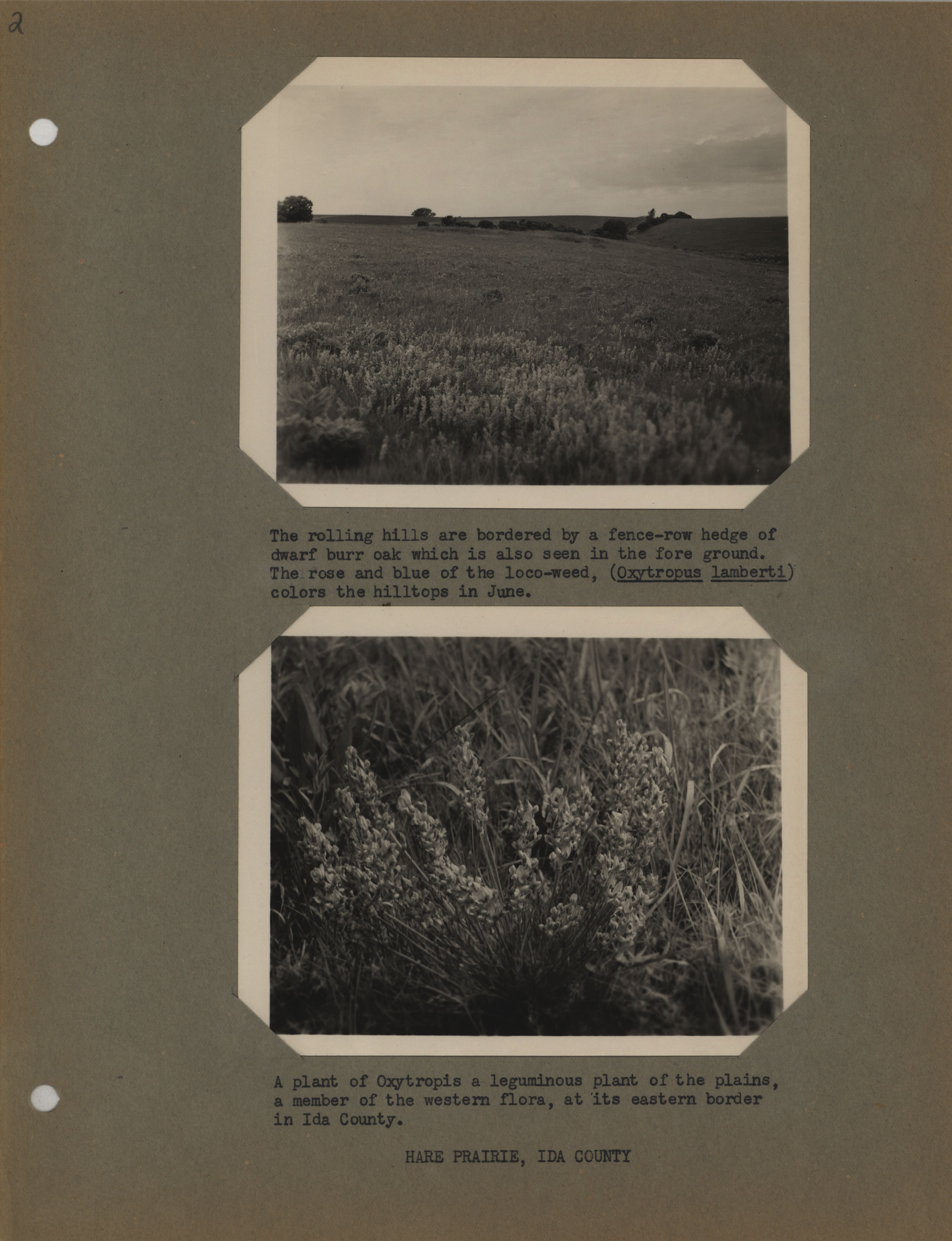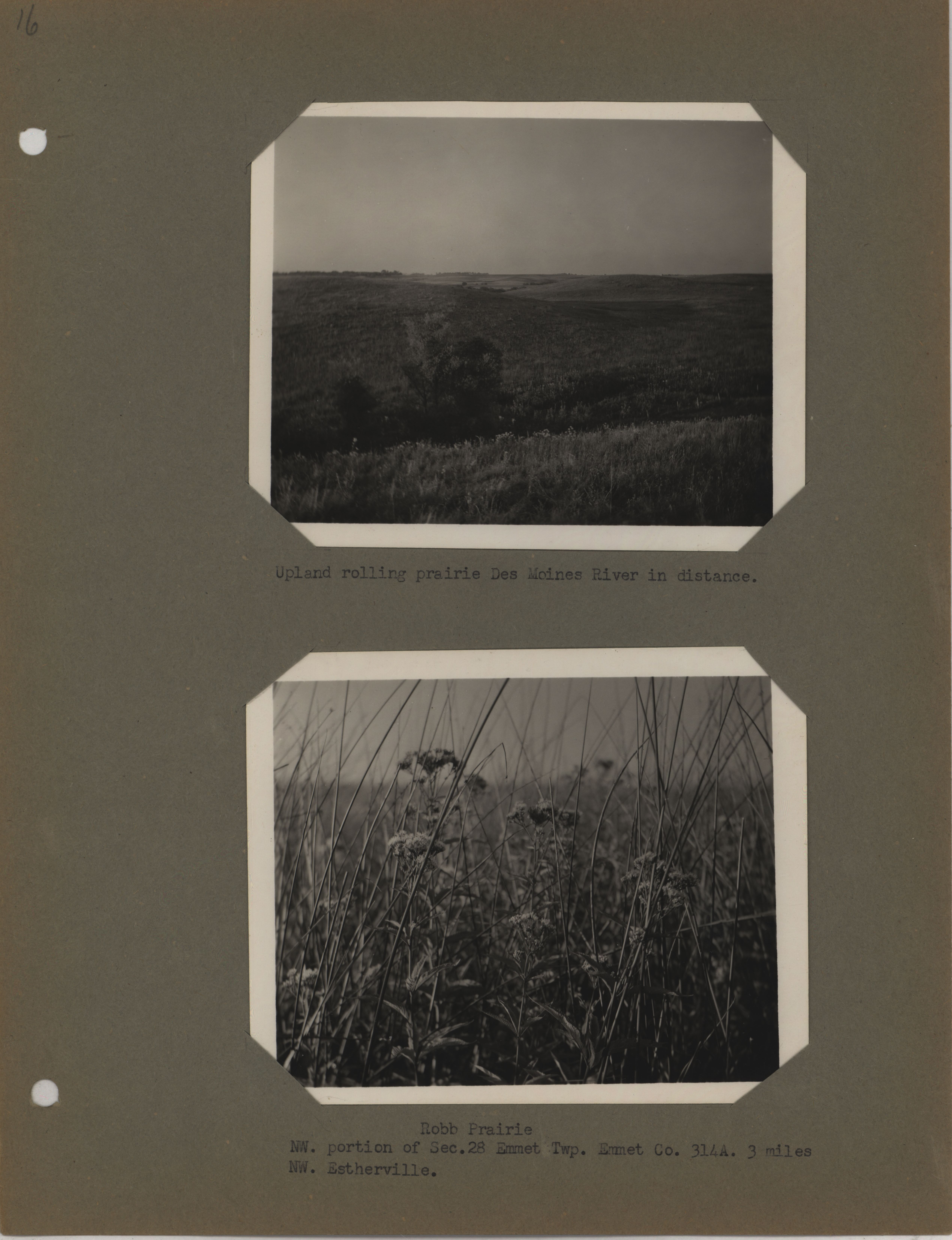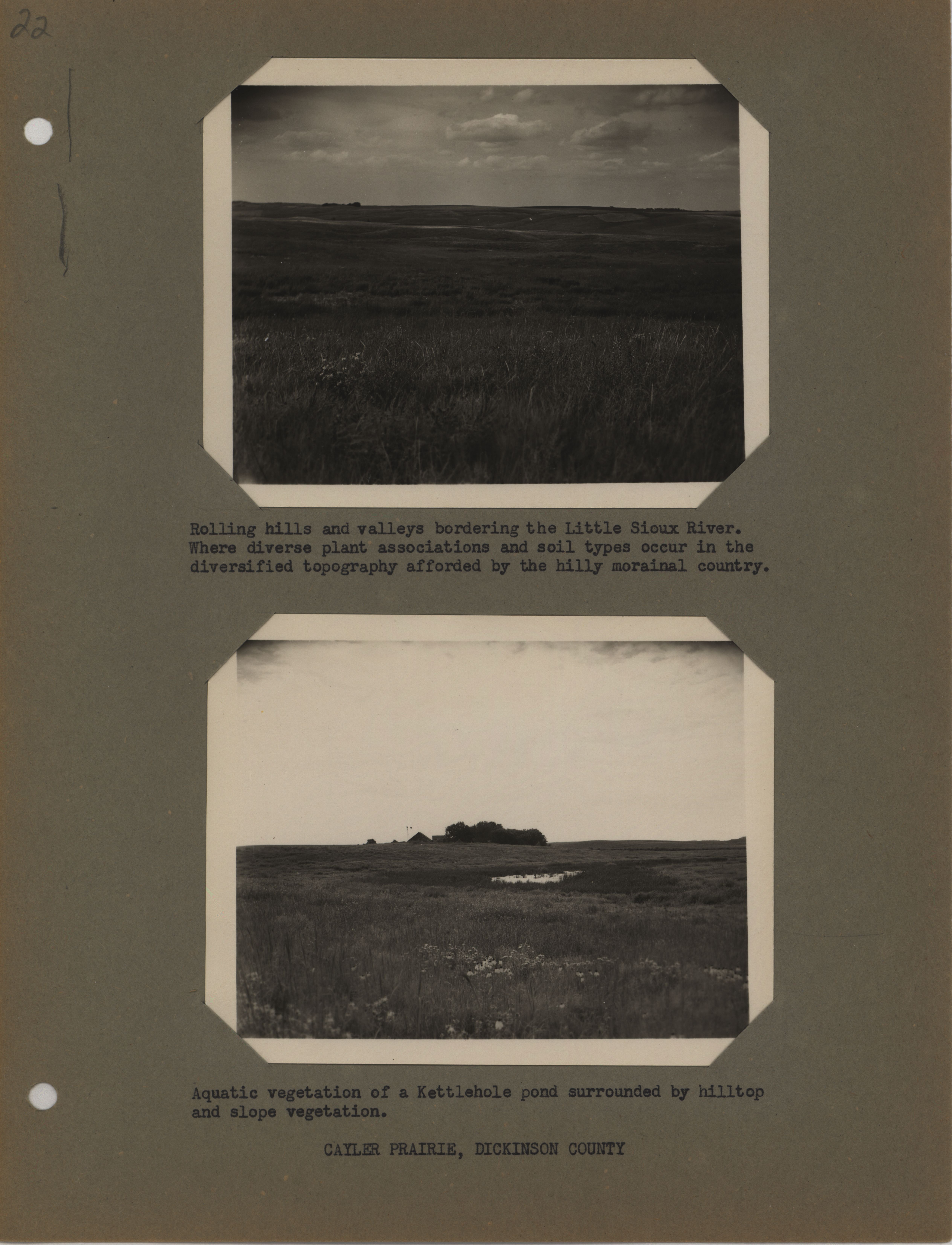 - Mounted photographs with captions of geology and botanical features of prairies found in the State of Iowa.