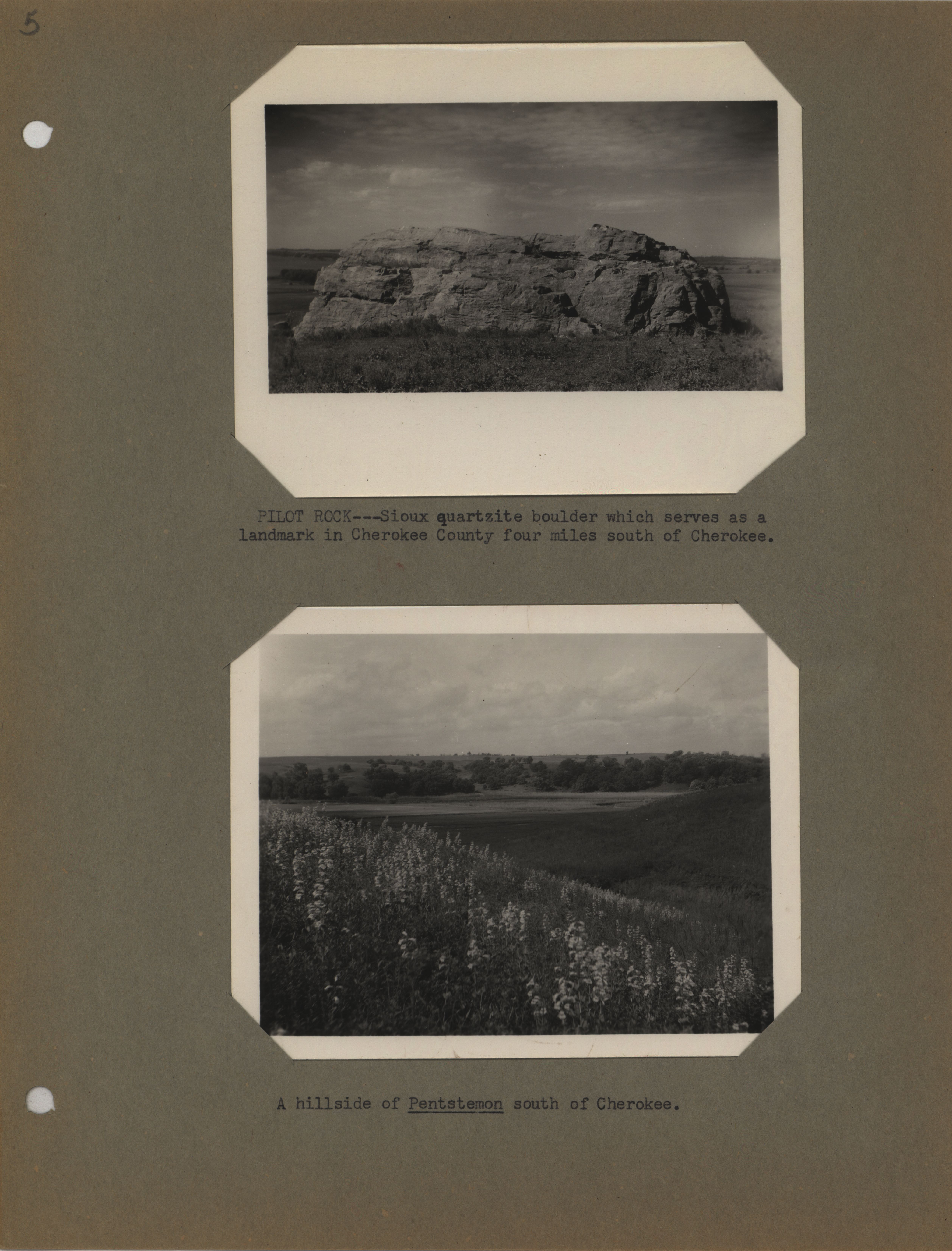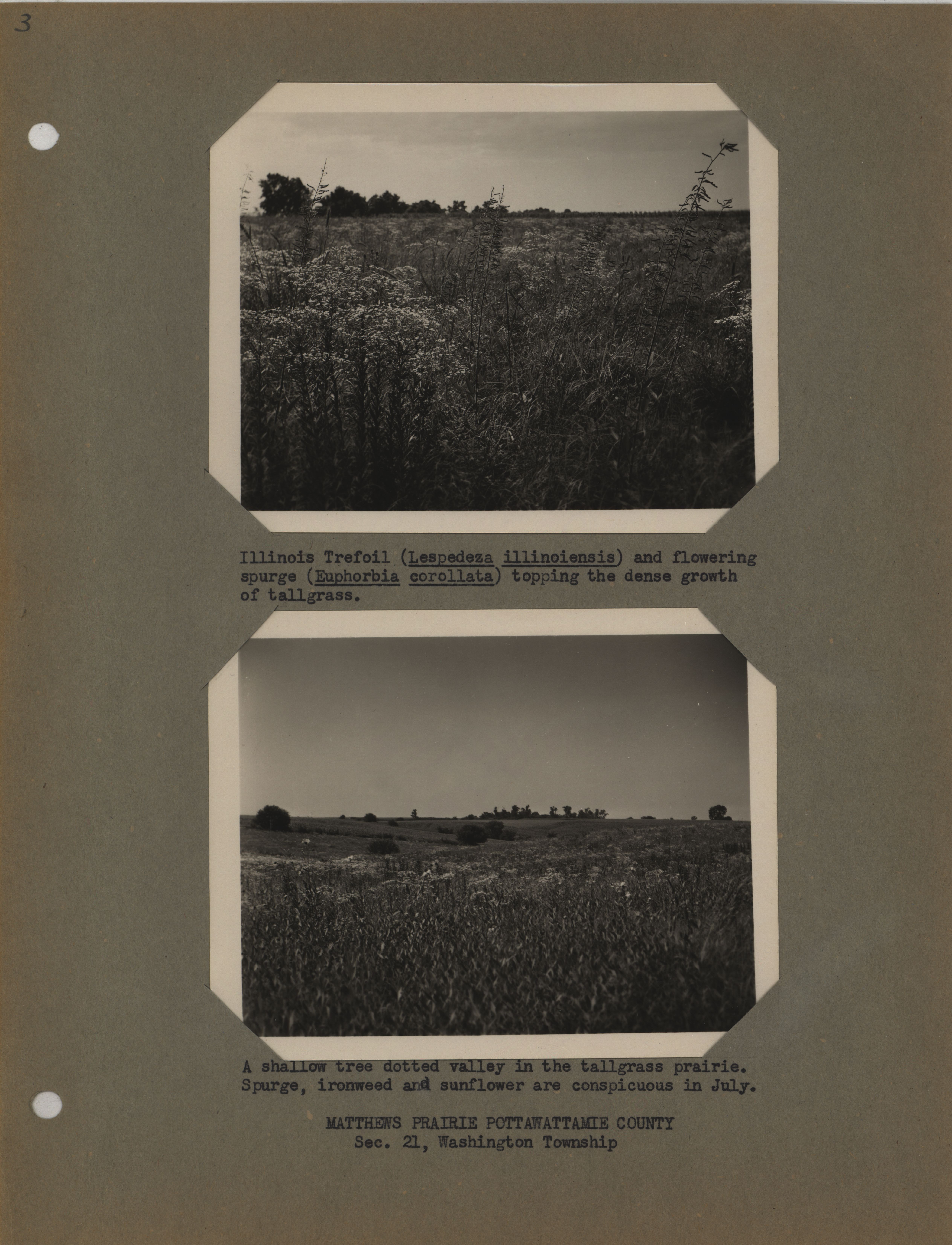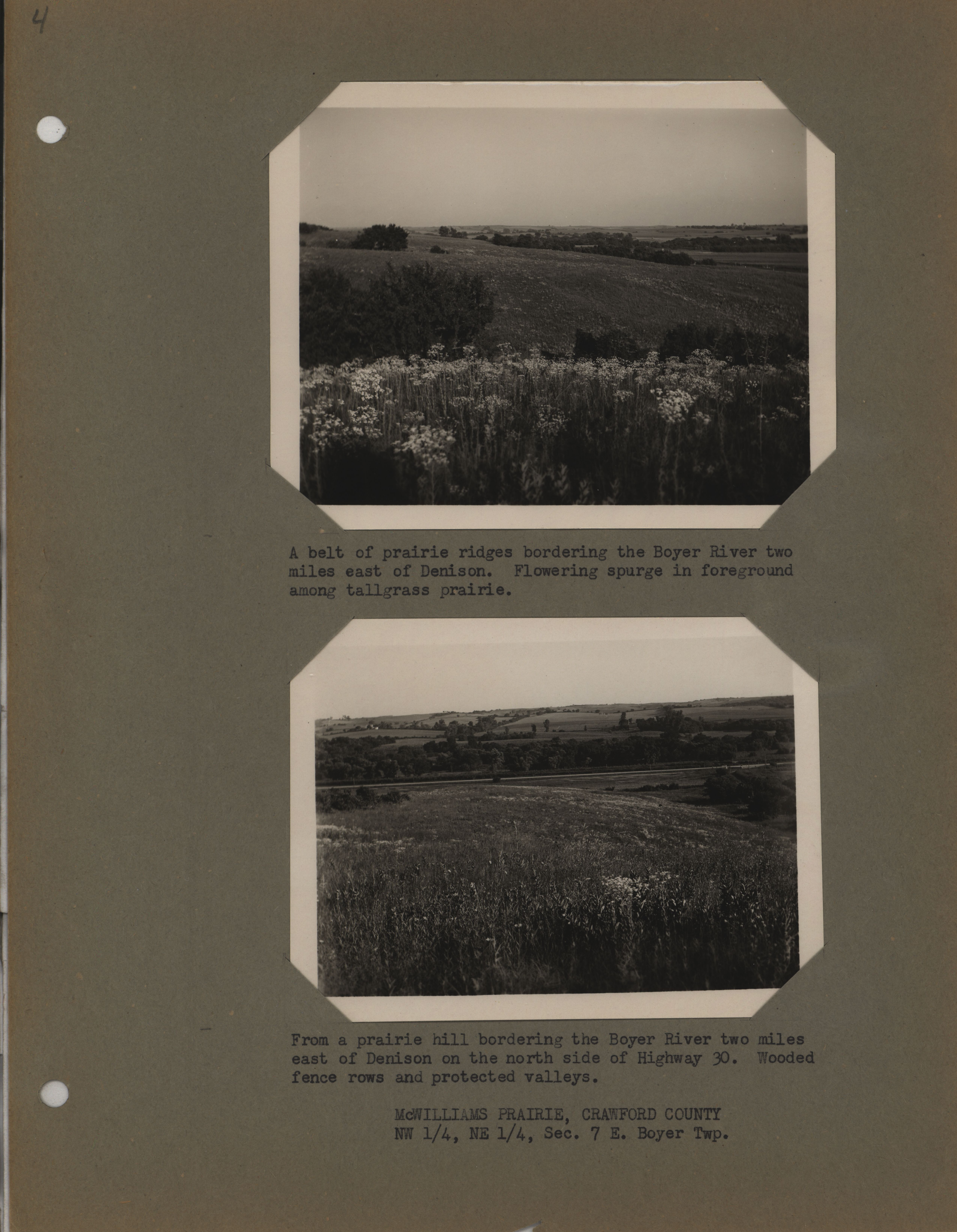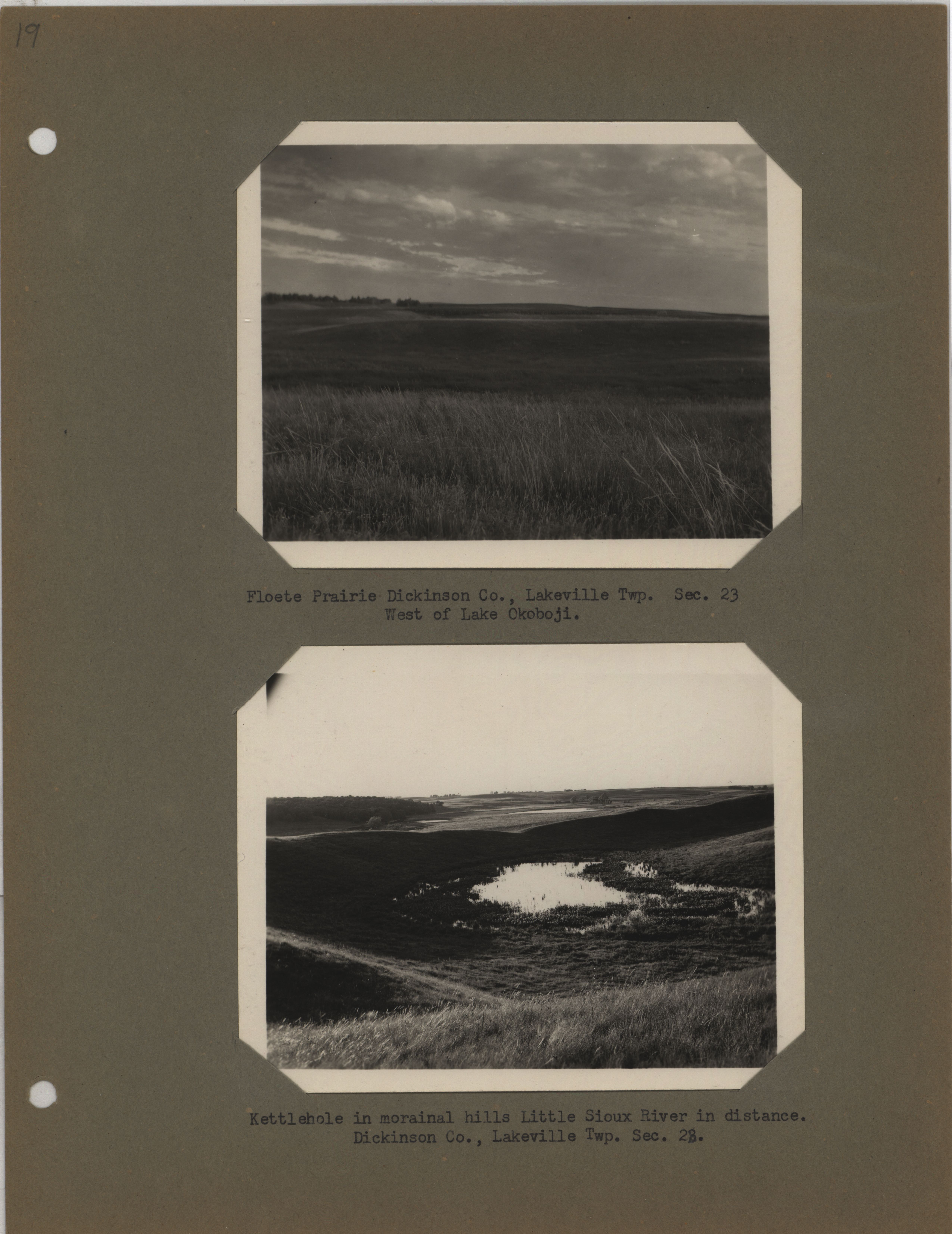 - Mounted photographs with captions of geology and botanical features of prairies found in the State of Iowa.