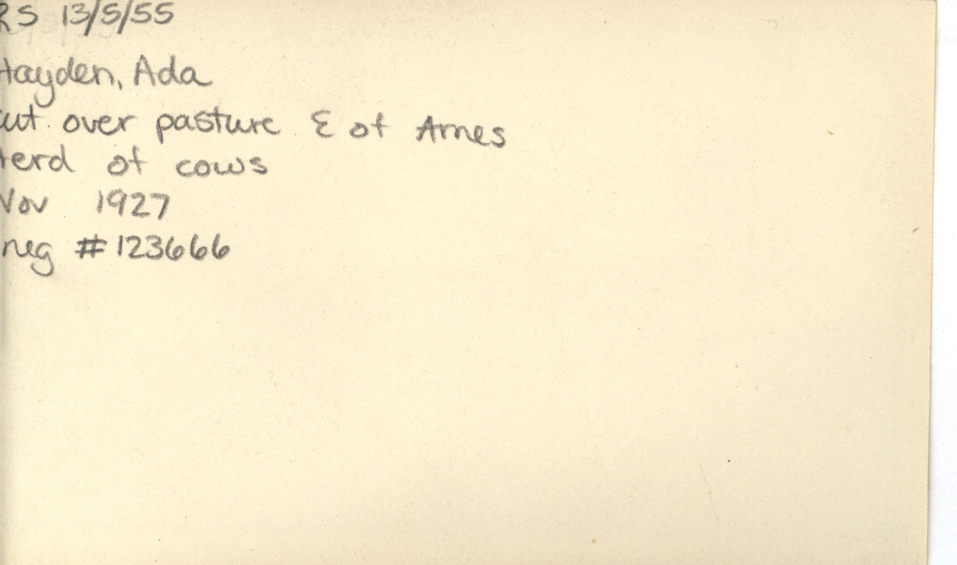 - "Photograph of a Herd of Cows in a Cut Over Pasture East of Ames", Ada Hayden Collection, Iowa State University Library Digital Collections