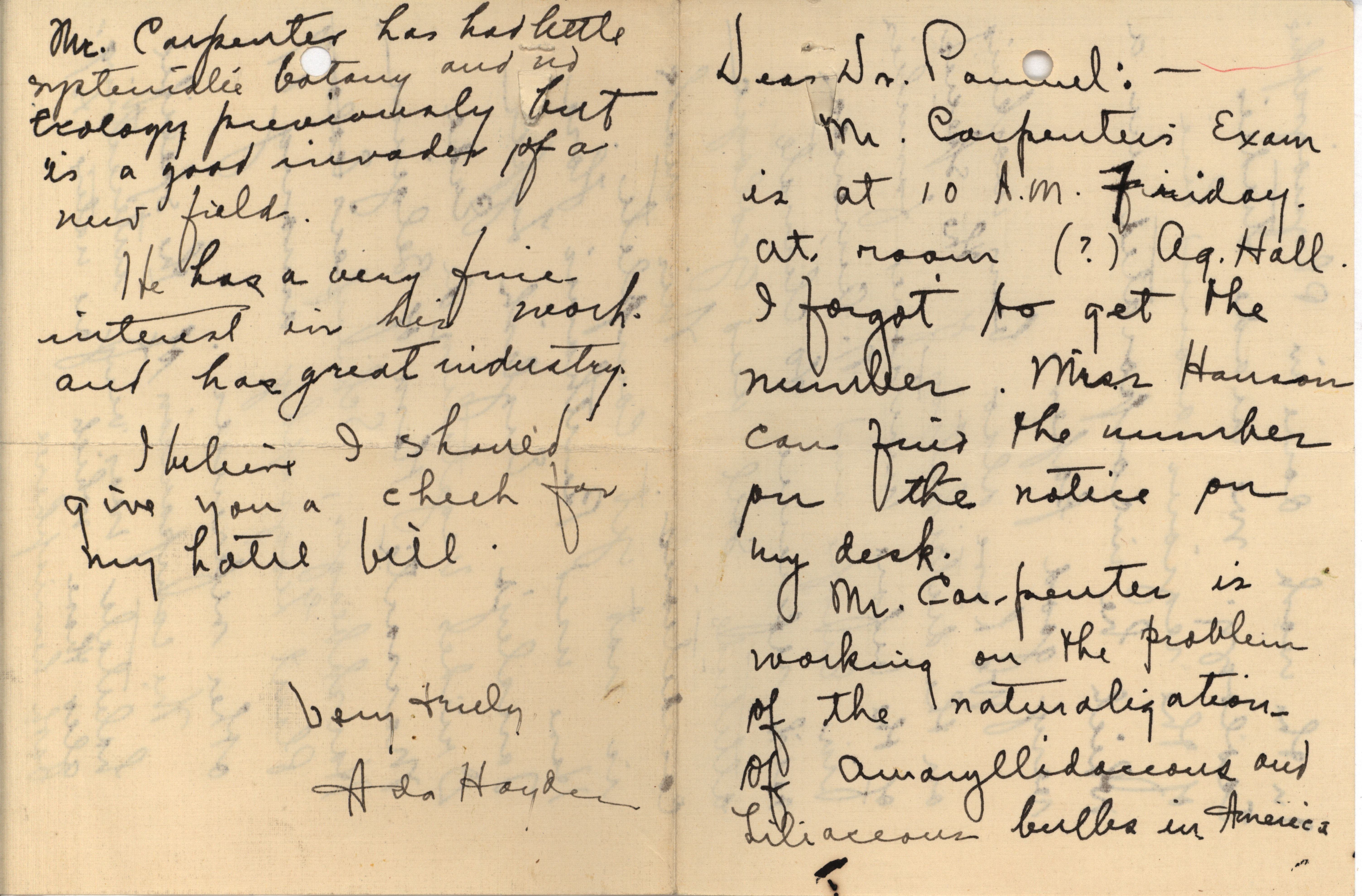 - Letter from Ada Hayden to Louis Hermann Pammel