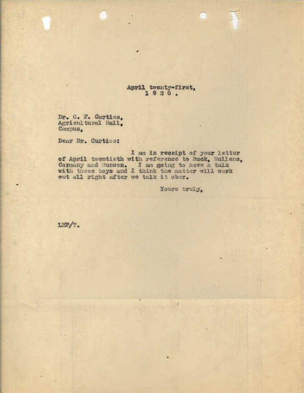 - Letter from Louis Hermann Pammel to Charles Curtiss, April 21, 1920