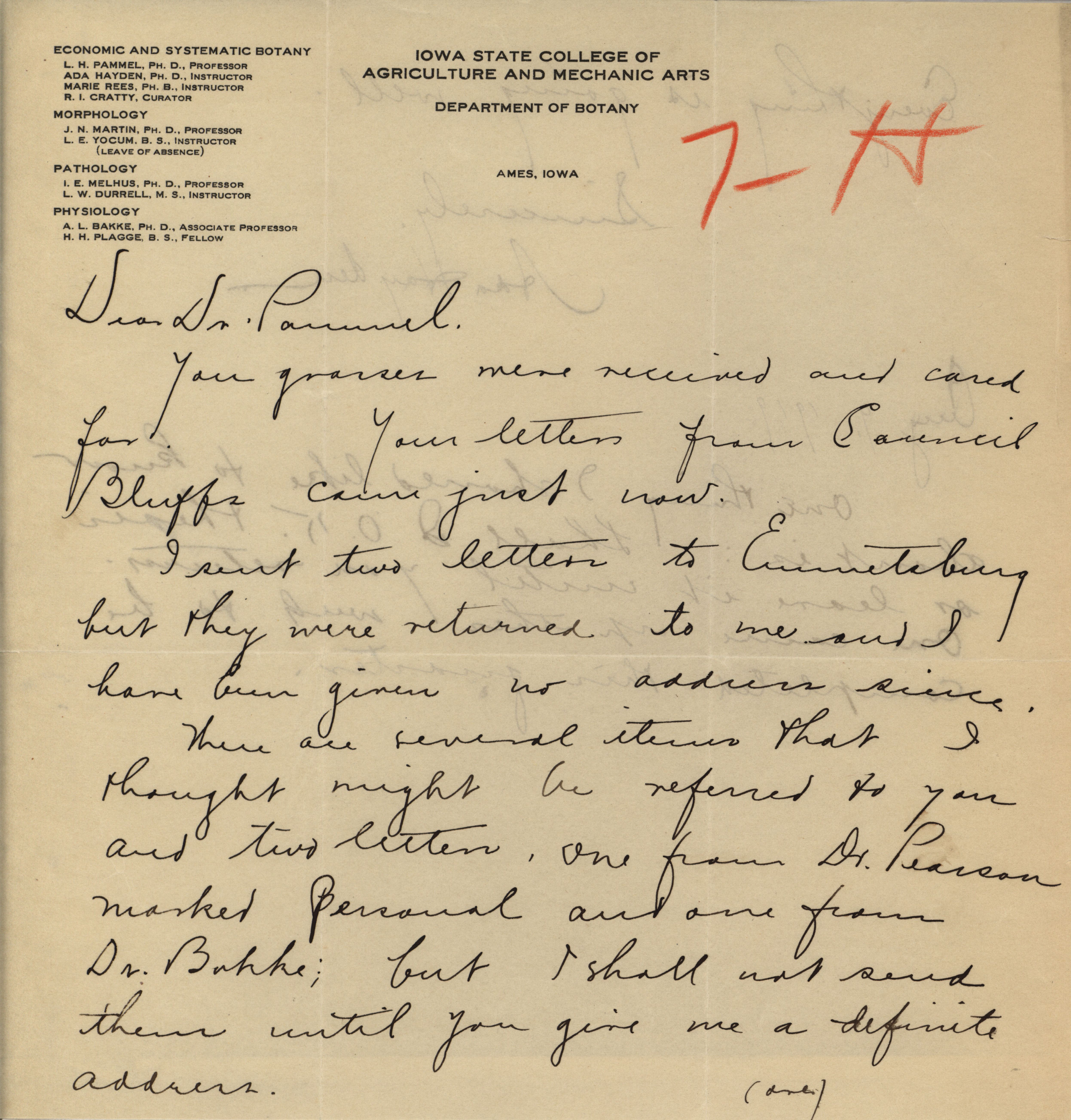 - Letter from Ada Hayden to Louis Hermann Pammel, August 9, 1919