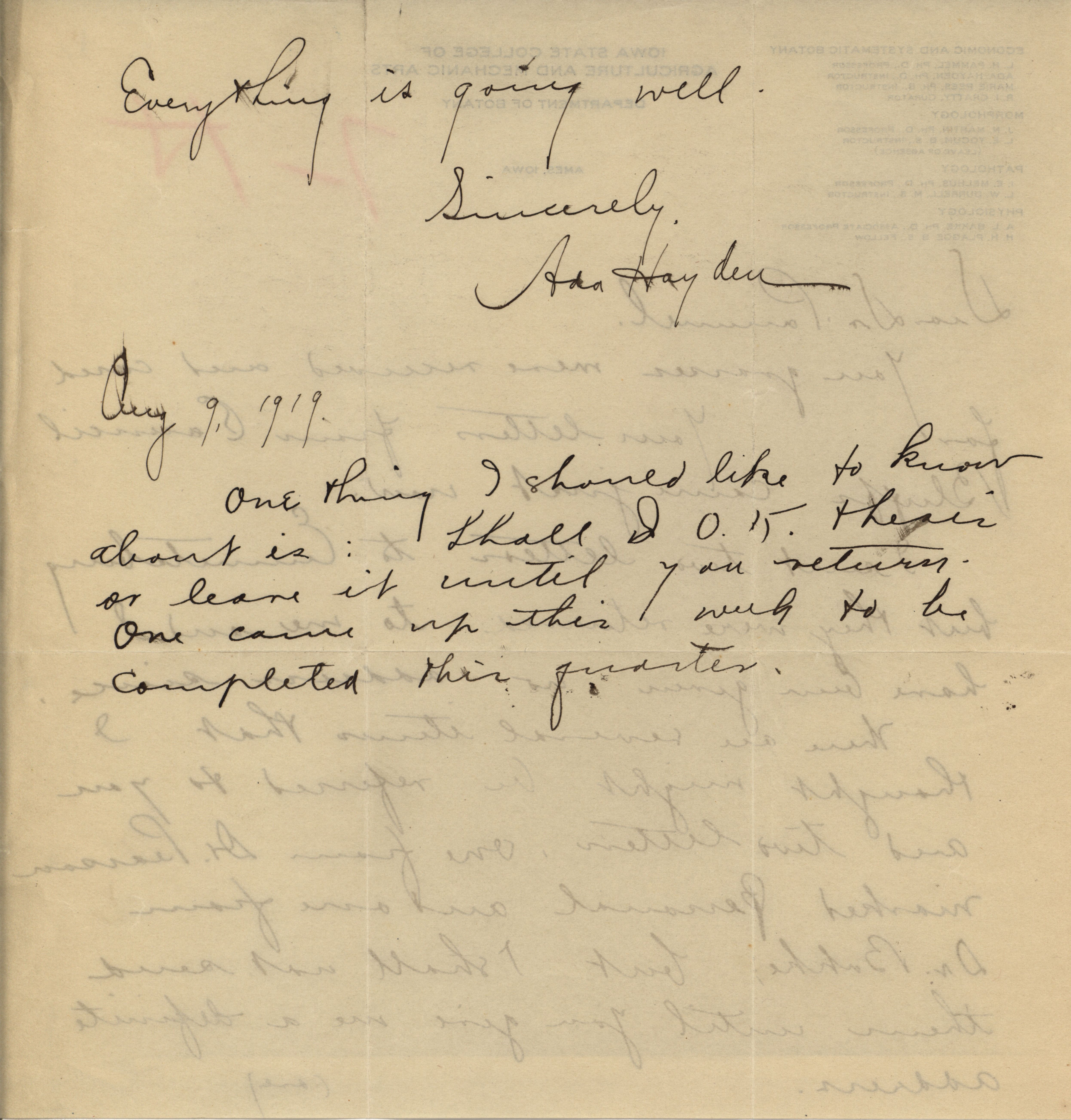 Letter from Ada Hayden to Louis Hermann Pammel, August 9, 1919 Item Info