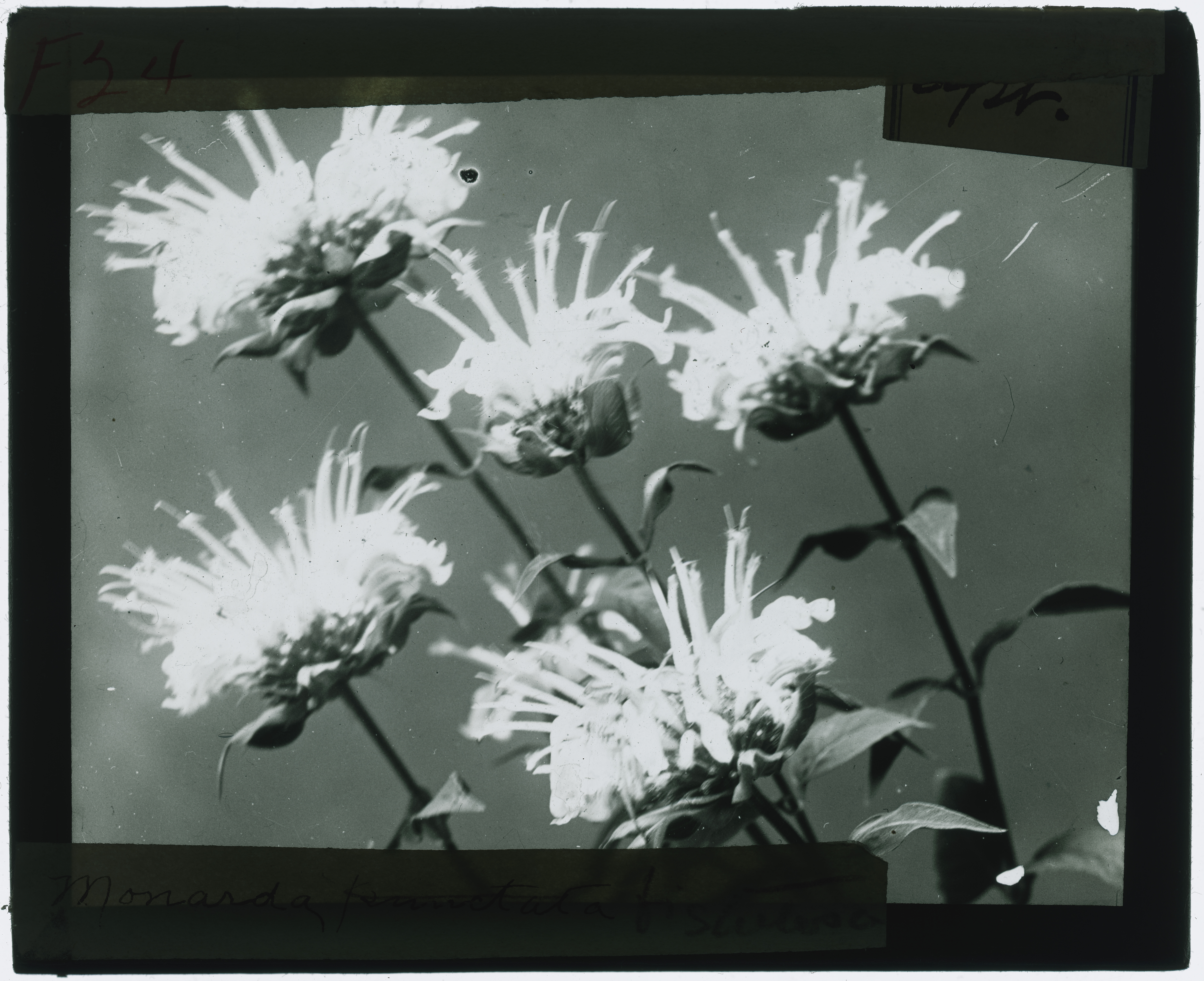 - Monarda fistulosa (Bee balm) specimens (black and white), including flowers and leaves.