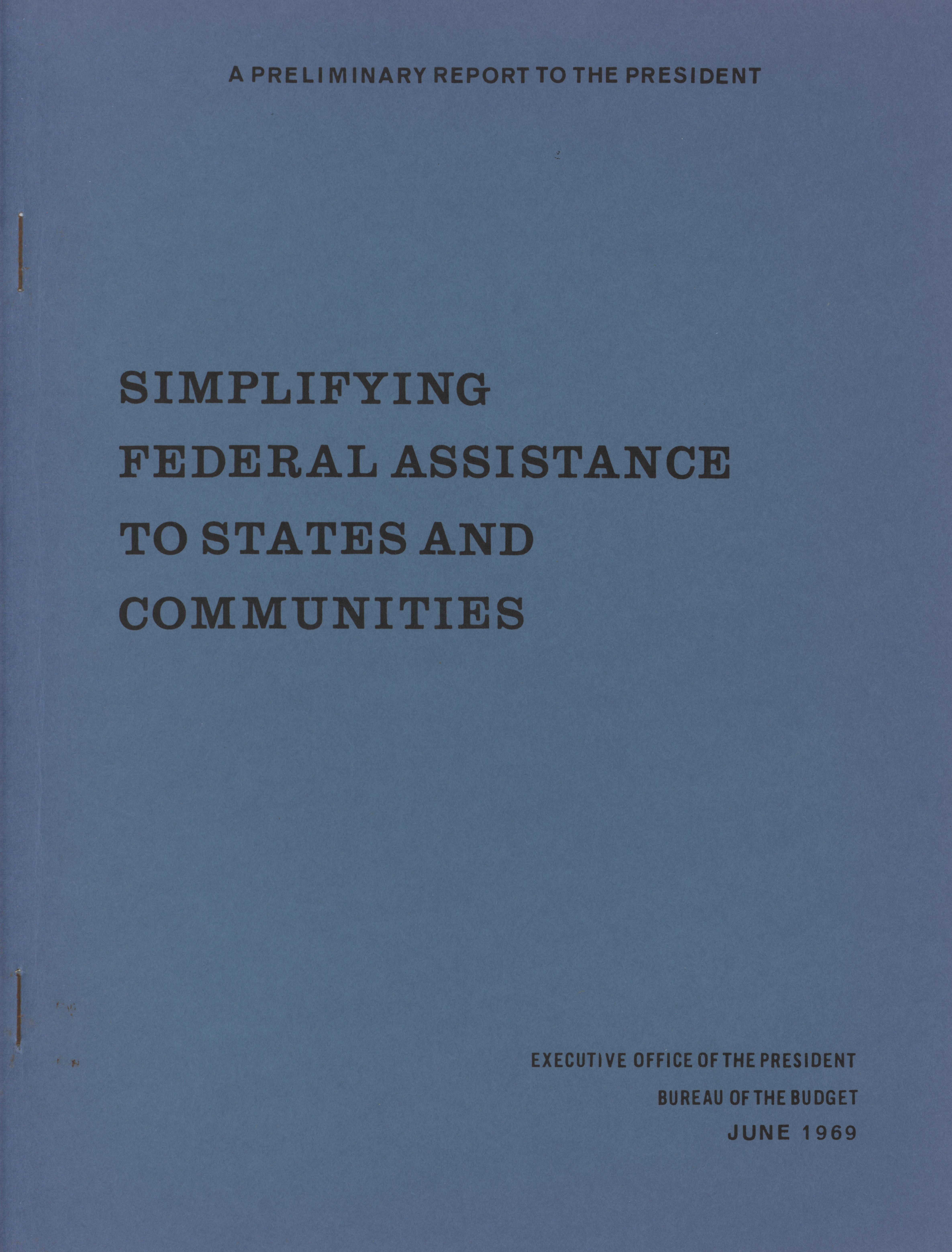 A preliminary report to the president on simplifying federal assistance to states and communities Item Info