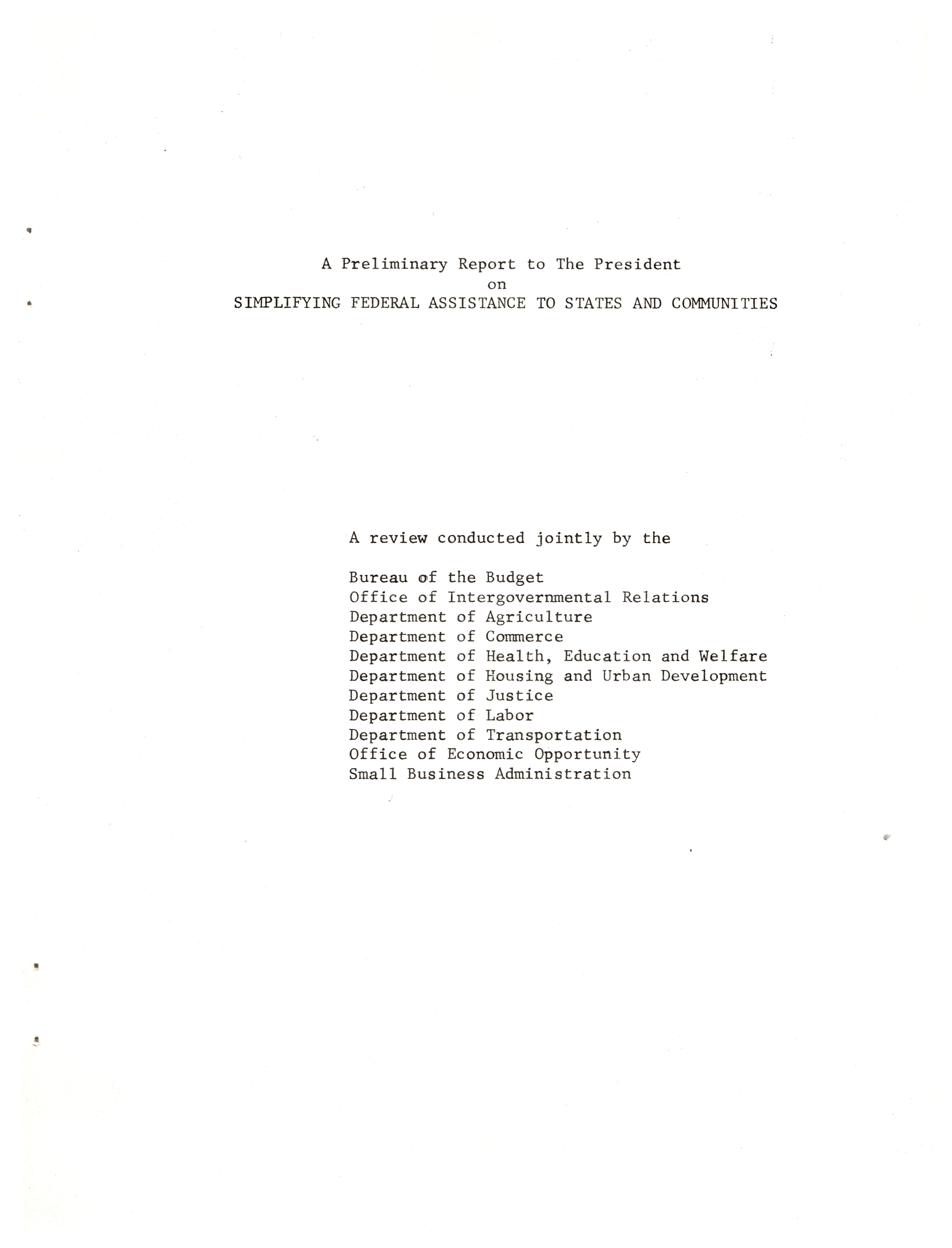 - A preliminary report to the president on simplifying federal assistance to states and communities
