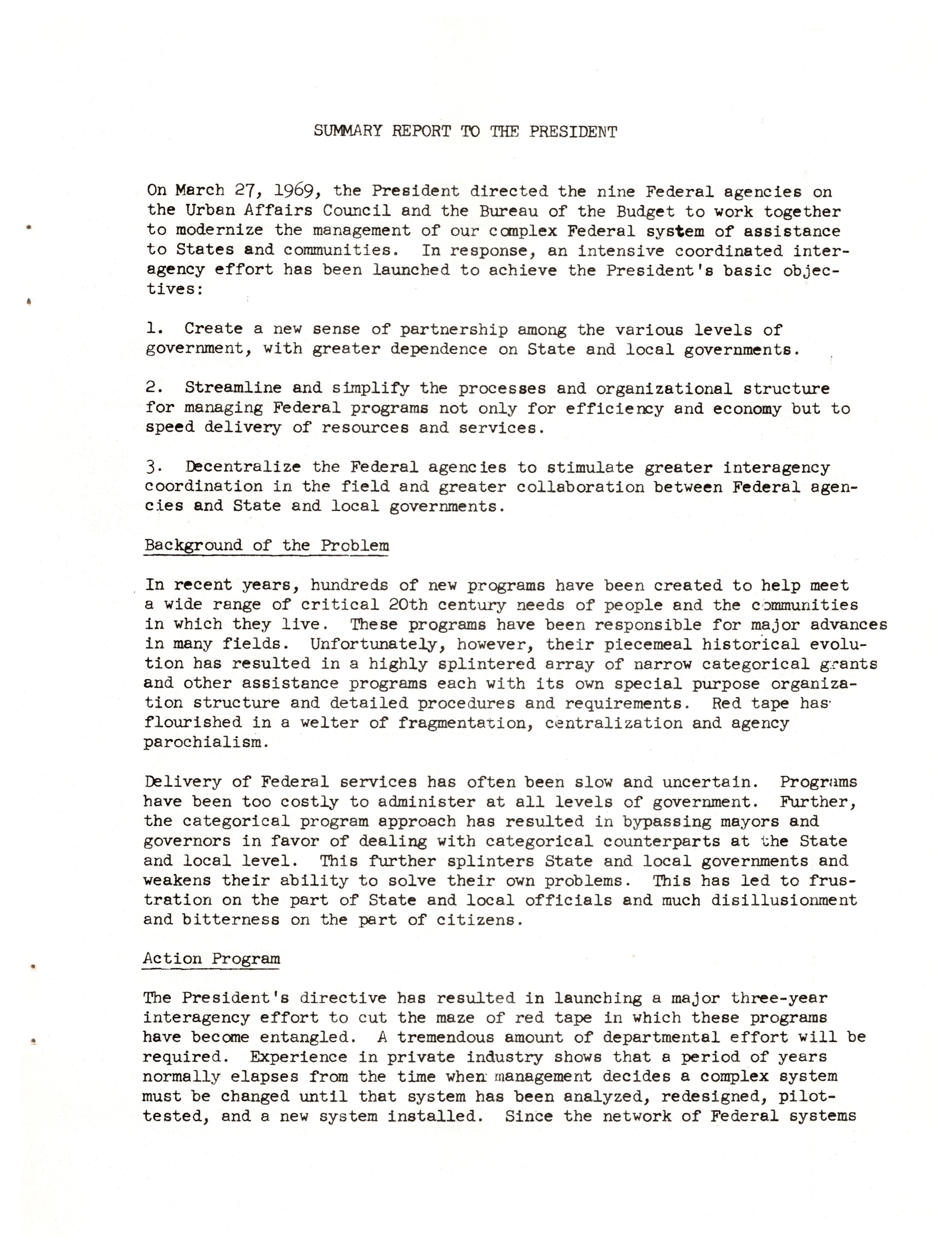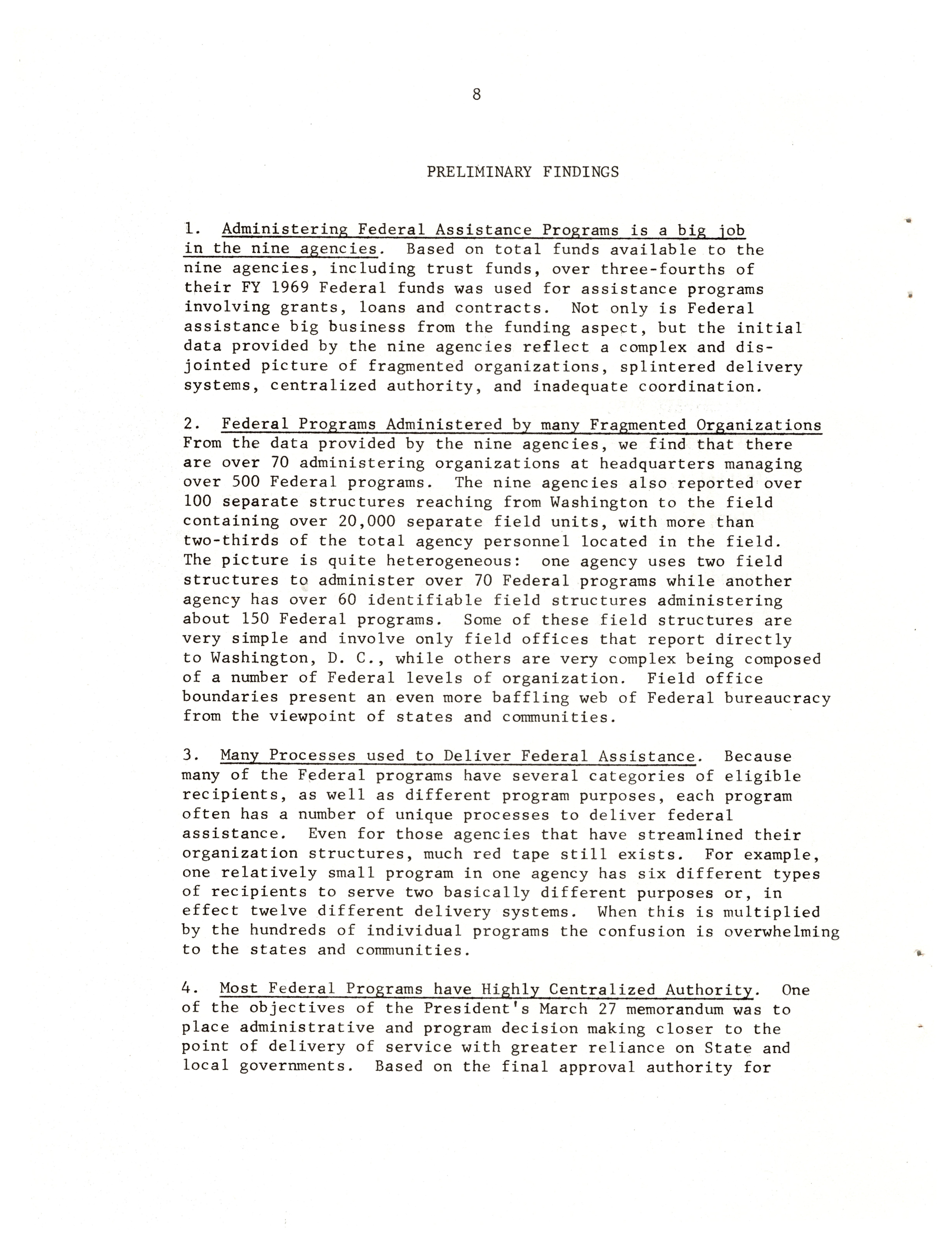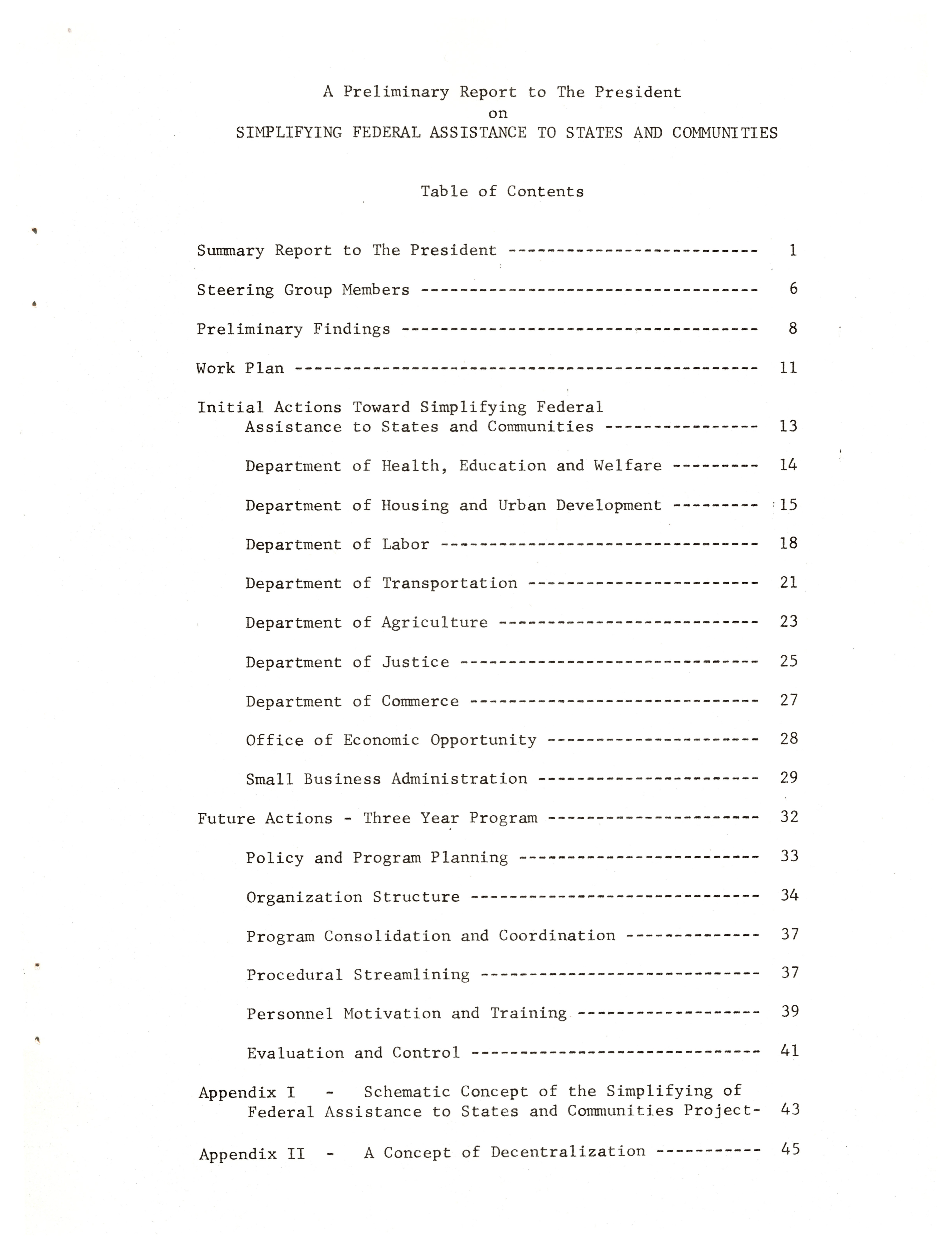 - "A preliminary report to the president on simplifying federal assistance to states and communities", Dwight Ink Collection, Iowa State University Library Digital Collections