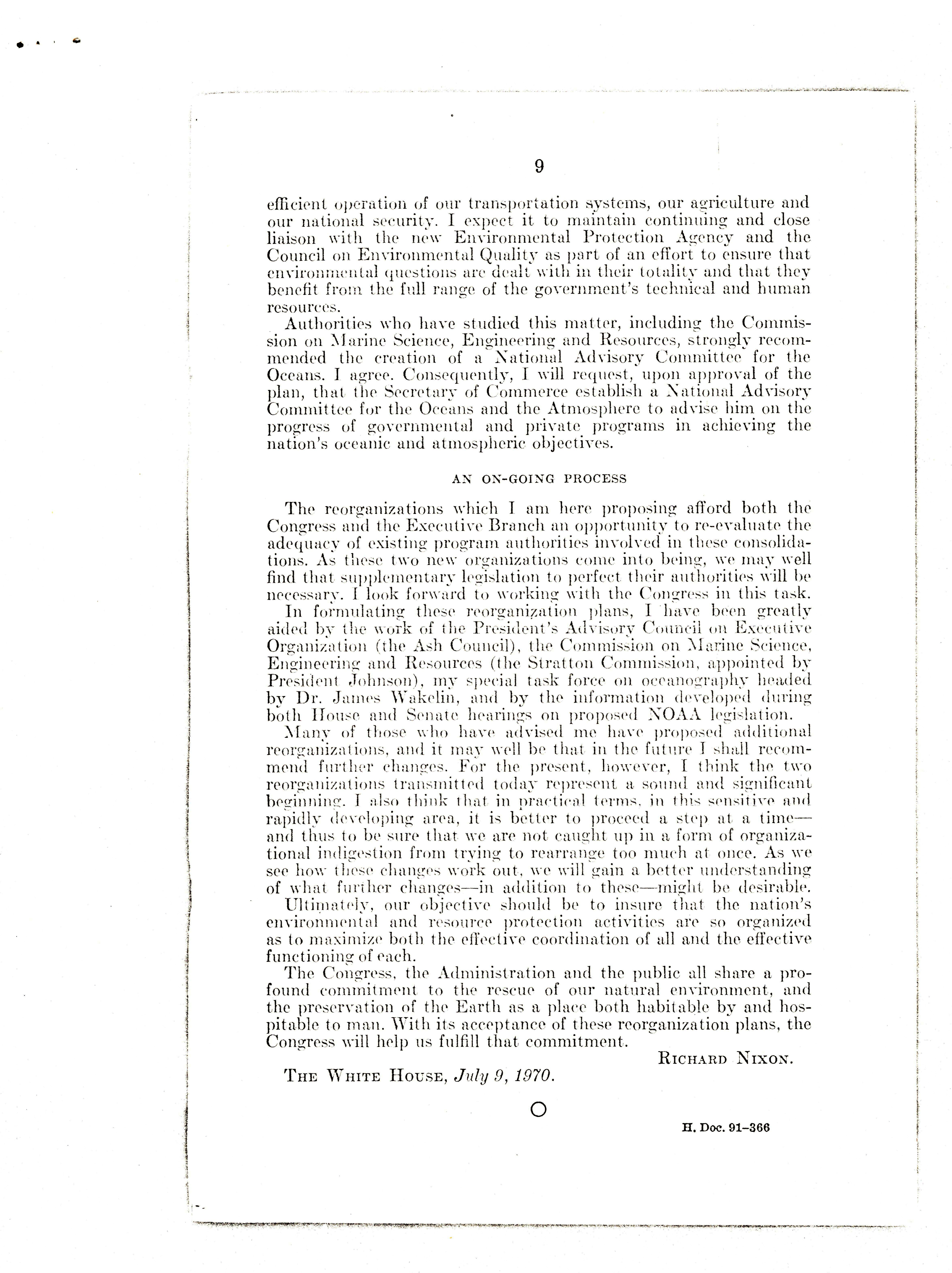 - "Message from the president of the United States relative to reorganization plans nos. 3 and 4 of 1970", Dwight Ink Collection, Iowa State University Library Digital Collections