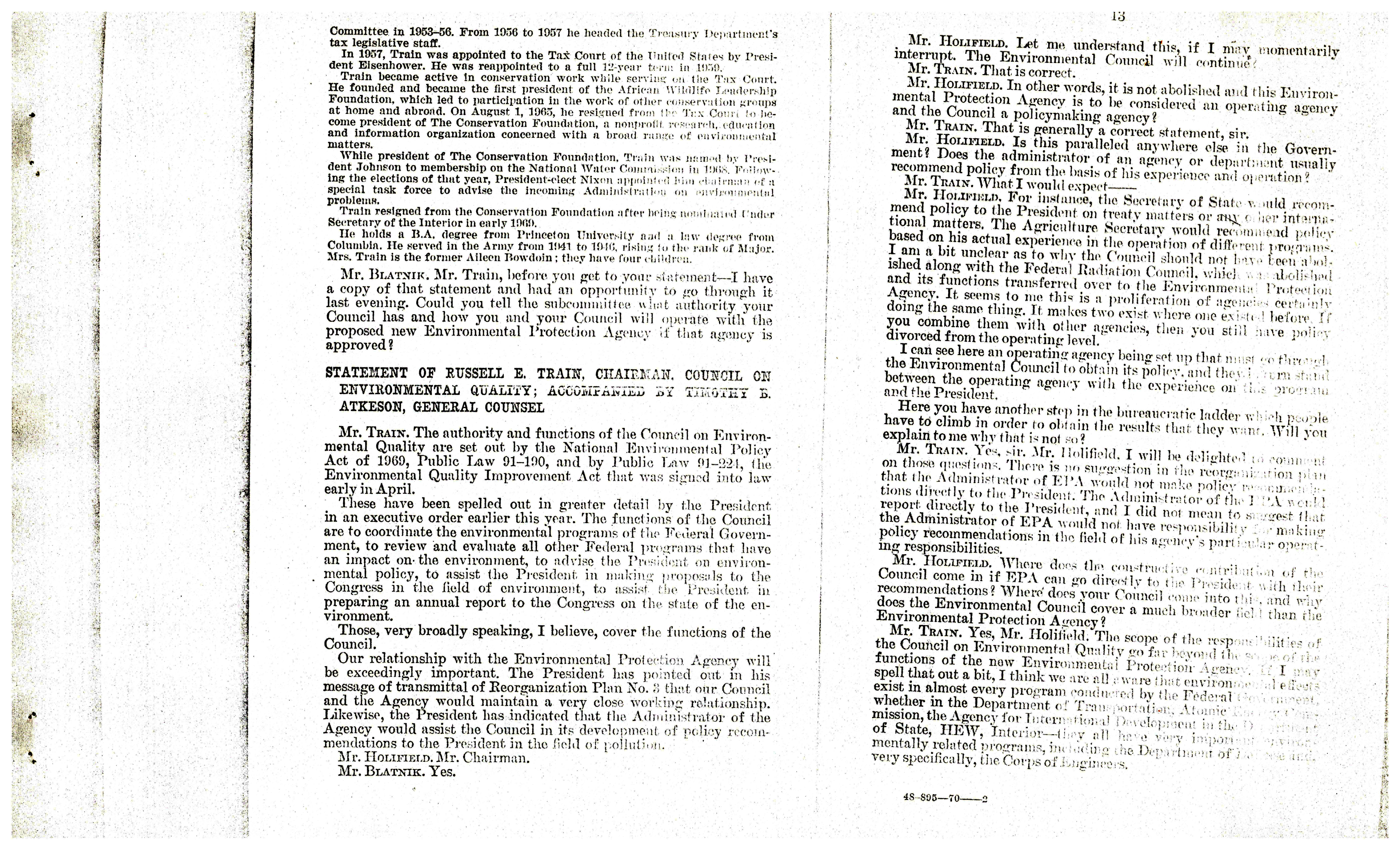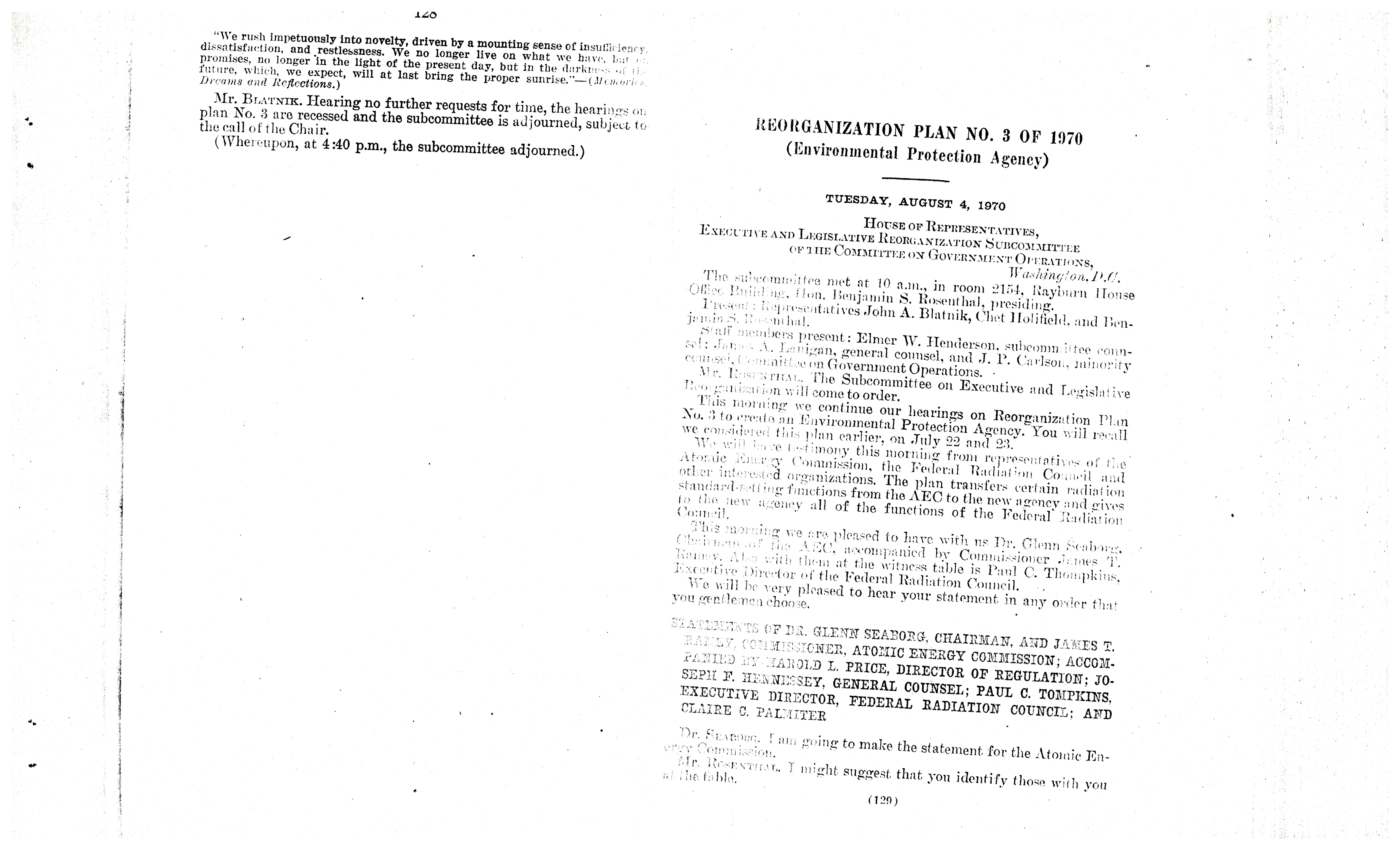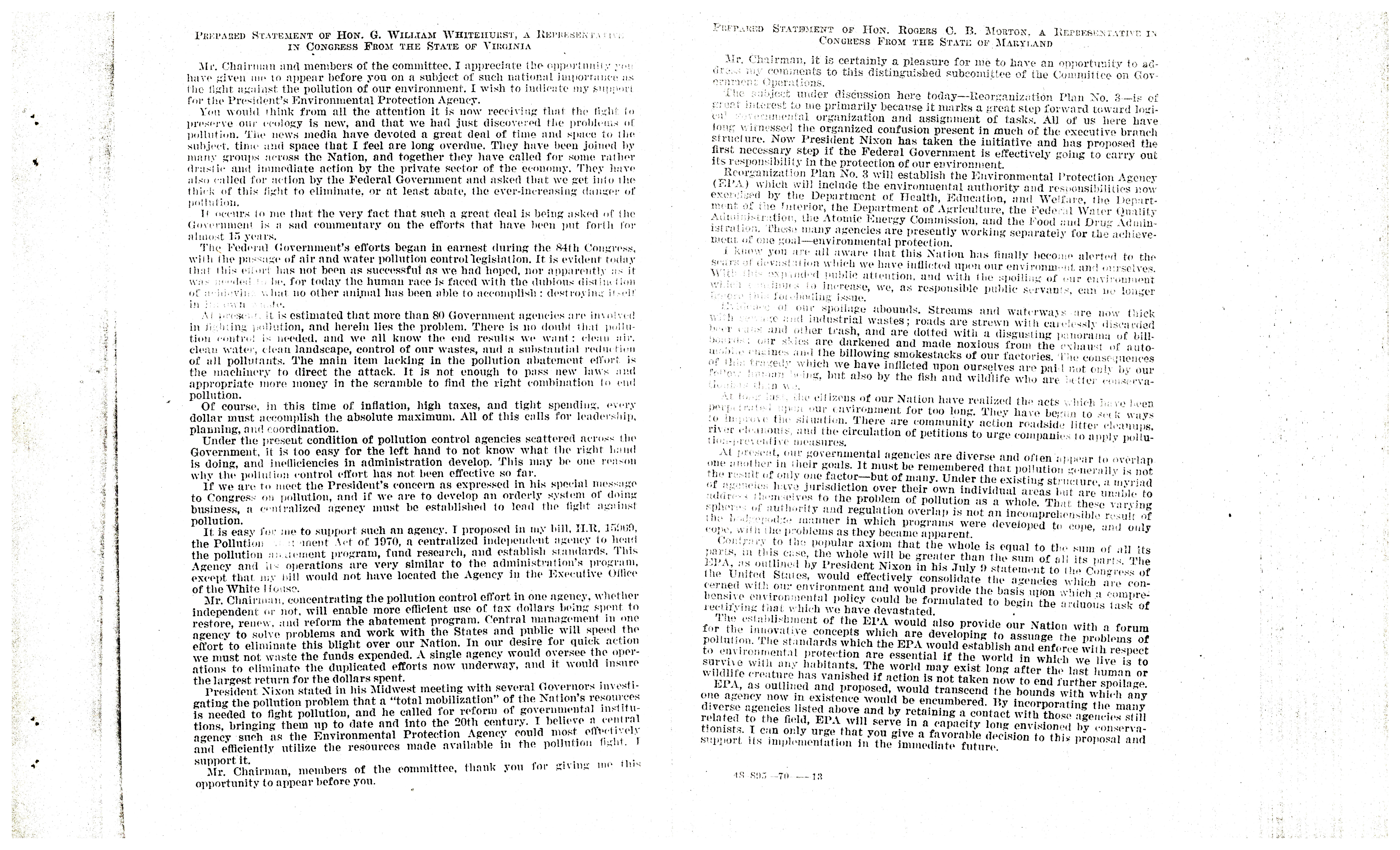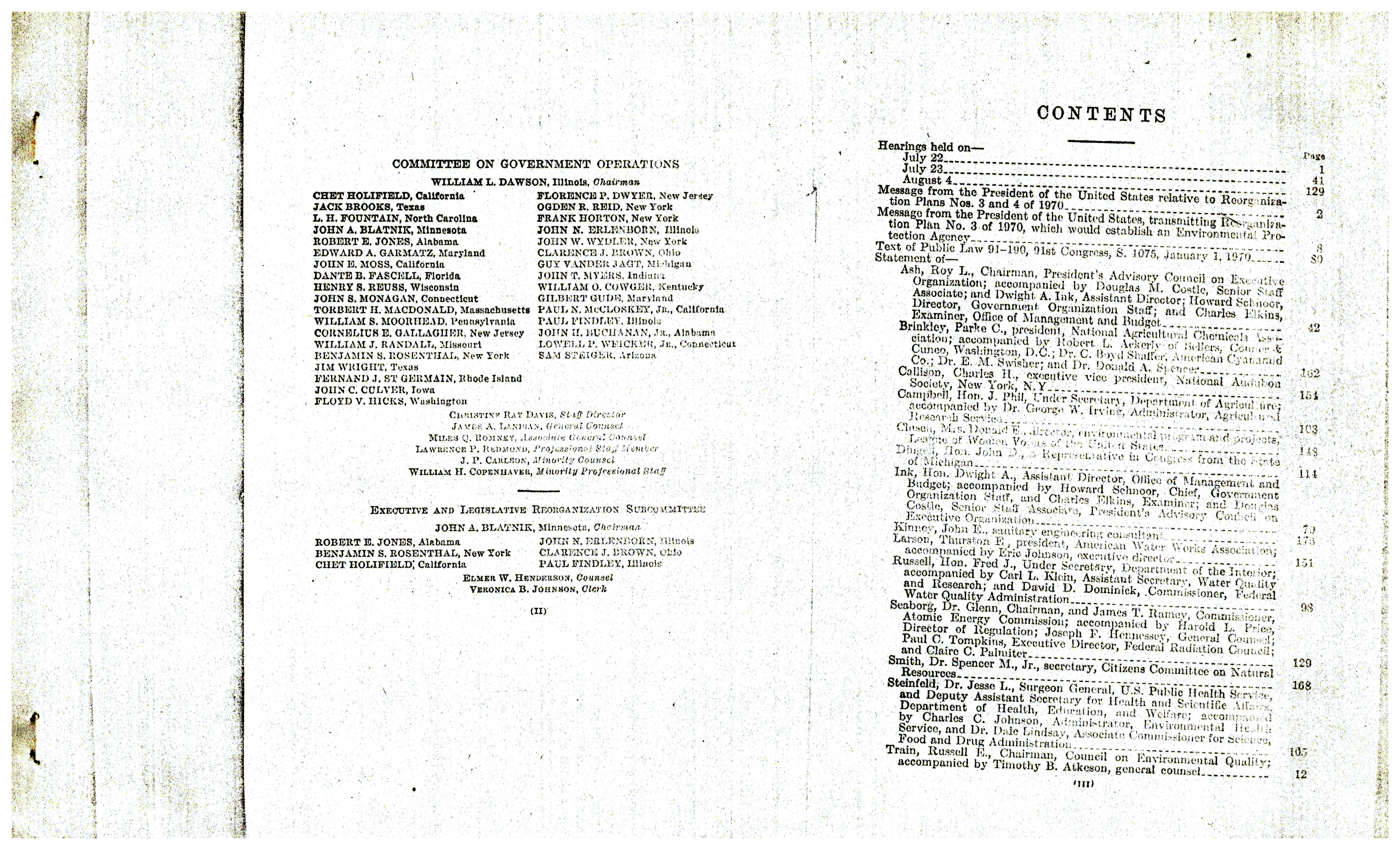 - U.S. Congress. House. Committee on Government Operations. Reorganization plan no. 3, Environmental Protection Agency, hearings booklet, 1970