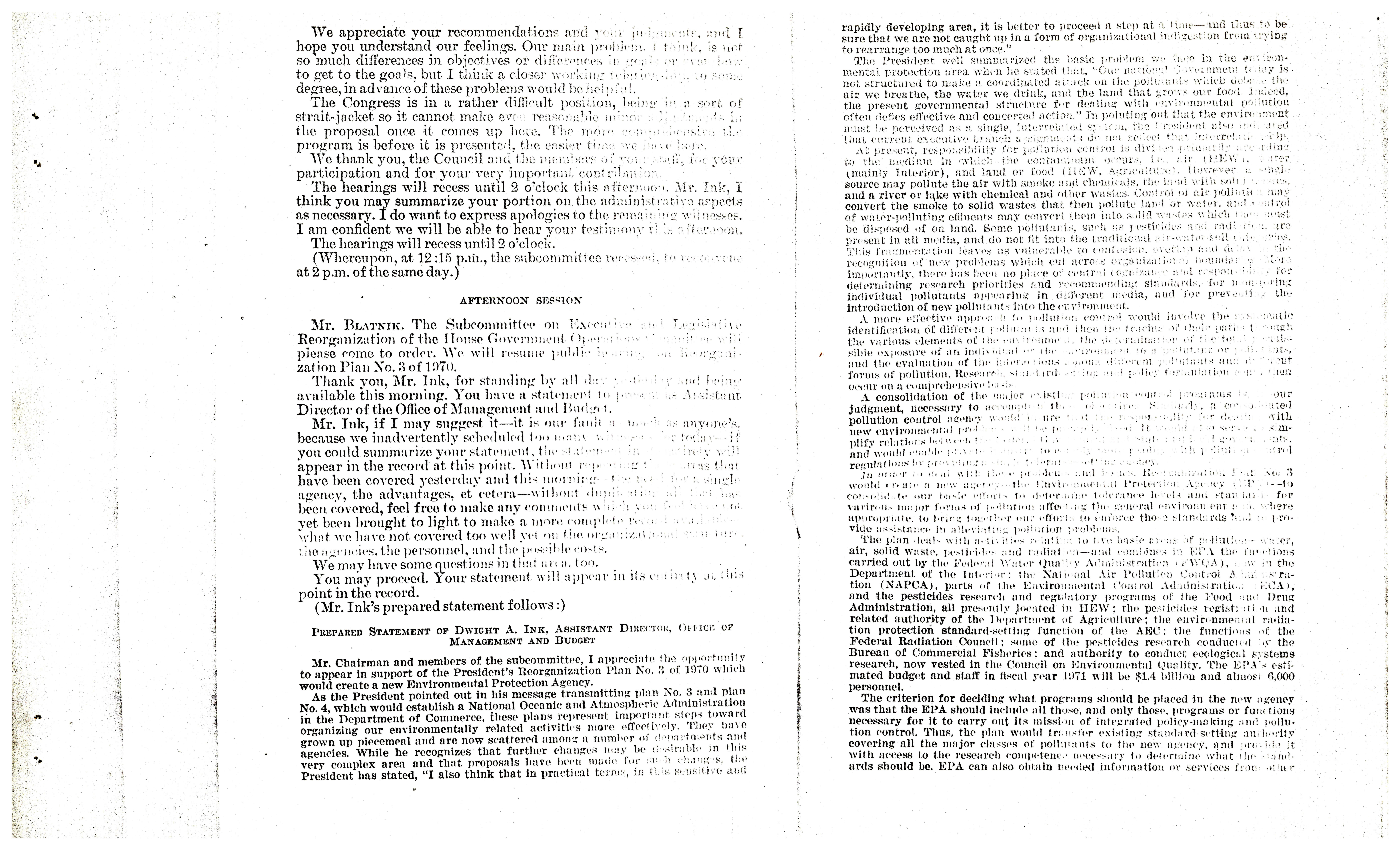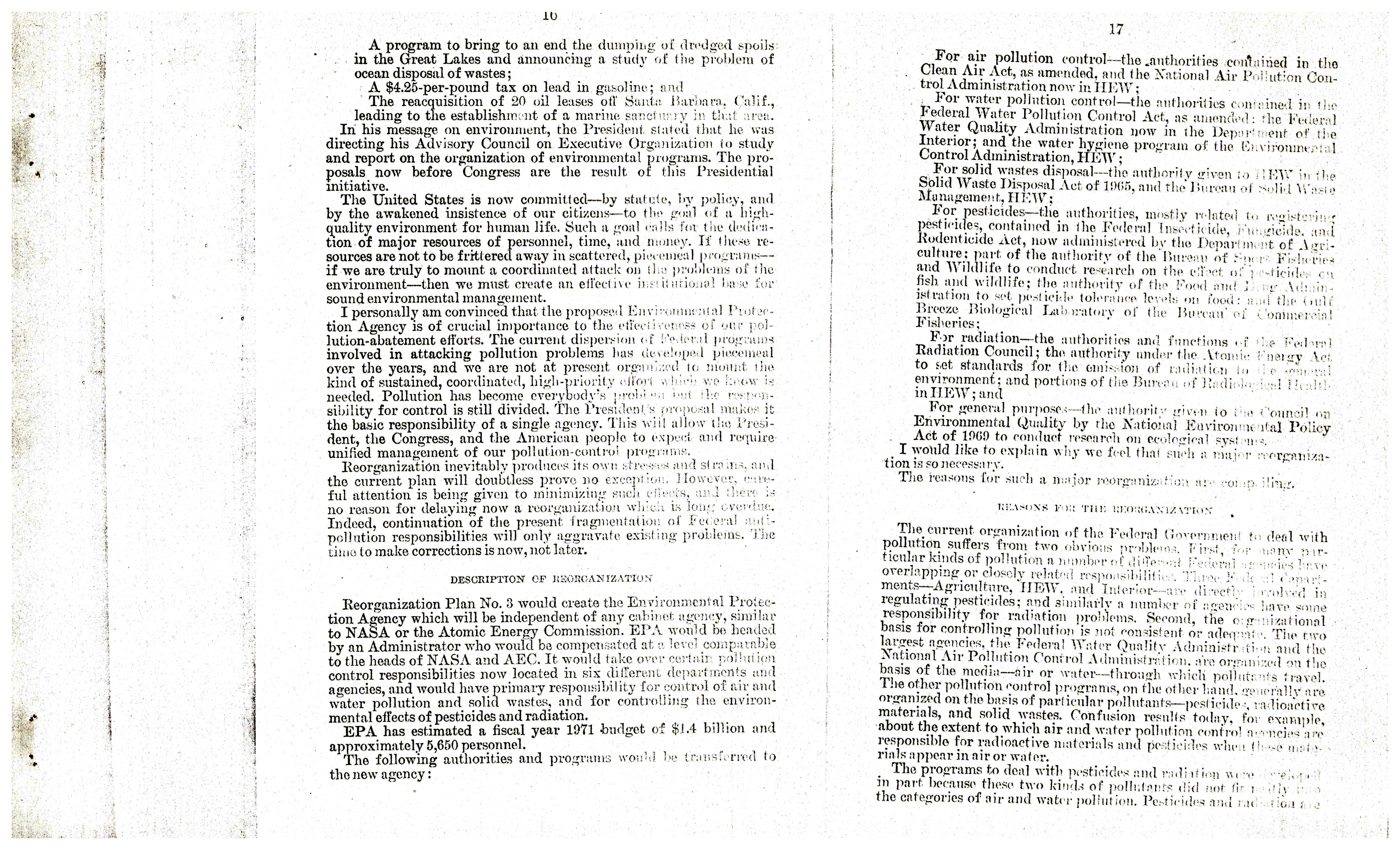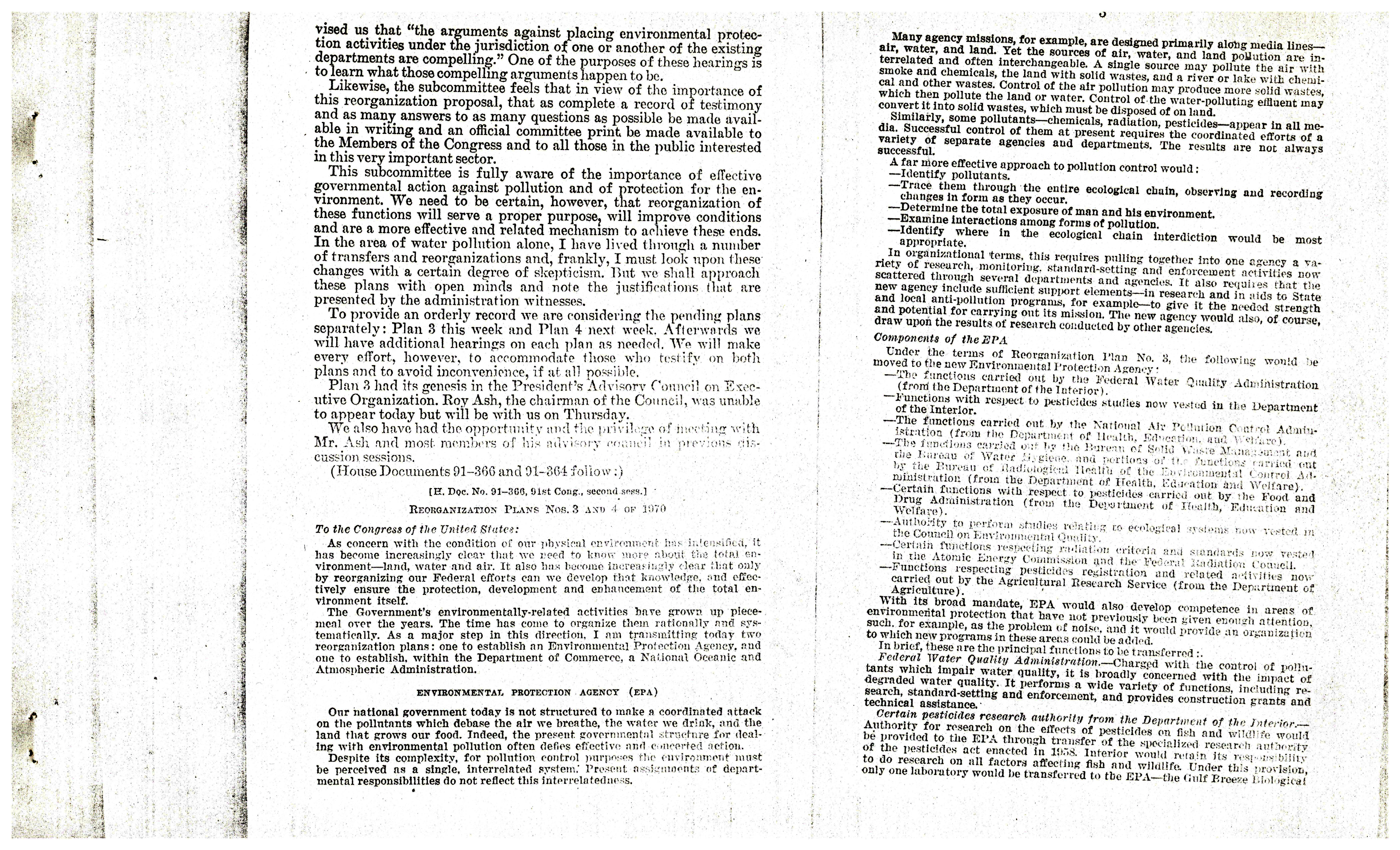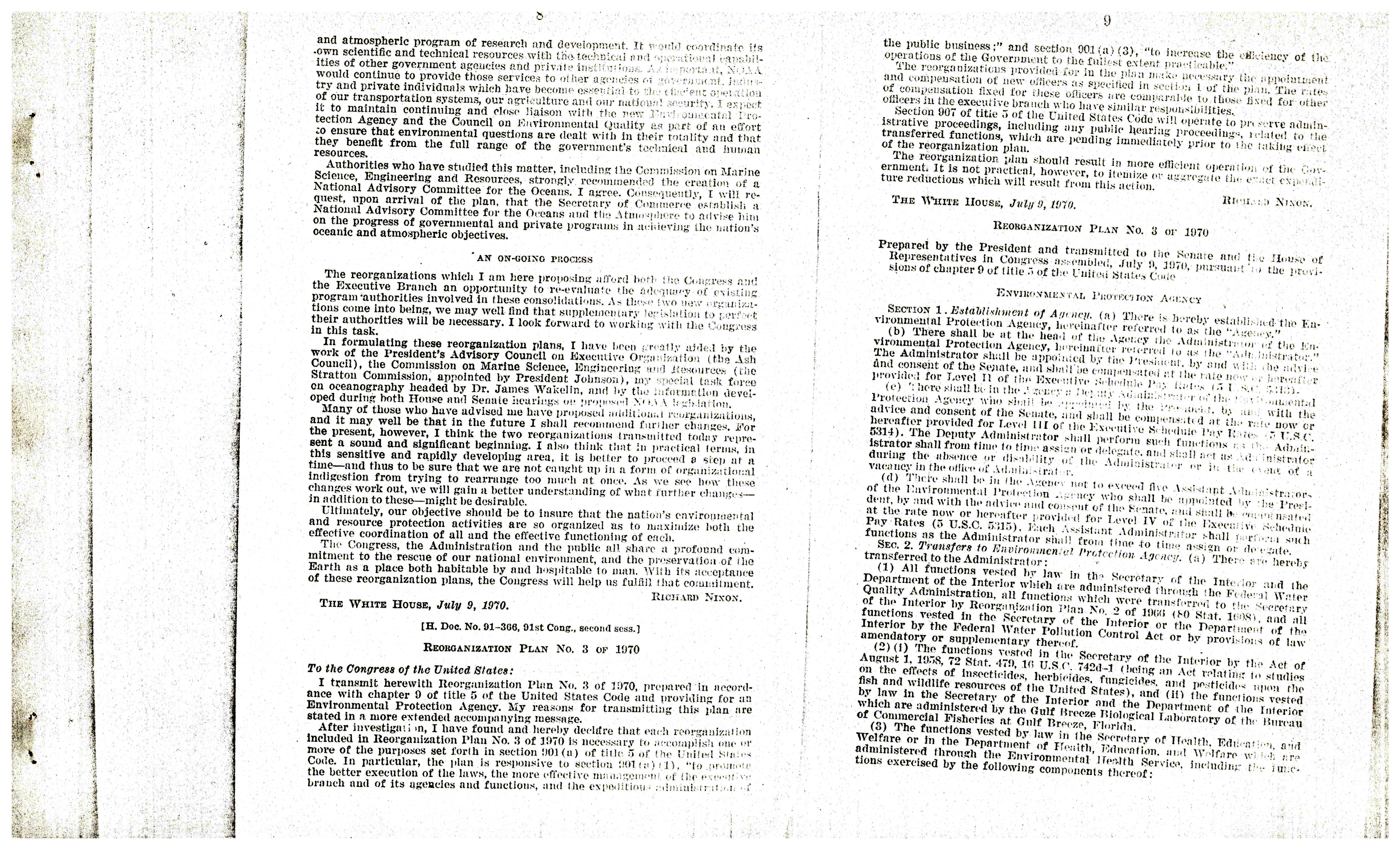 - "Reorganization plan no. 3 of 1970 (Environmental Protection Agency)", Dwight Ink Collection, Iowa State University Library Digital Collections