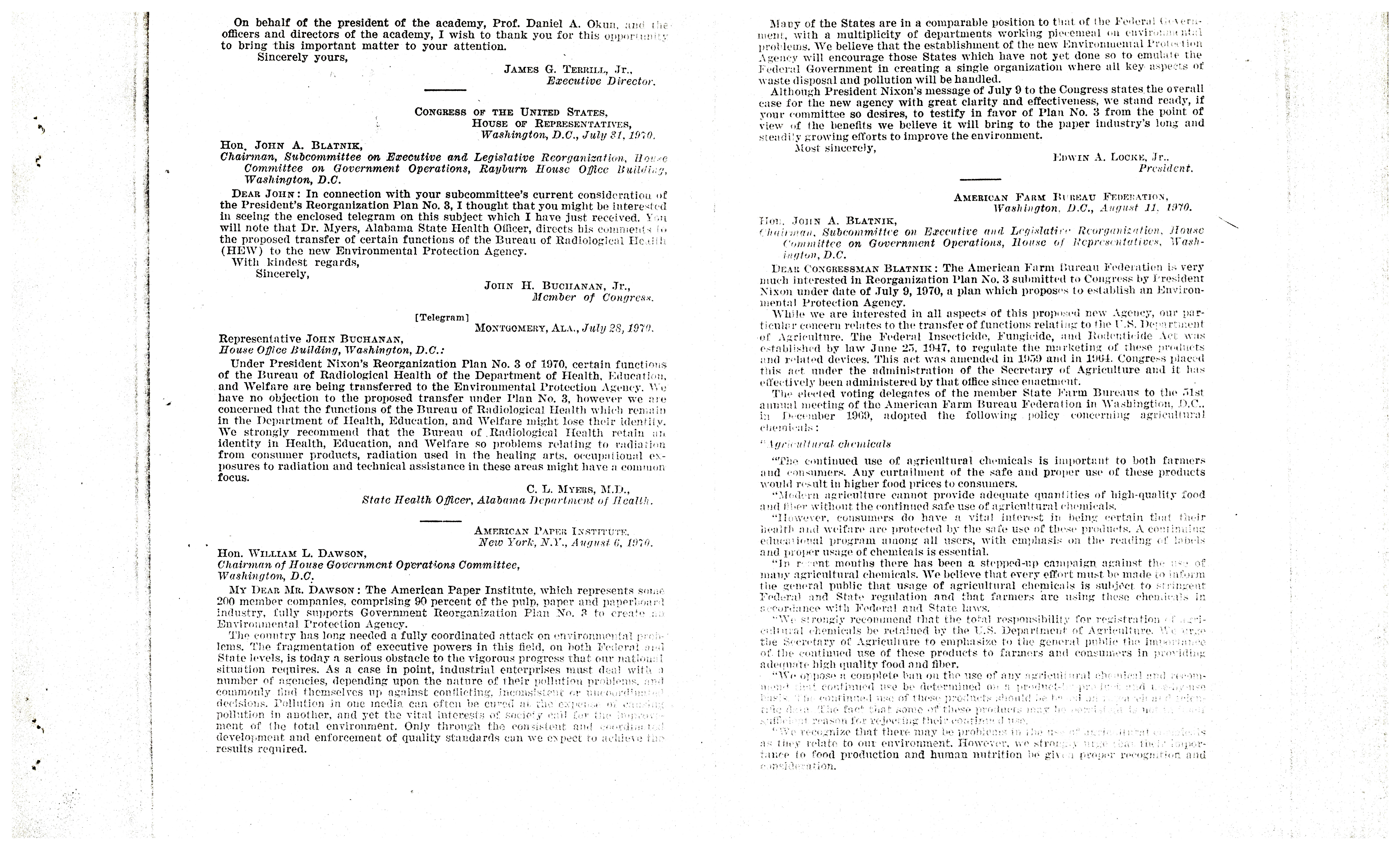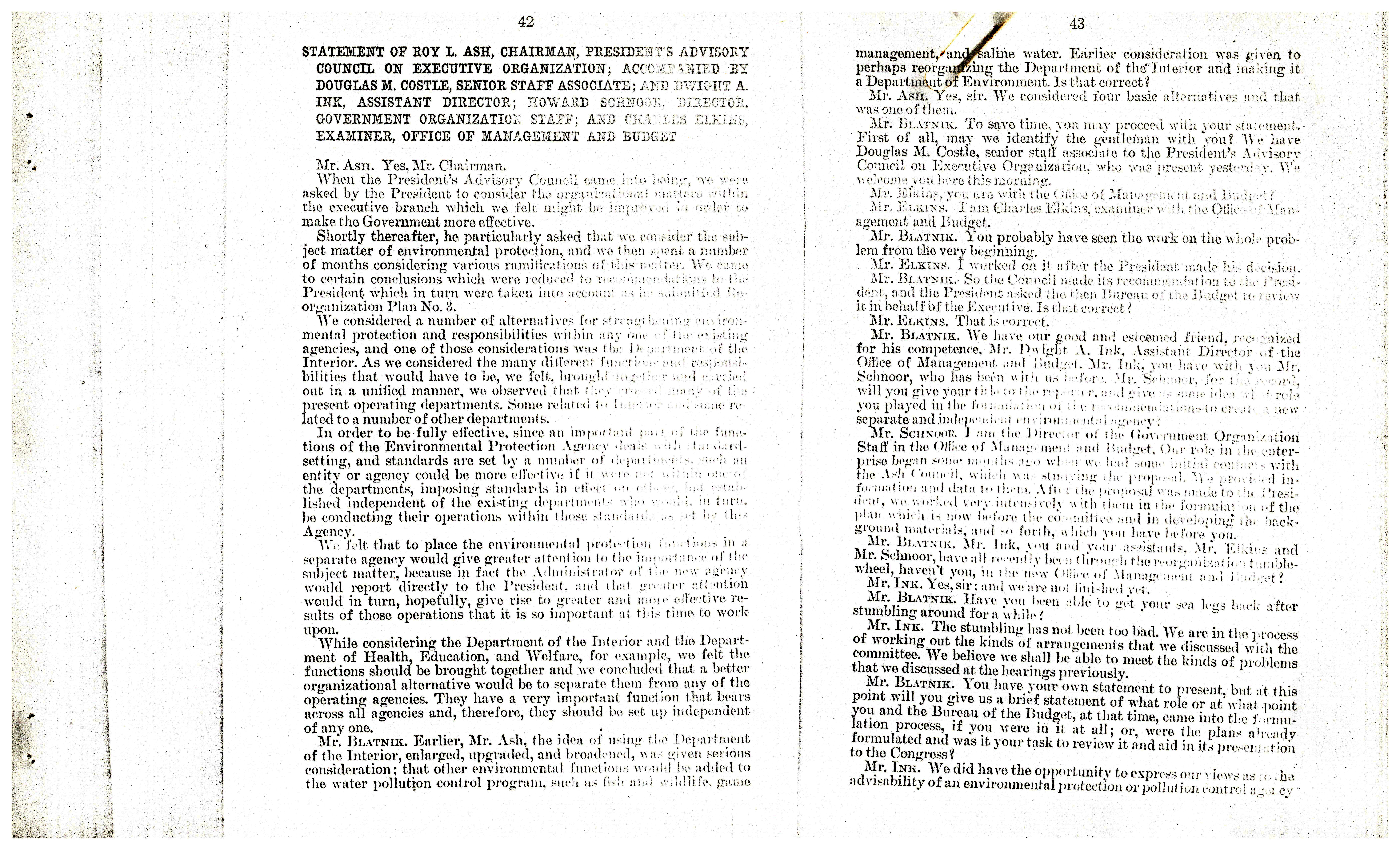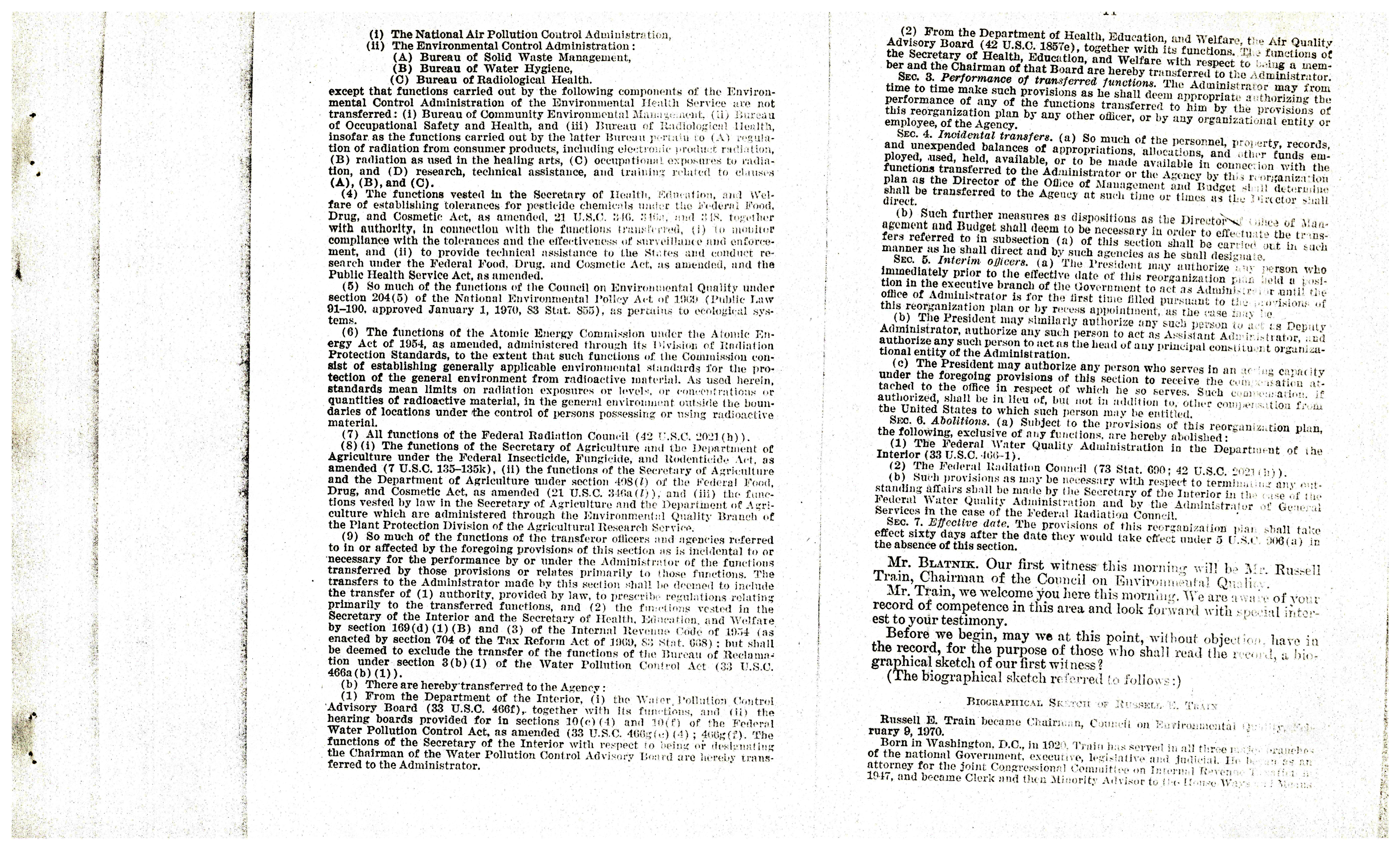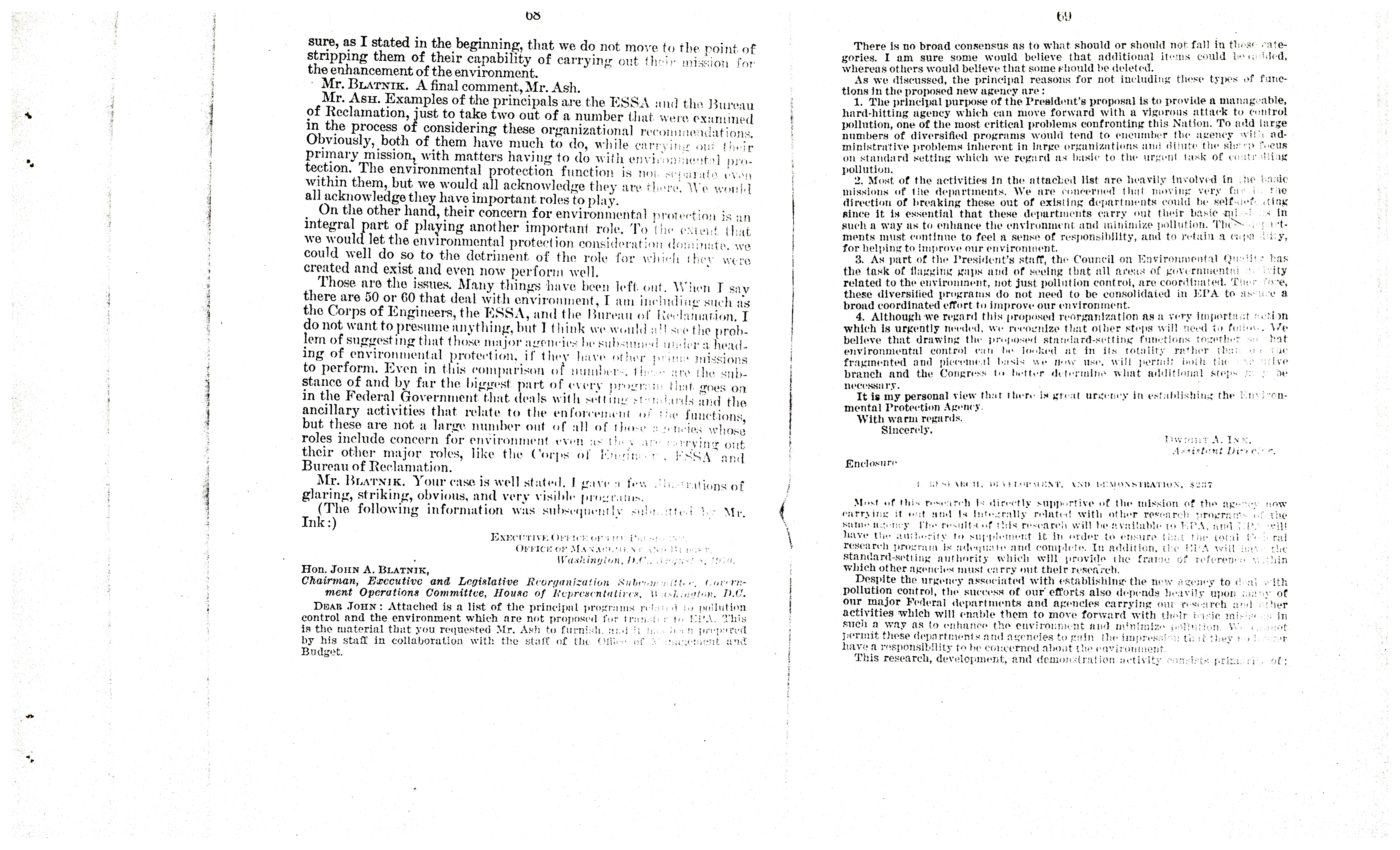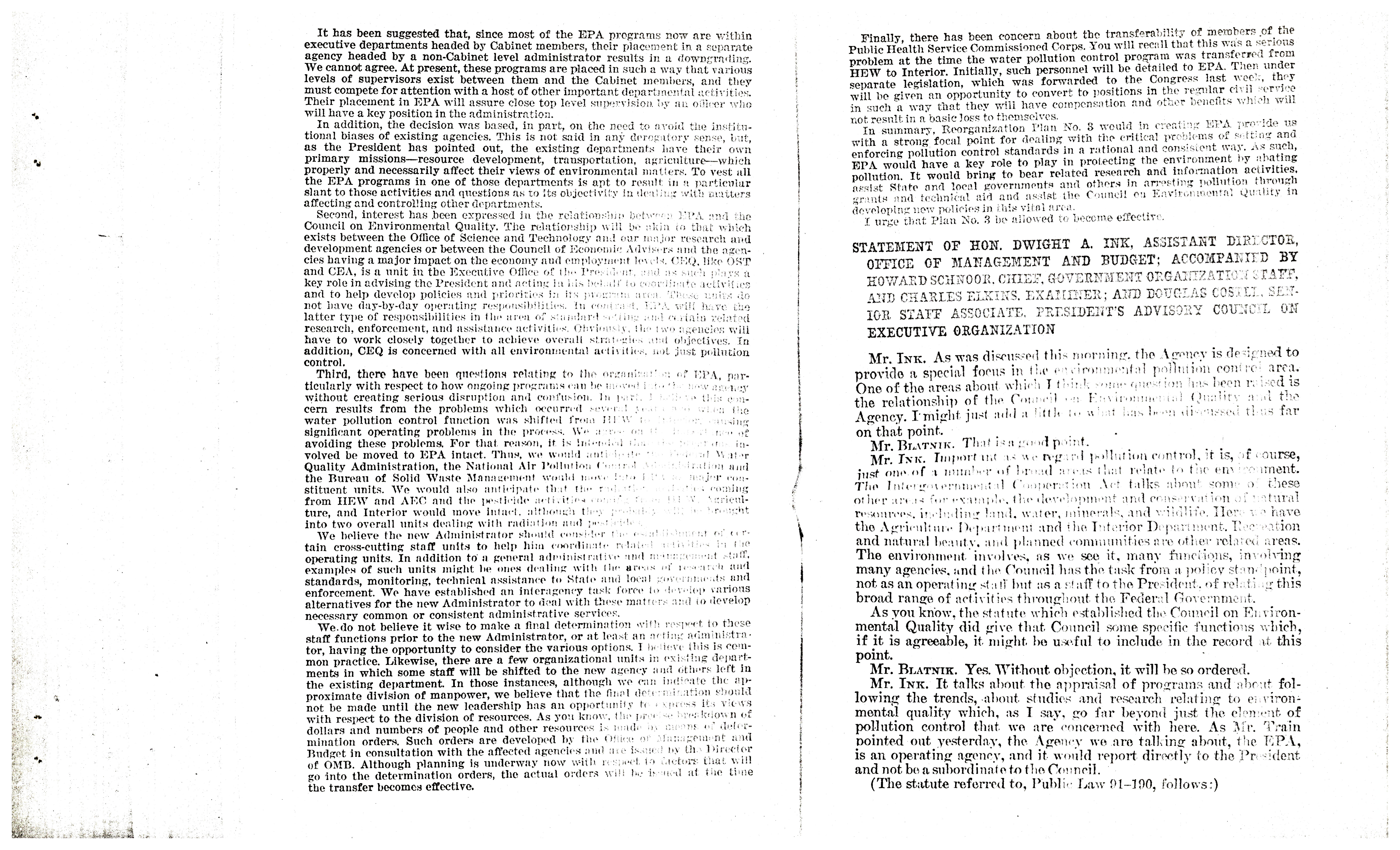 - "Reorganization plan no. 3 of 1970 (Environmental Protection Agency)", Dwight Ink Collection, Iowa State University Library Digital Collections