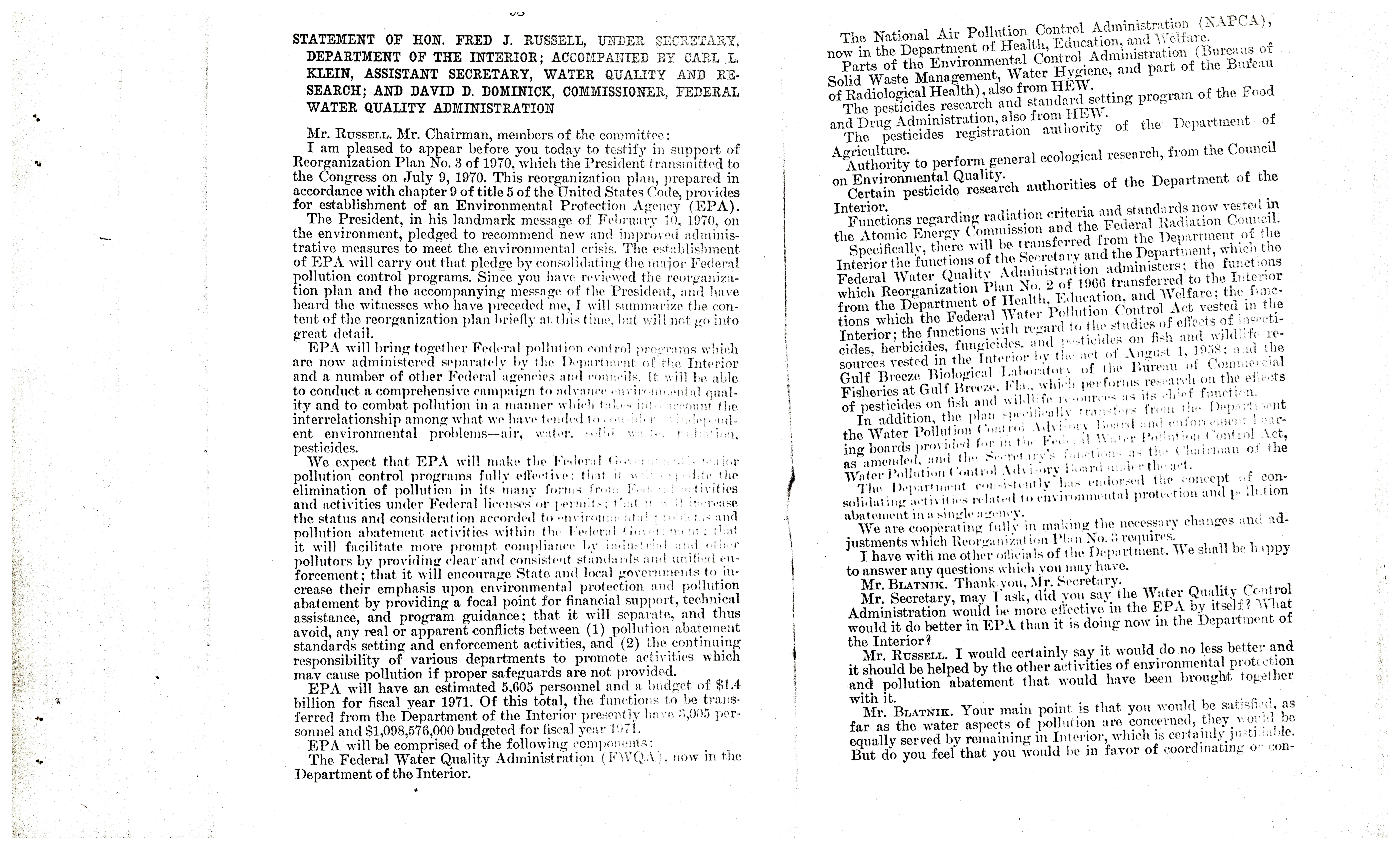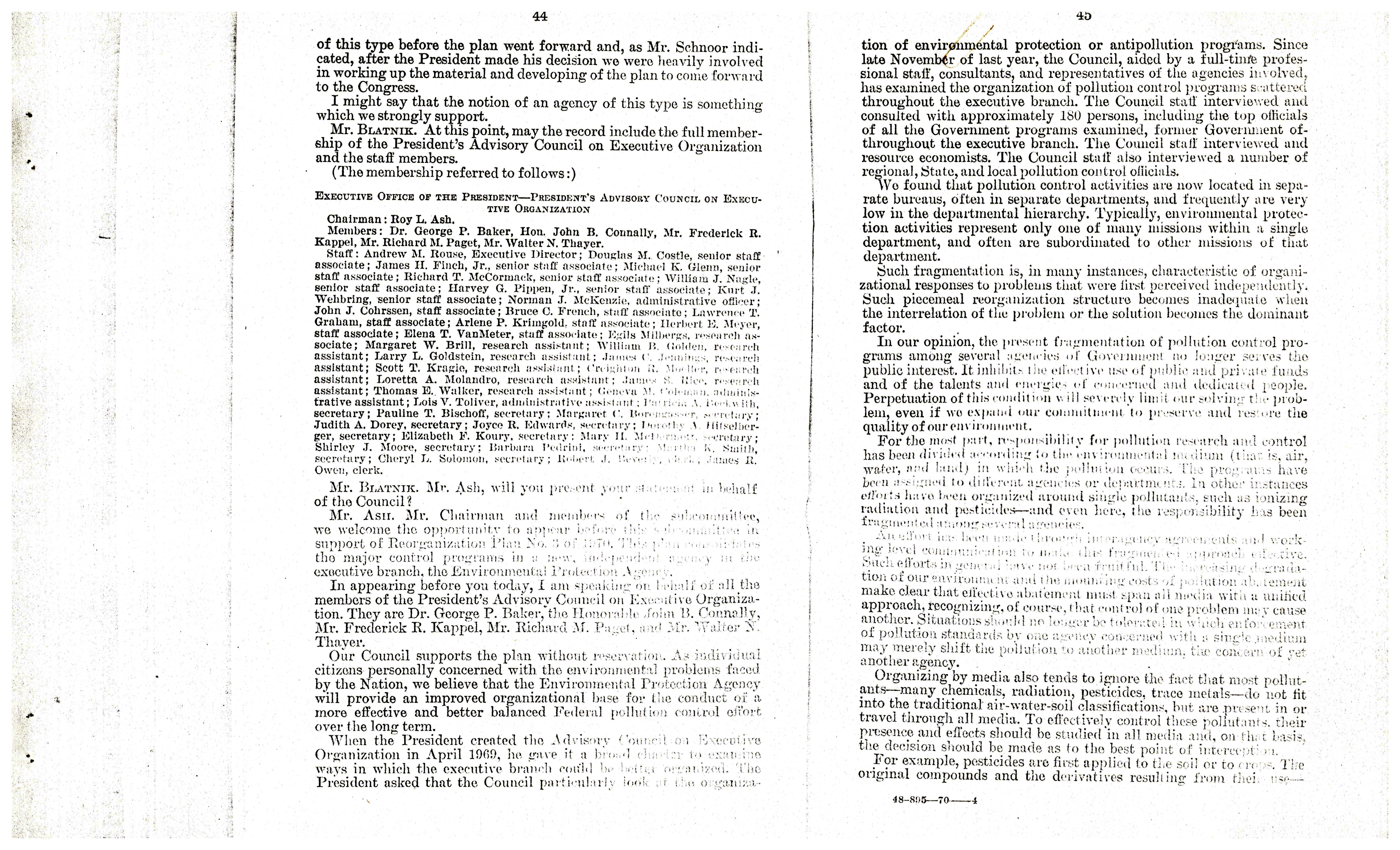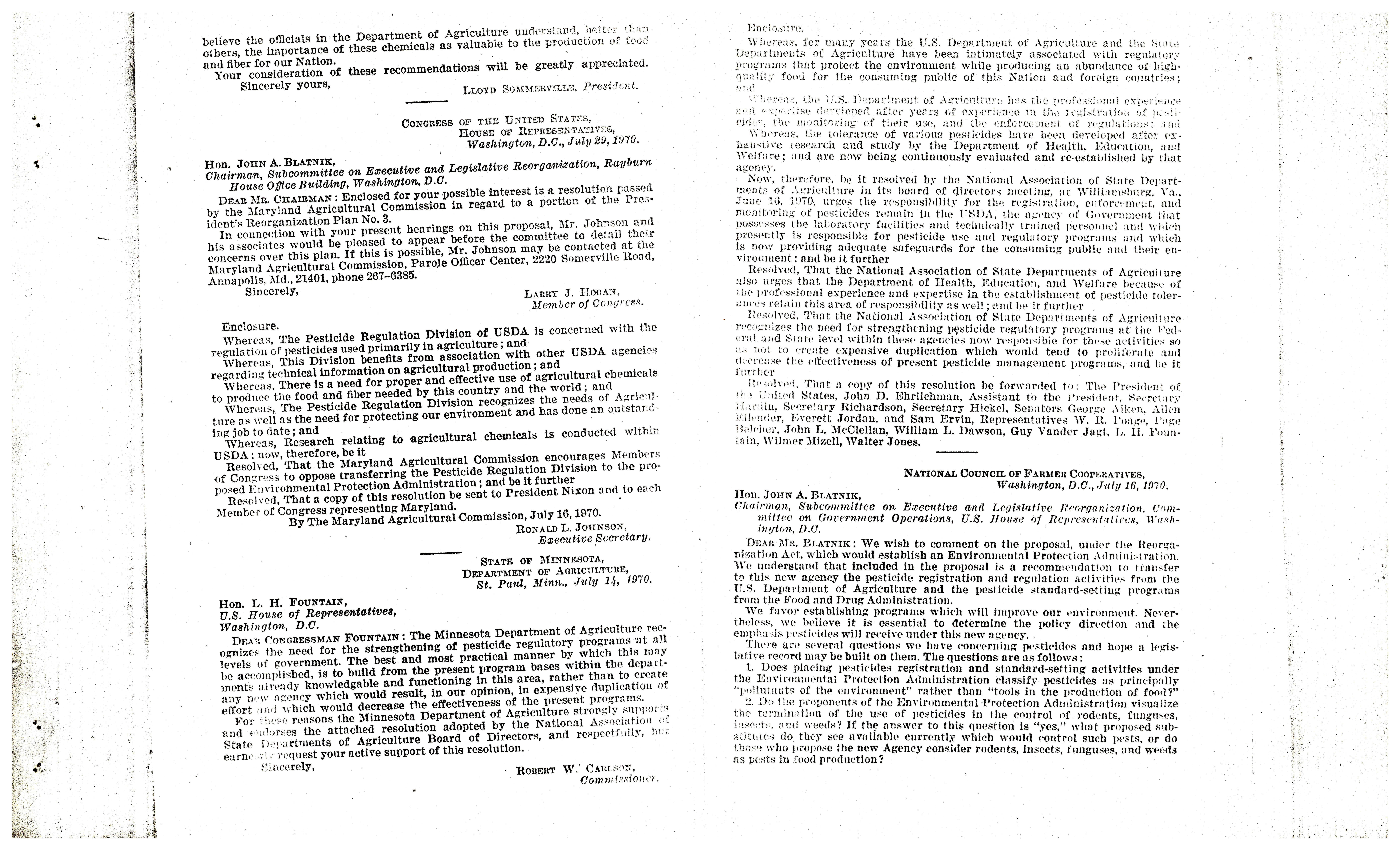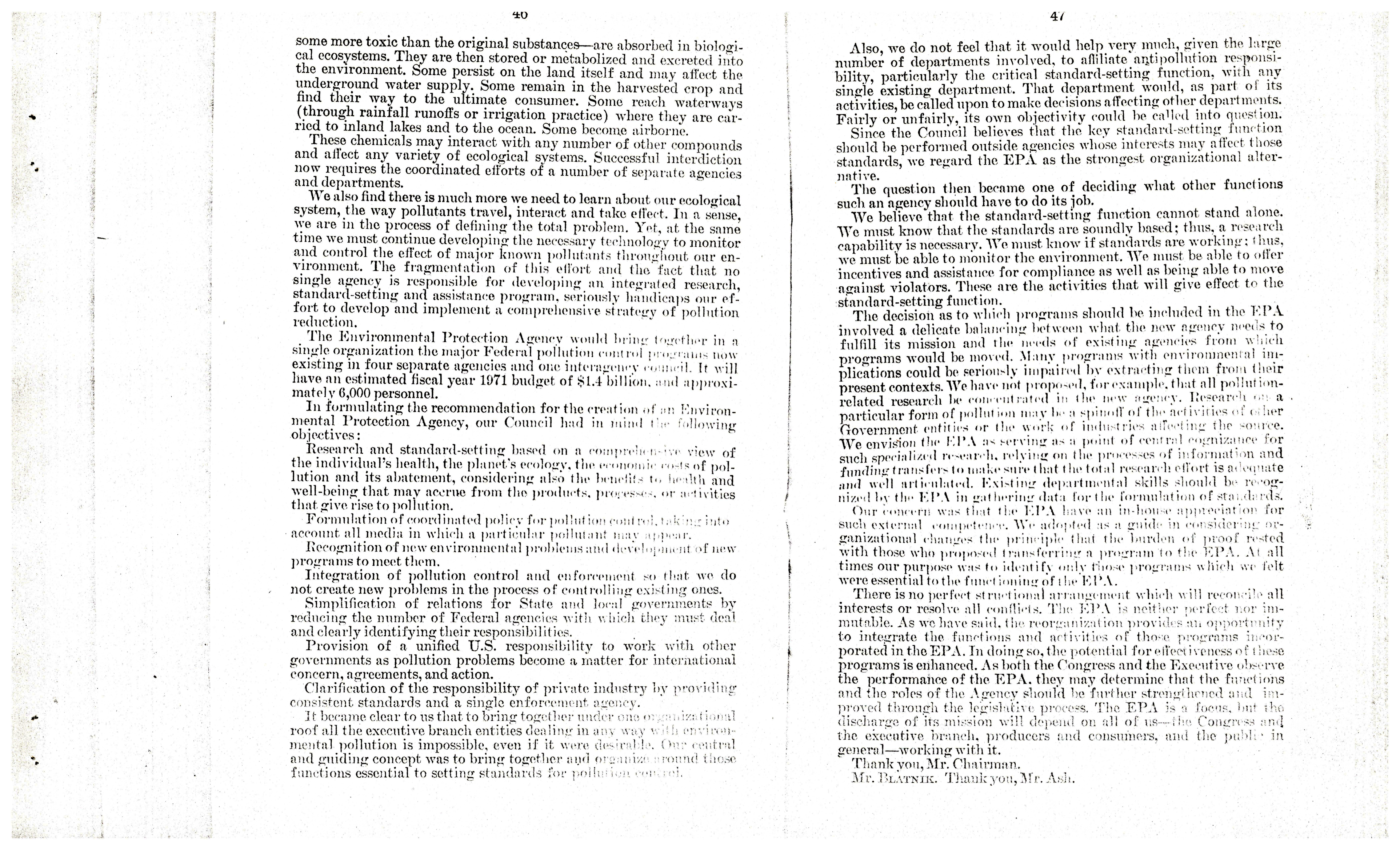 - "Reorganization plan no. 3 of 1970 (Environmental Protection Agency)", Dwight Ink Collection, Iowa State University Library Digital Collections