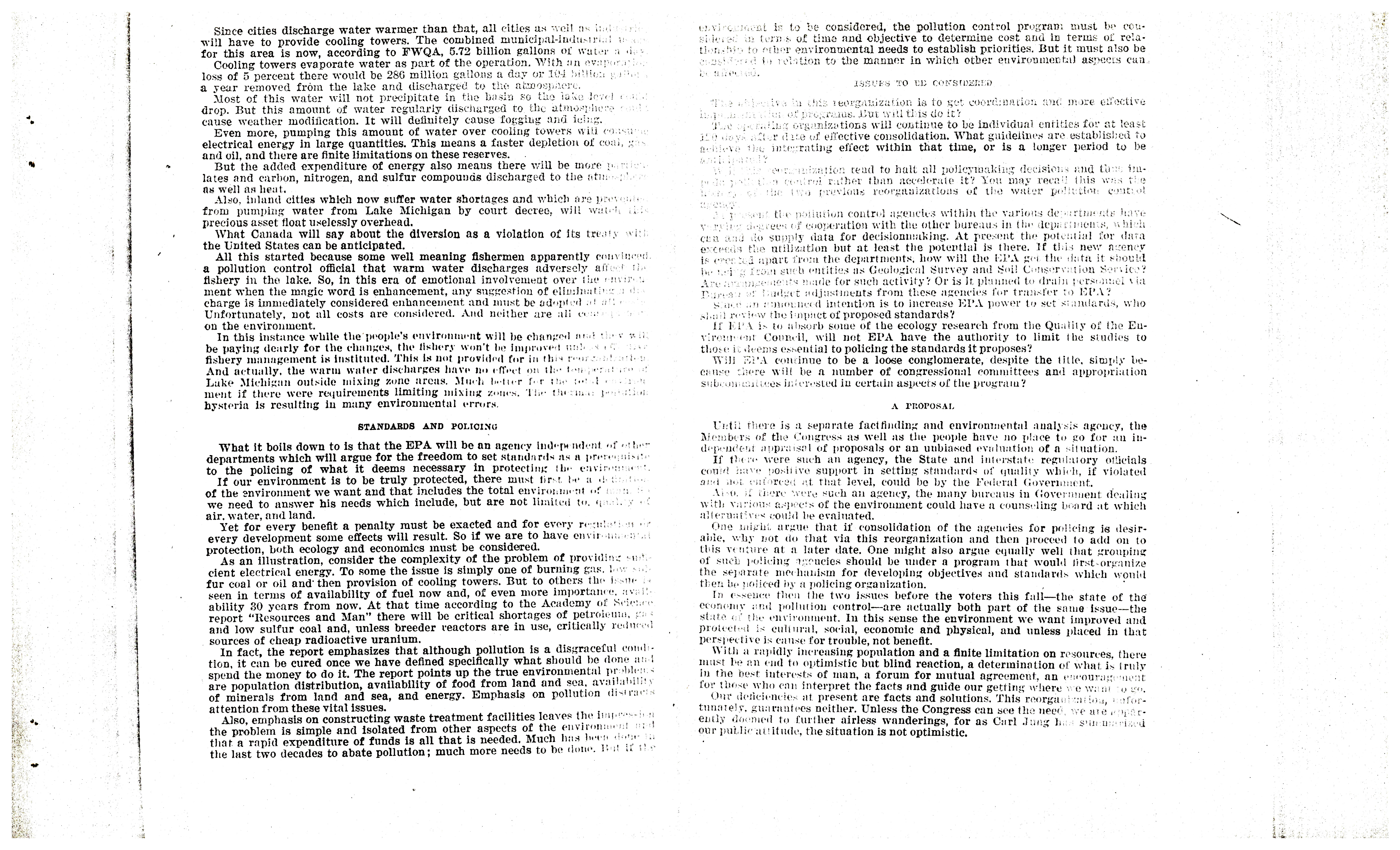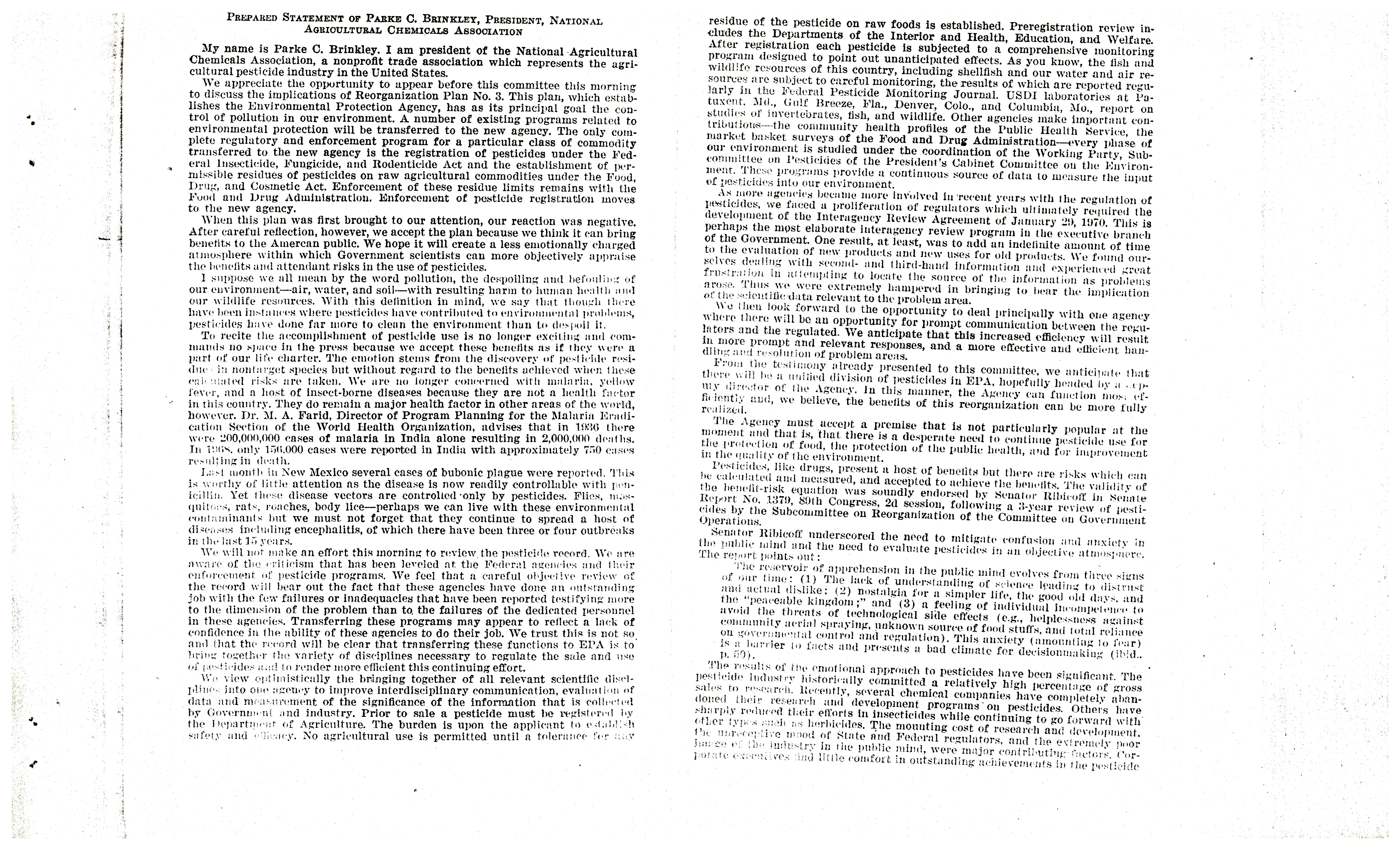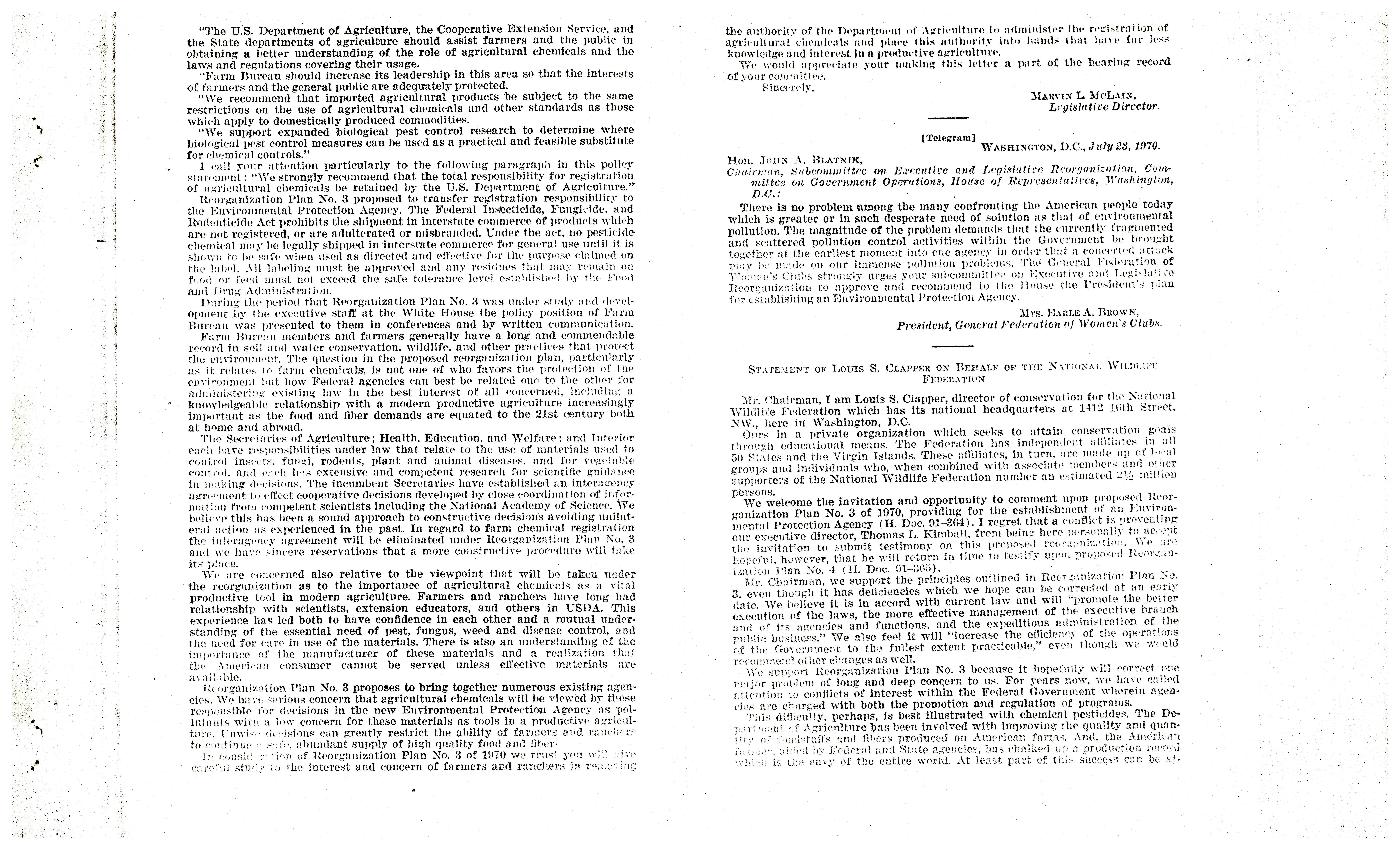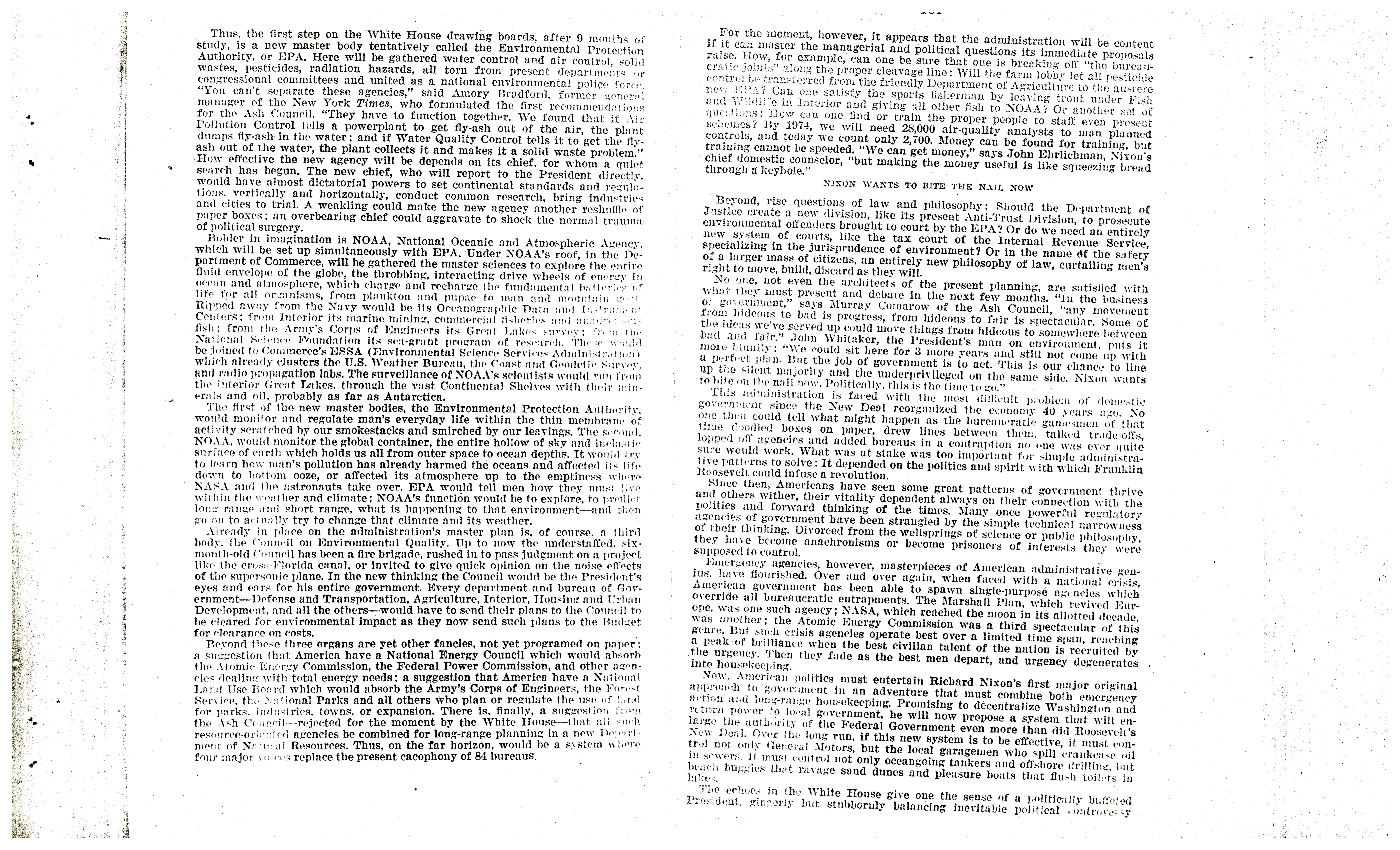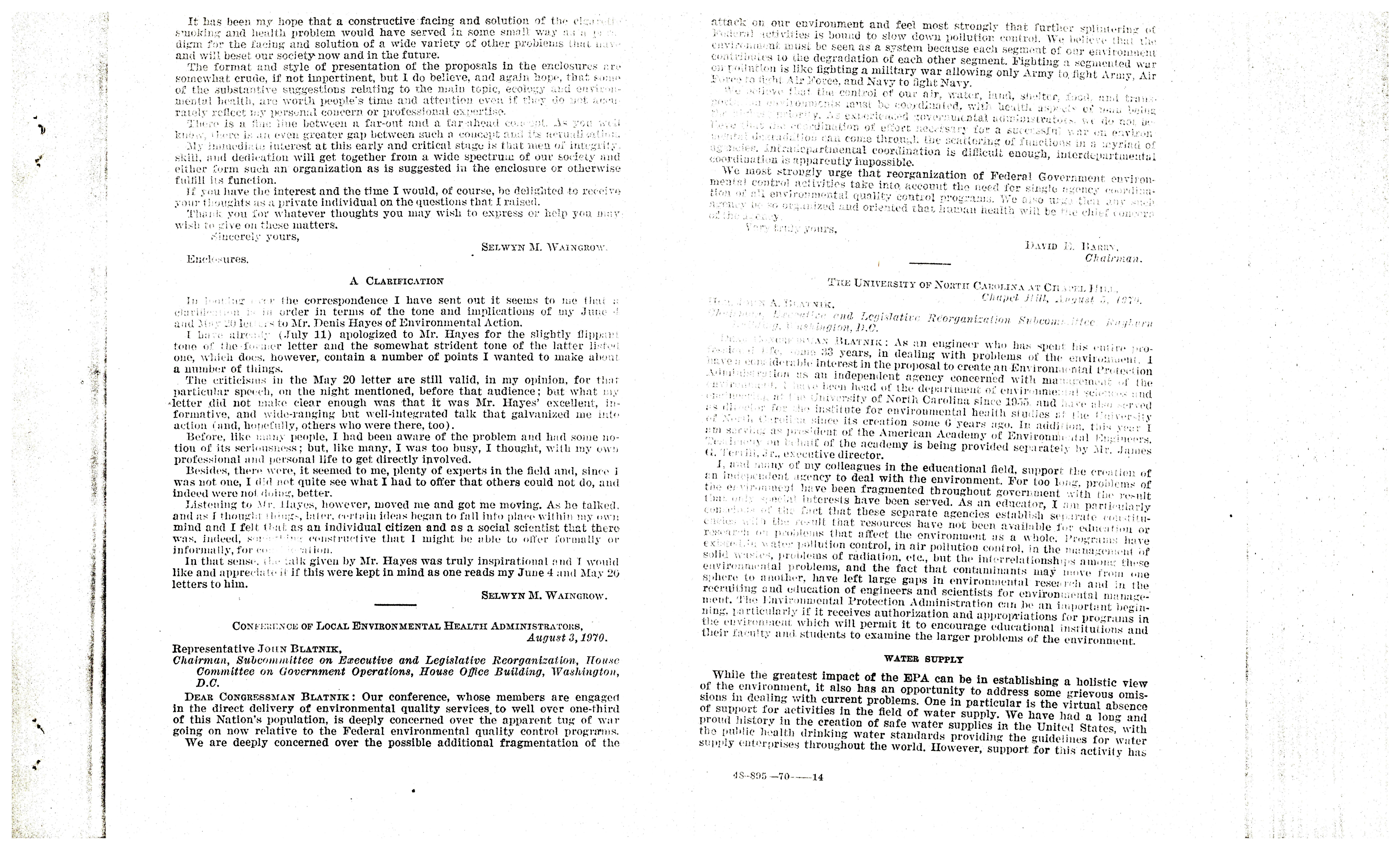 - "Reorganization plan no. 3 of 1970 (Environmental Protection Agency)", Dwight Ink Collection, Iowa State University Library Digital Collections
