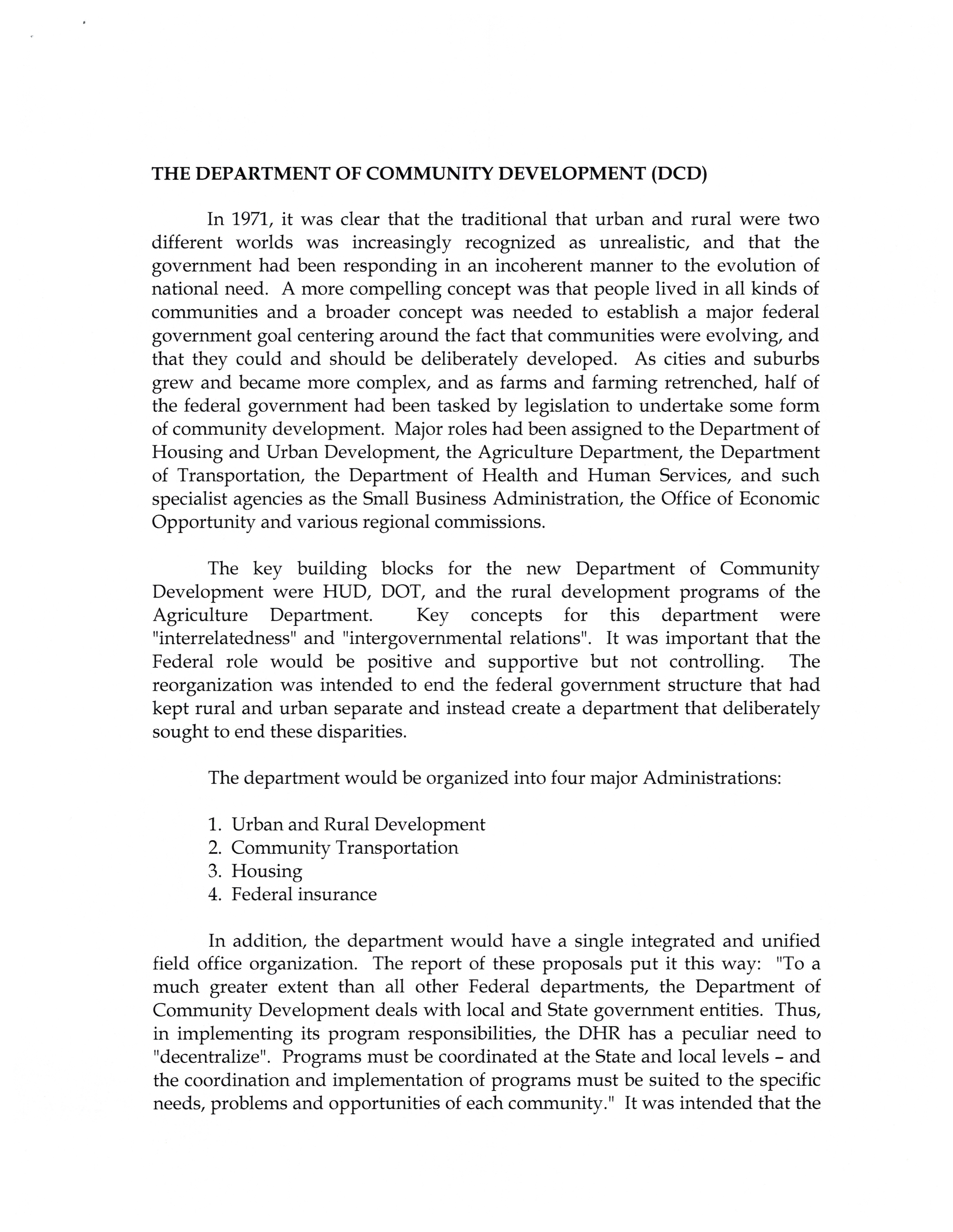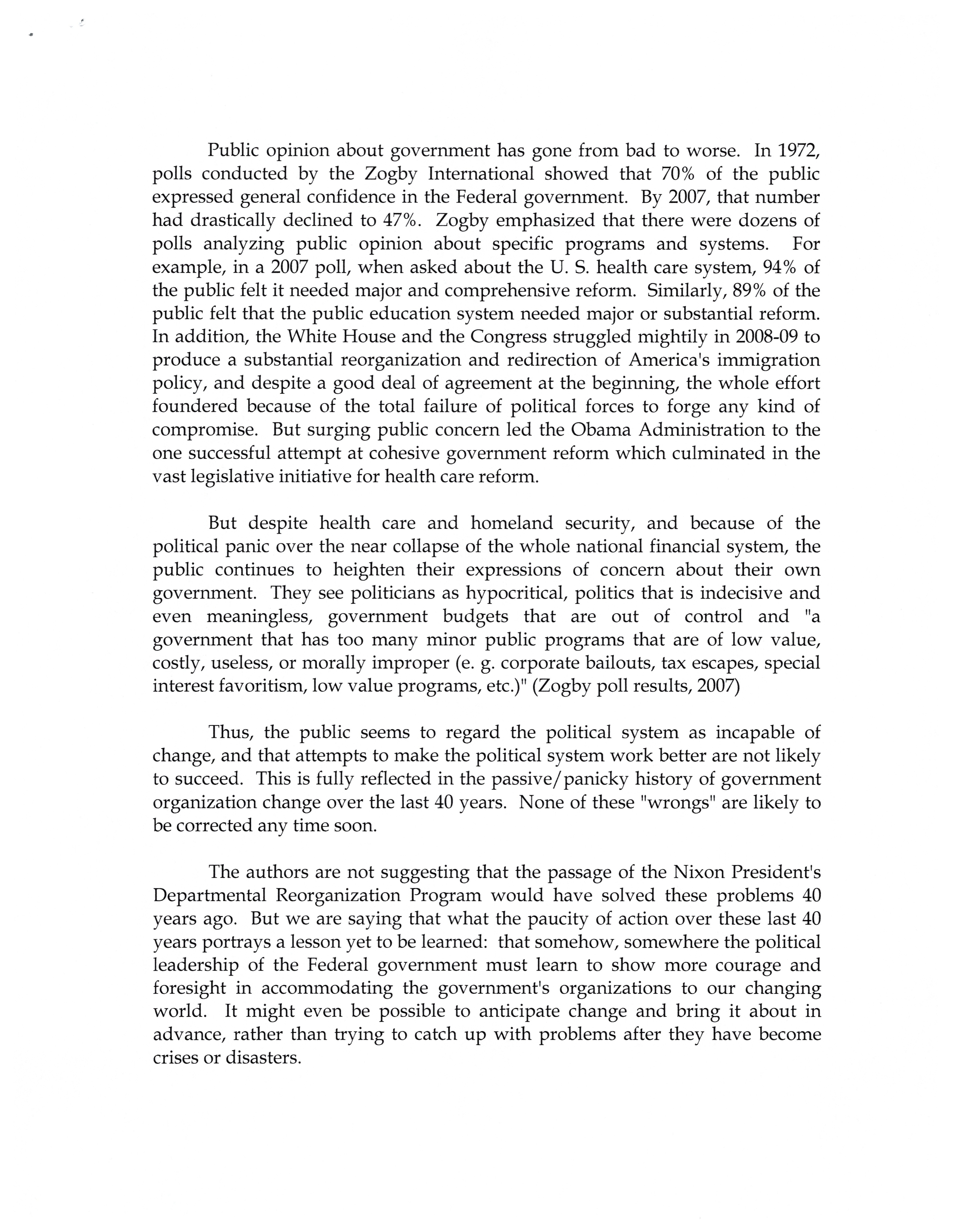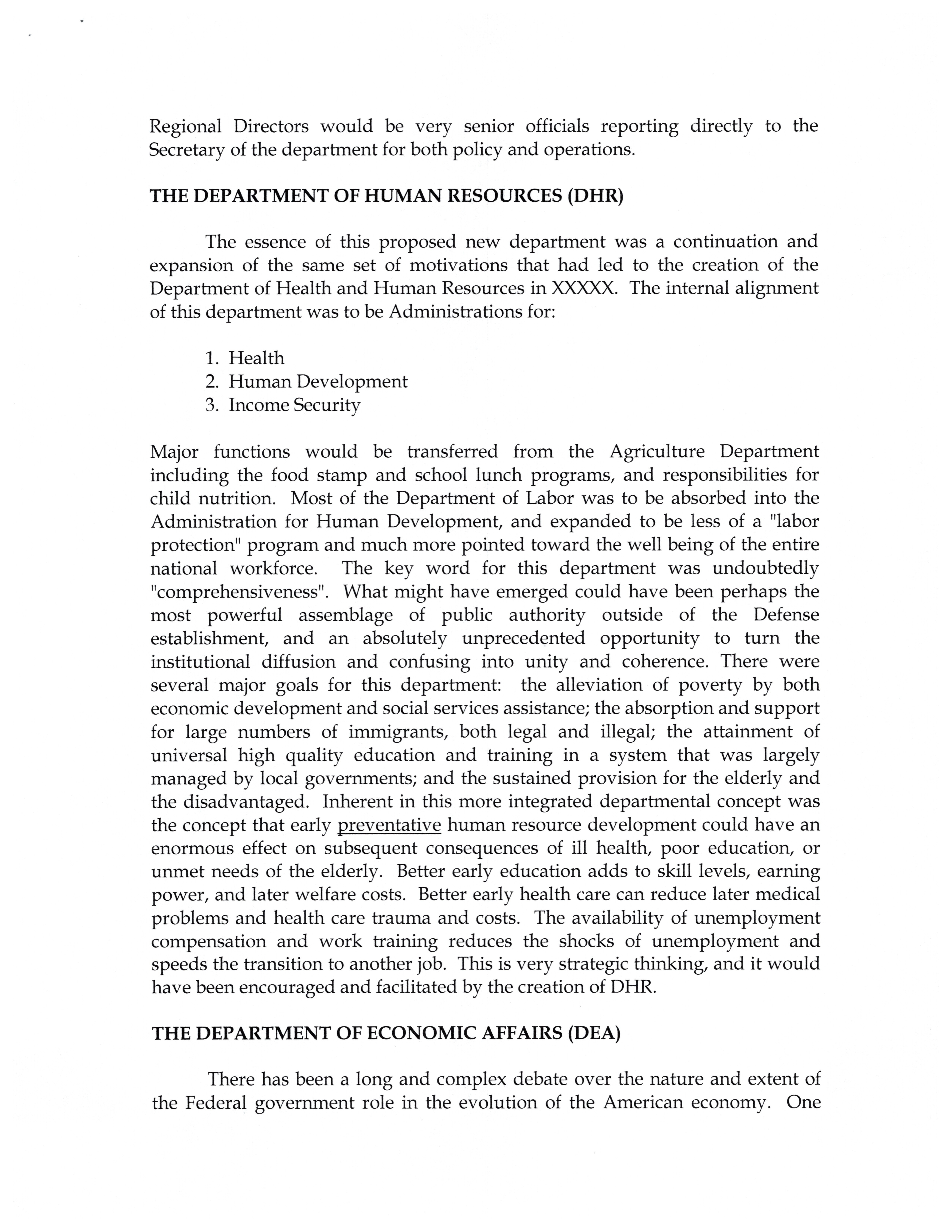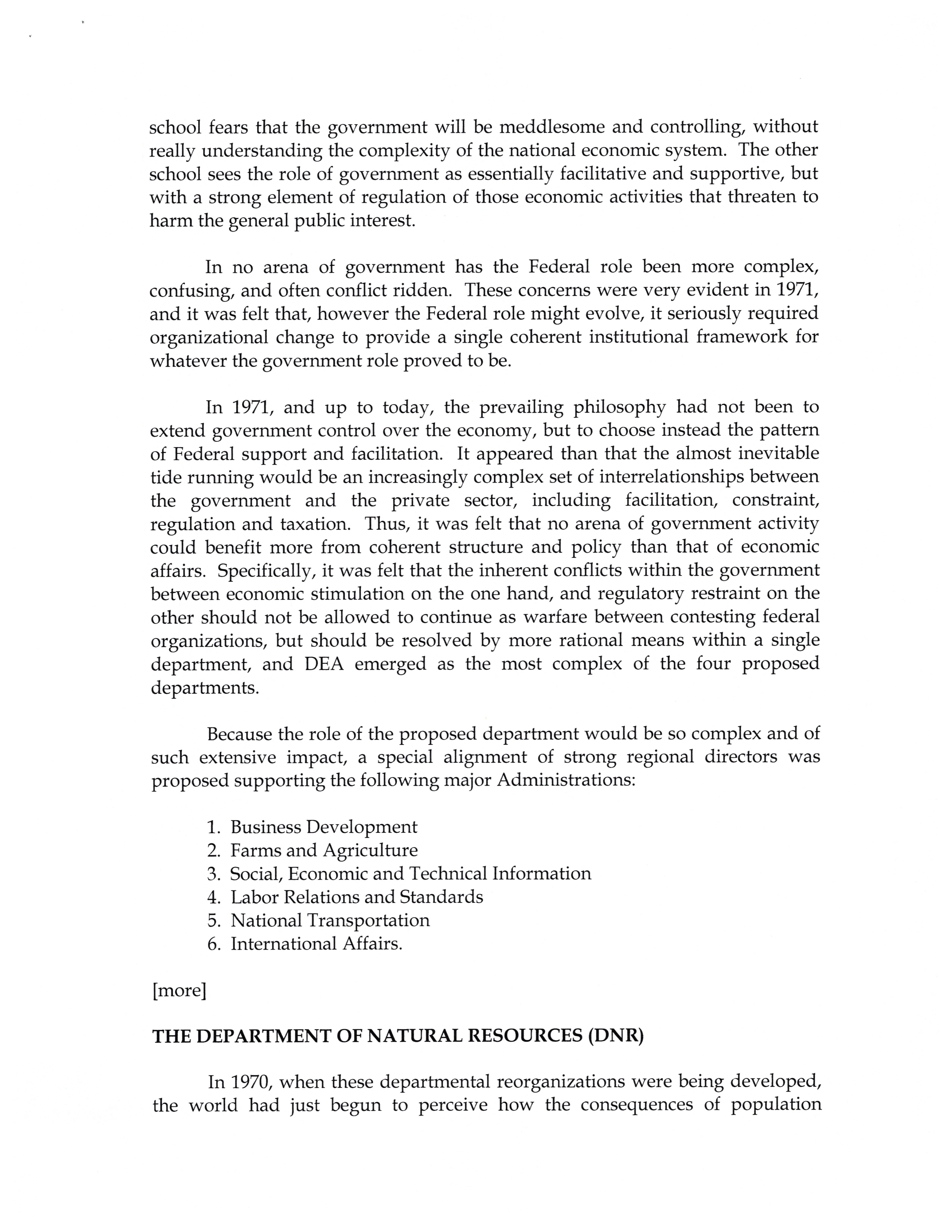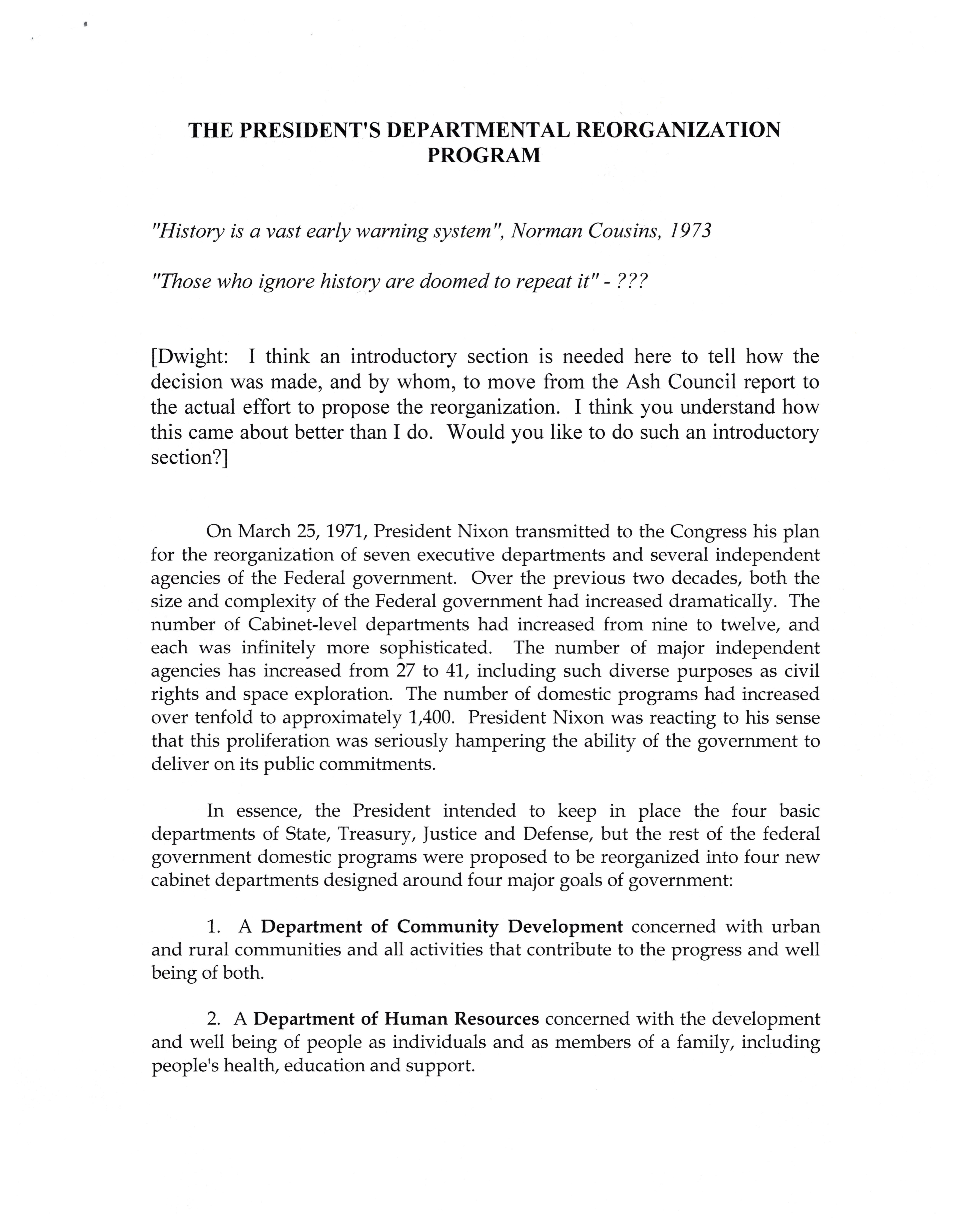 - The president's departmental reorganization program