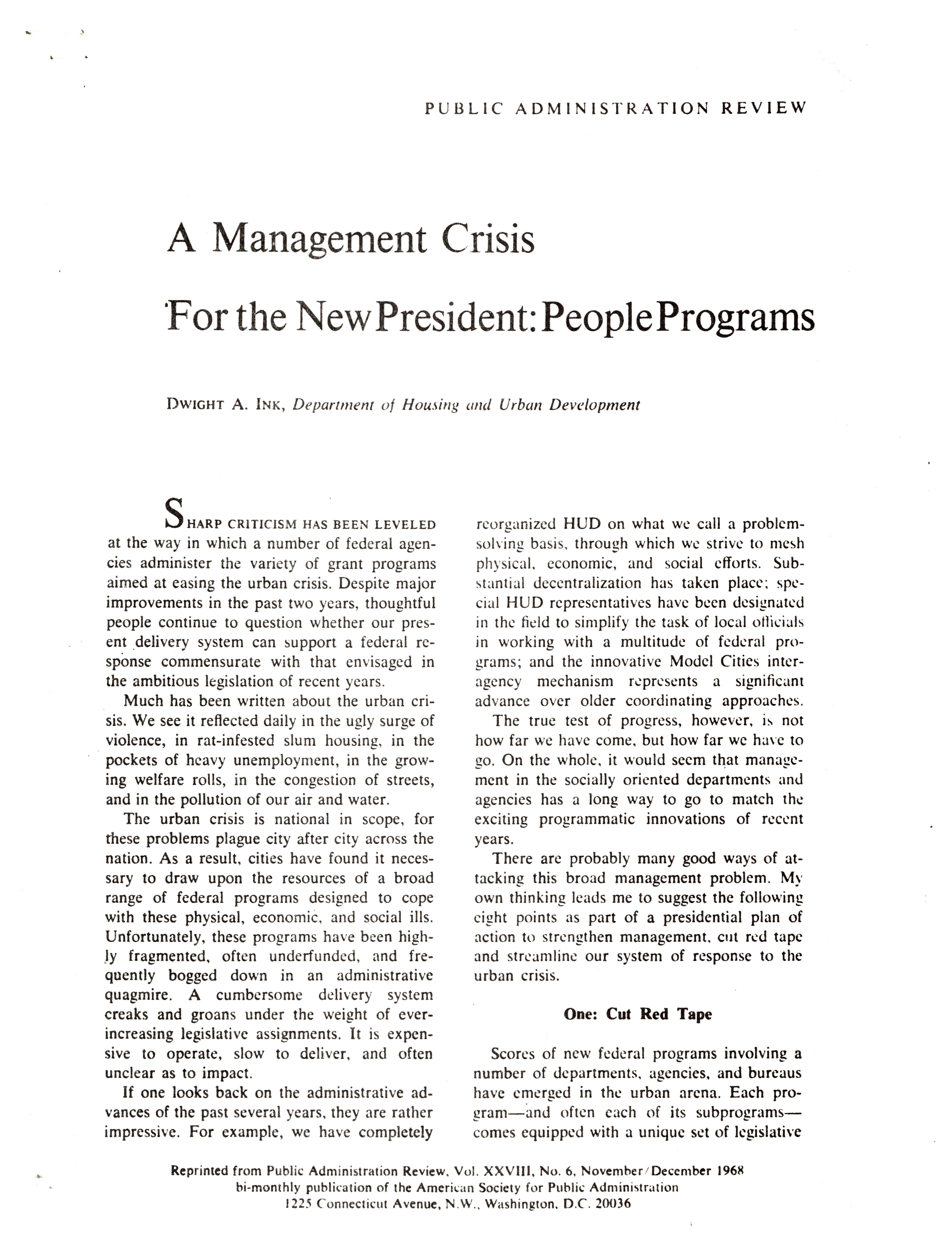 - "A management crisis for the new president: people programs", Dwight Ink Collection, Iowa State University Library Digital Collections